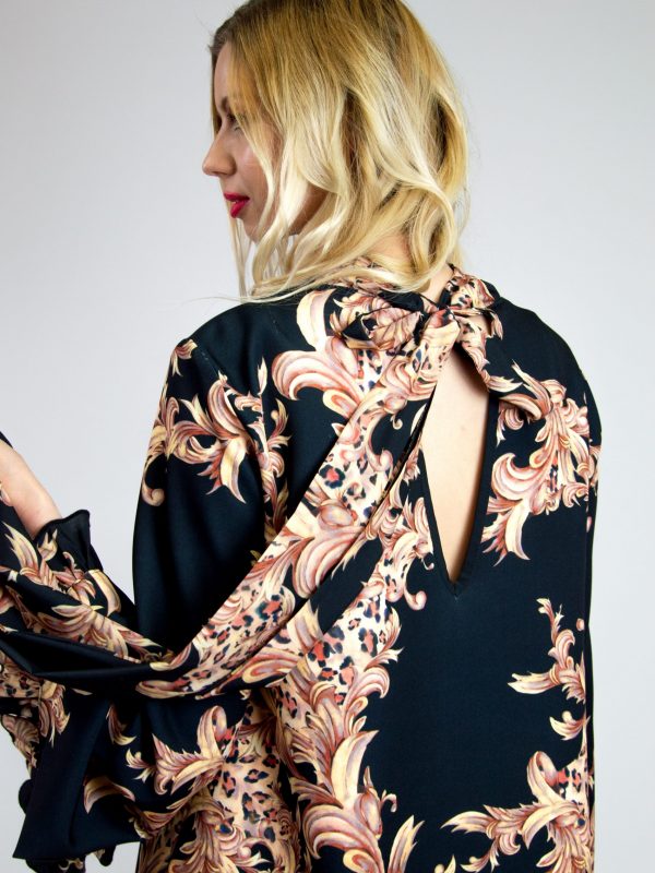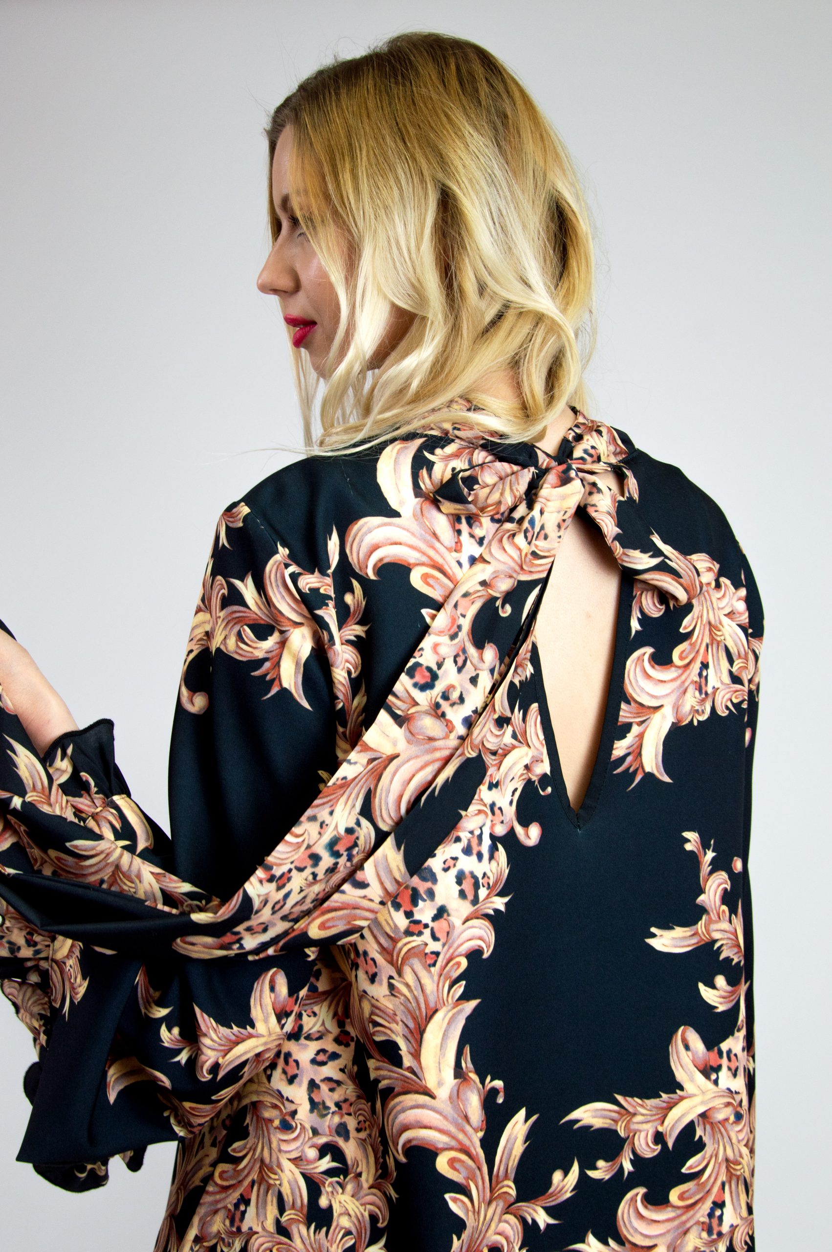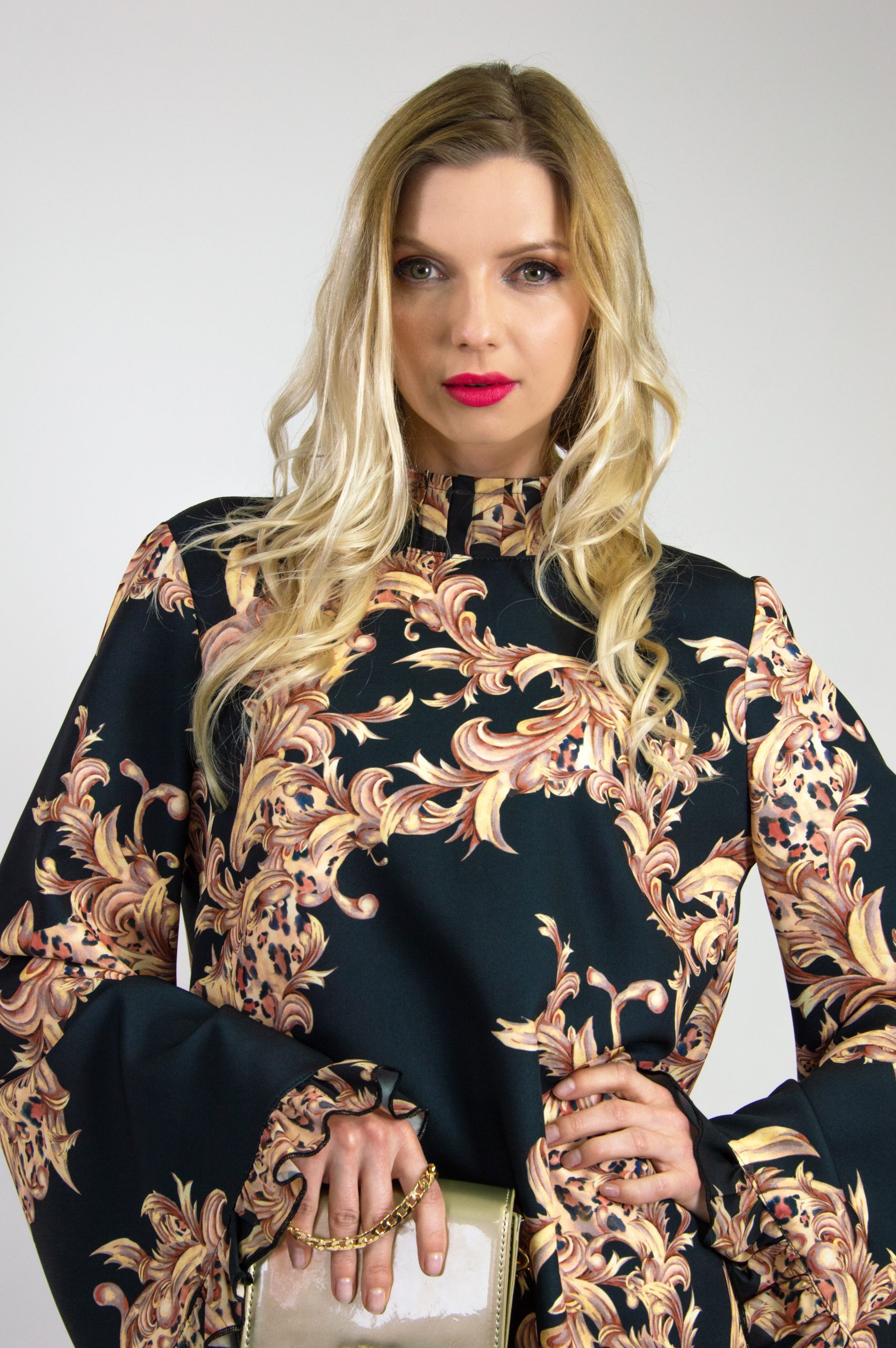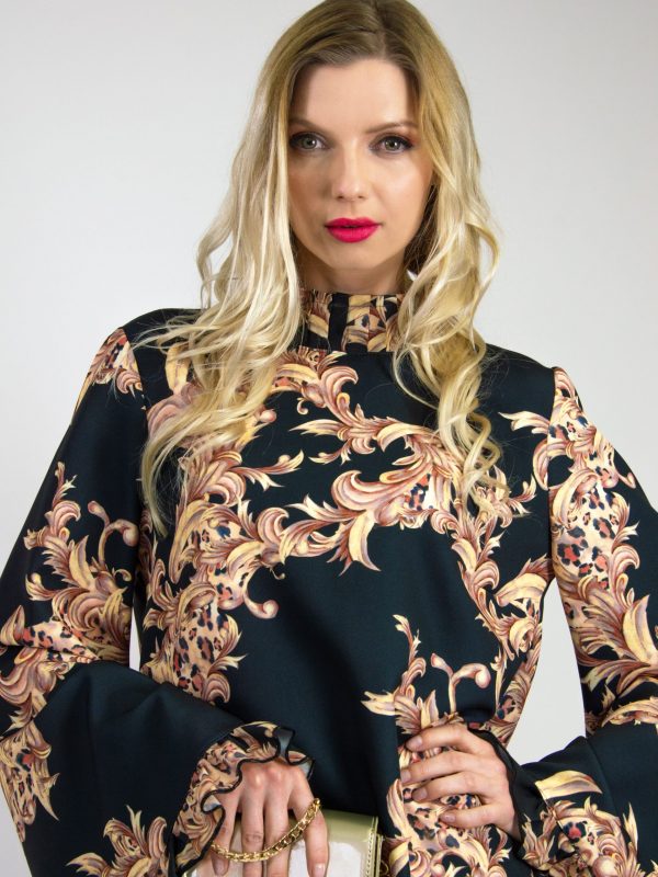 Šaty so zlatými baroko prvkami rozžiaria každú oslavu. Zlatá je vkusne kombinovaná s tmavým podkladom čím Vám ponúkne množstvo jednoduchých kombinácii s doplnkami. Šaty sú ačkového strihu.