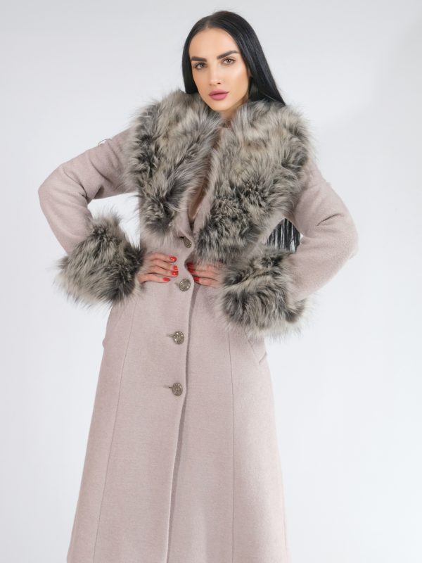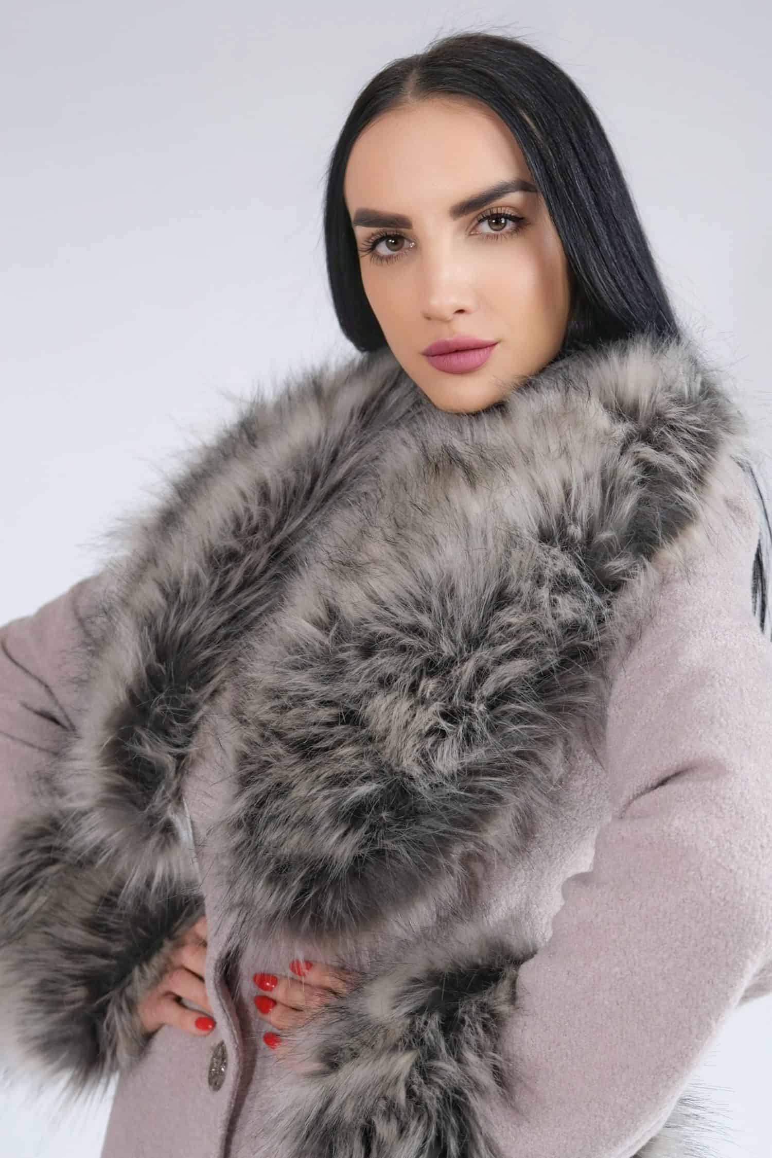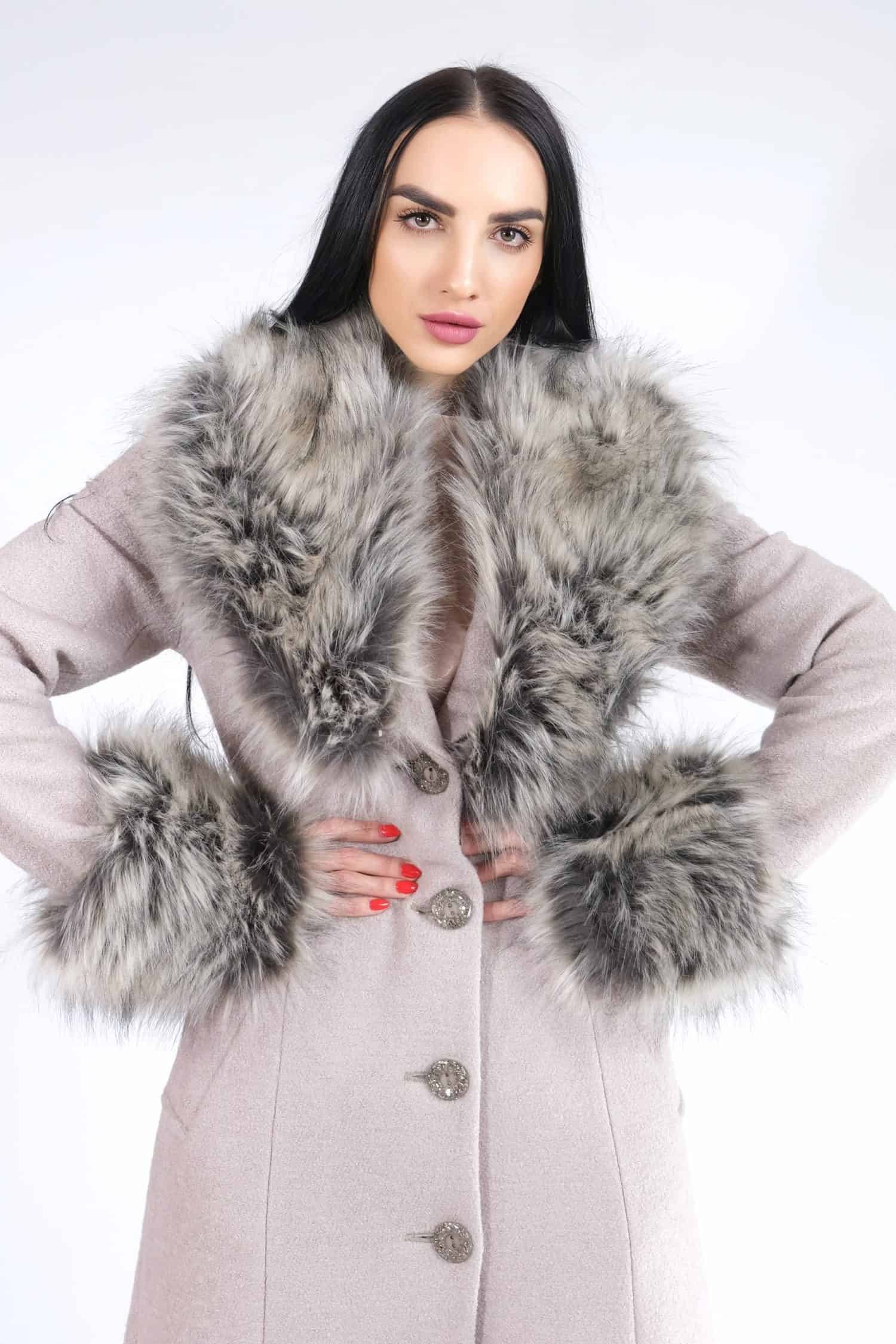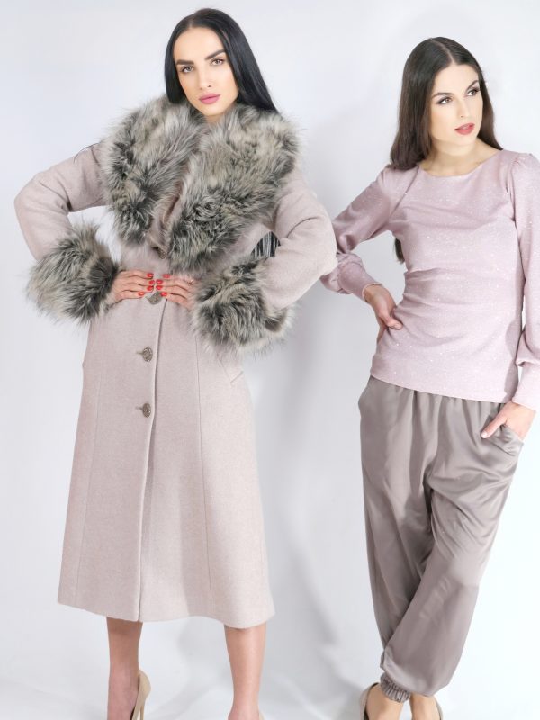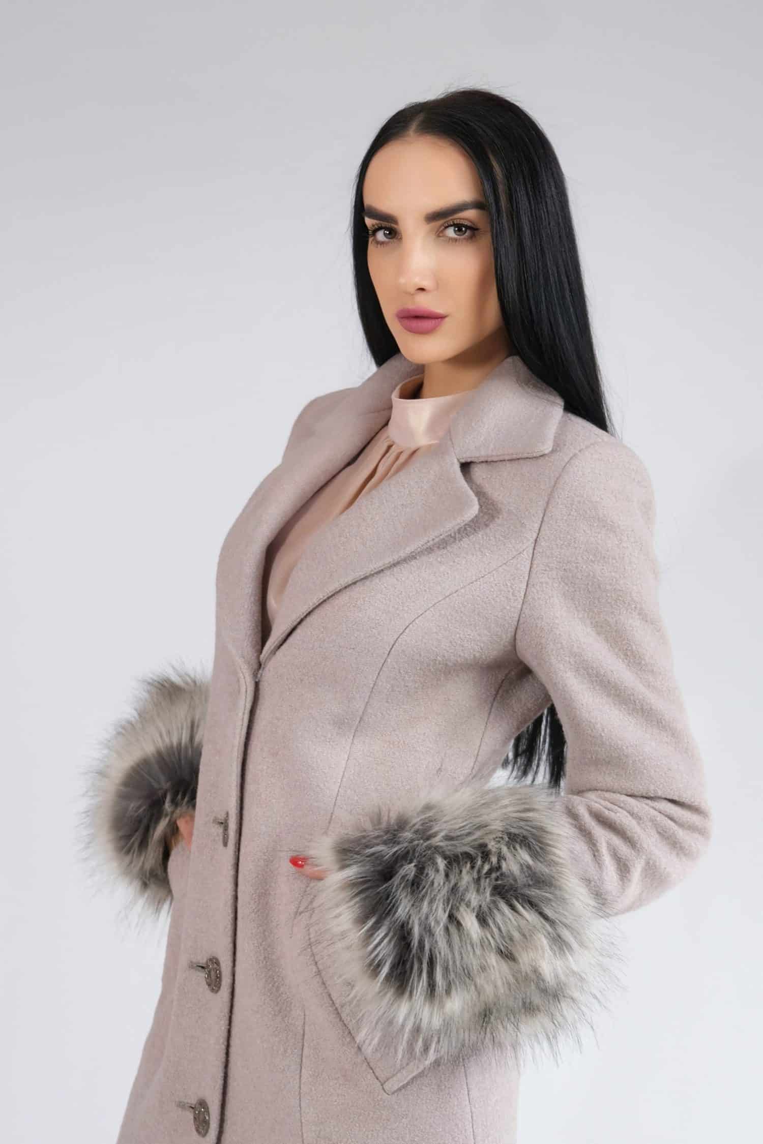Kabát ušitý s 25 ročnou tradíciou rodinnej dielne vyniká krásnym detailným spracovaním strihu a vysokou kvalitou materiálu , ktorý Vás bude hriať počas chladných zimných dní dlhé roky. Kabát od nás je investícia do Vášho šatníku na dlhé roky. Noste ho s láskou, s akou ich my šijeme. Ak hľadáte kabát, ktorý prinesie farby do hmlistých zimných dní , tak ste ho práve našli. Kabát je ušitý v neutrálnej farbe, ktorá sa dá skombinovať s celým Vaším šatníkom. Kabátik má odopínaciu umelú kožušinu s dlhým vlasom. Kožušina na rukávoch a golieri kabátiku dodáva na elegancii a počas chladných dní Vás príjemne zahreje. Kabát je strihnutý v páse s bohatou suknicou aj bez kožušinky, kedže na golieri sa dá odopnúť pôsobí veľmi elegantne