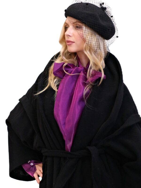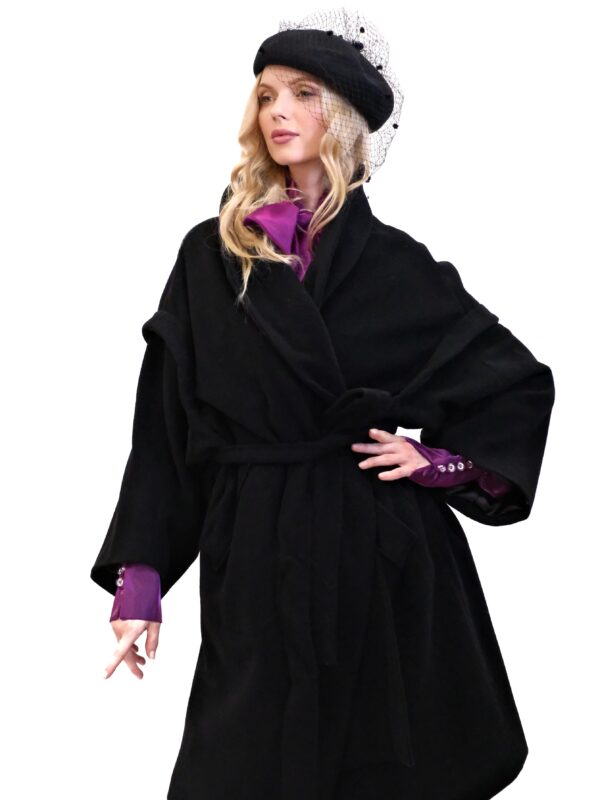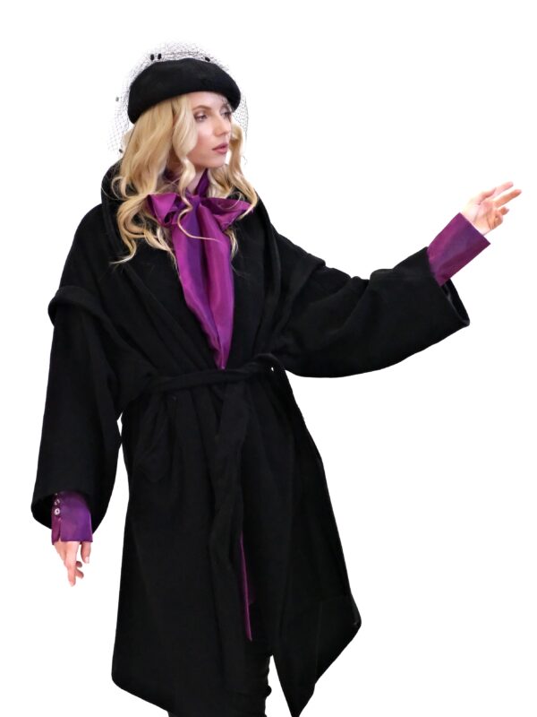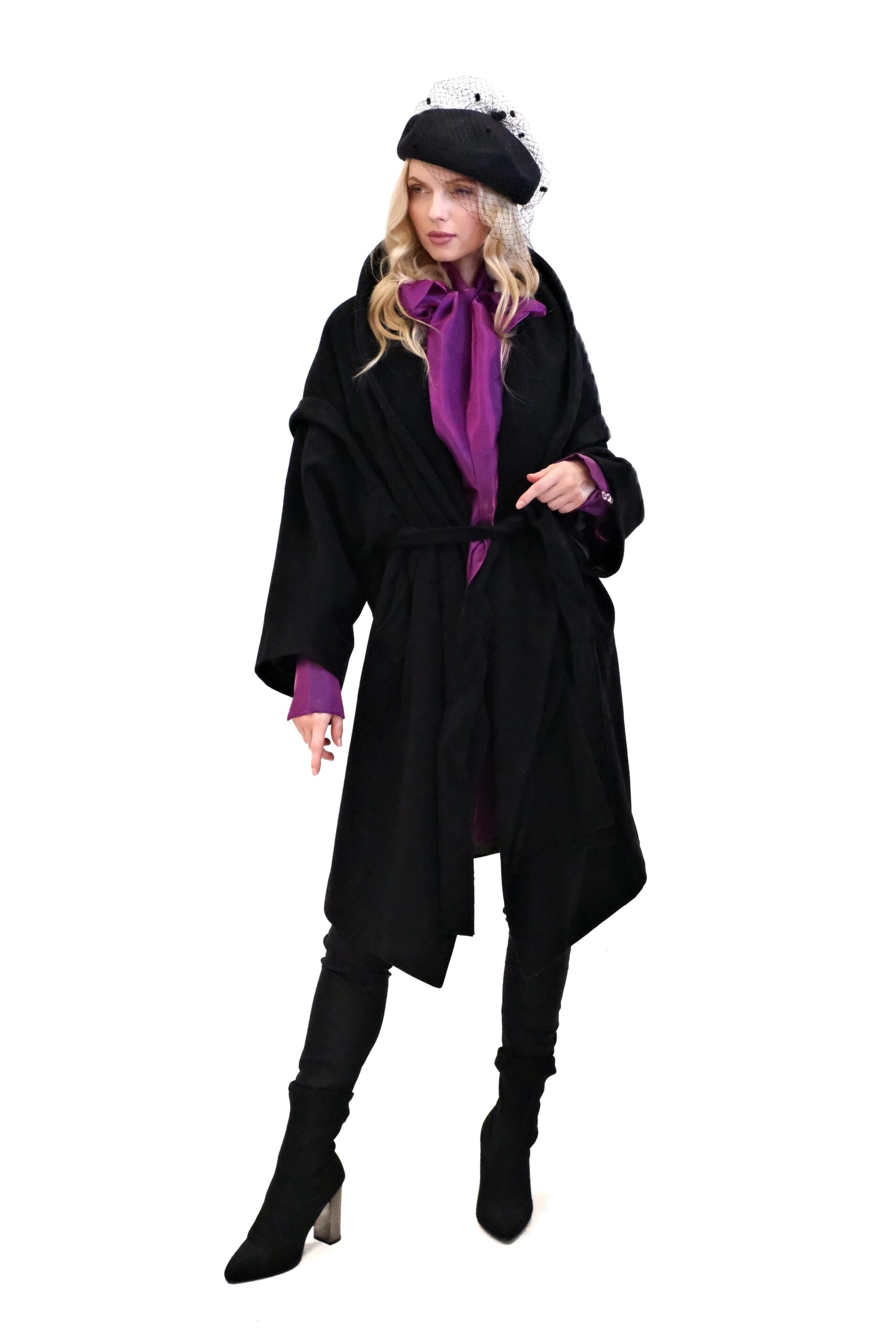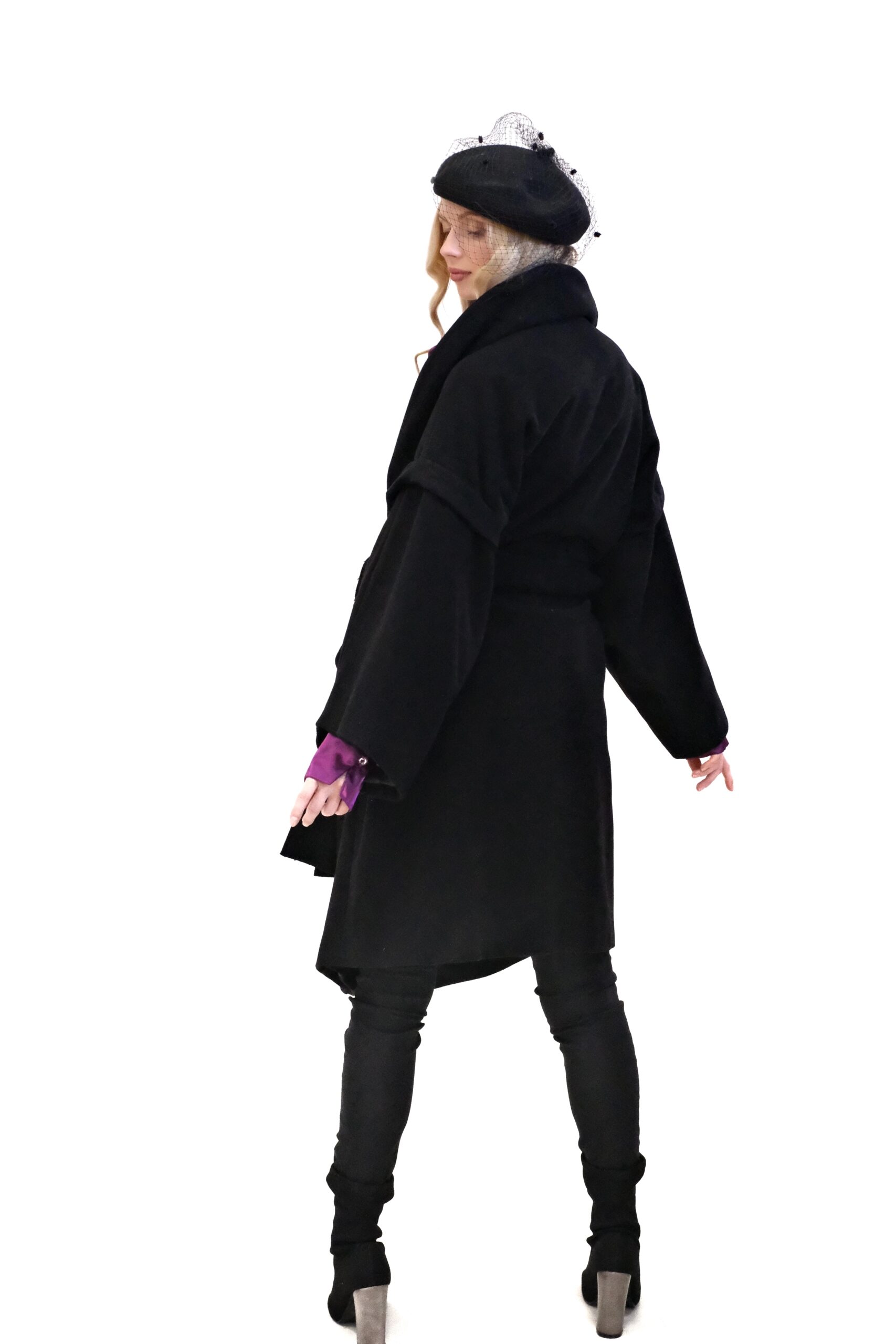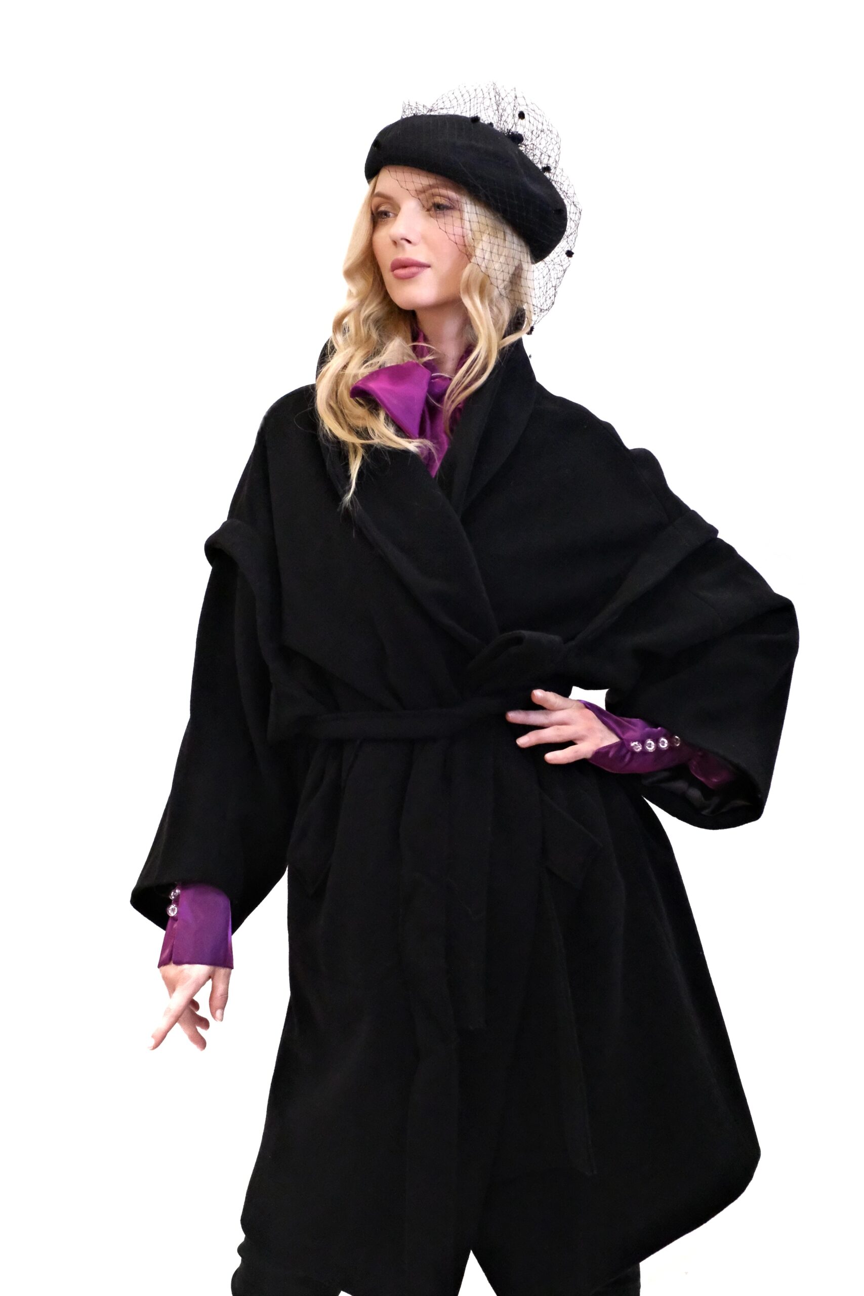 Kabát je navrhnutý v limitovanej kolekcii od známeho módneho návrhára Borisa Hanečku a je stelesnením komfortu a pohodlnosti. Kabát inšpirovaný japonským kimonom je štrukturovaný a vypracovaný vo voľnom oversize strihu. Kabát nemá zapínanie a nosí sa na opasok. Kabát je pre tie z Vás, ktoré majú radi voľnočasové strihy kabátov a nezaľaknú sa veľkorysých strihov. Kabát ma opasok z rovnakého materiálu. Kabát je ušitý z kvalitného materiálu v dielni s 30 ročnou tradíciou v šití kabátov. Každému kúsku sa venovala krajčírka s dlhoročnými skúsenosťami. Výsledok je kabát ako žiadny iný, prepracovaný do najmenších detailov a v kvalite, ktorá Vám vydrží roky.