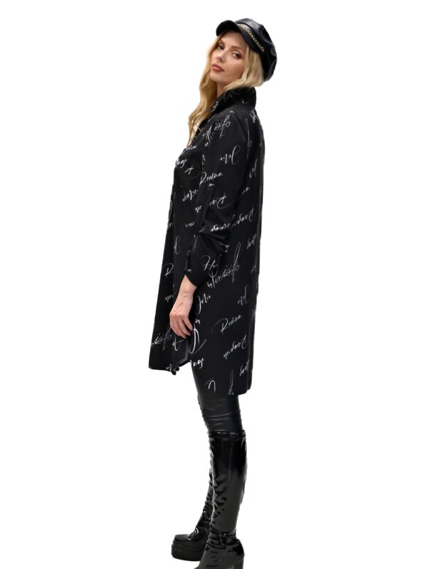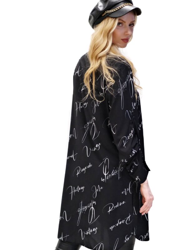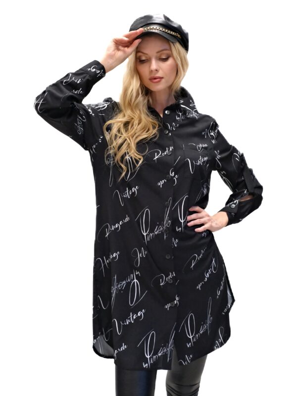 Košeľa je navrhnutá v pohodlnom ležérnom strihu, ktorý výborne sadne na každý typ postavy. Košeľa ma rukávy, ktoré sa dajú vyhrnúť. Košeľa je navrhnutá v nesmrteľnej čierno-bielej kombinácii s odkazmi na zakladateľov značky. Košeľa sa skvele hodí do každého šatníka a výborne ju skombinujete s čímkoľvek.  Košeľu noste s úzkymi nohavicami alebo legínami, v letnom období aj so šortkami.