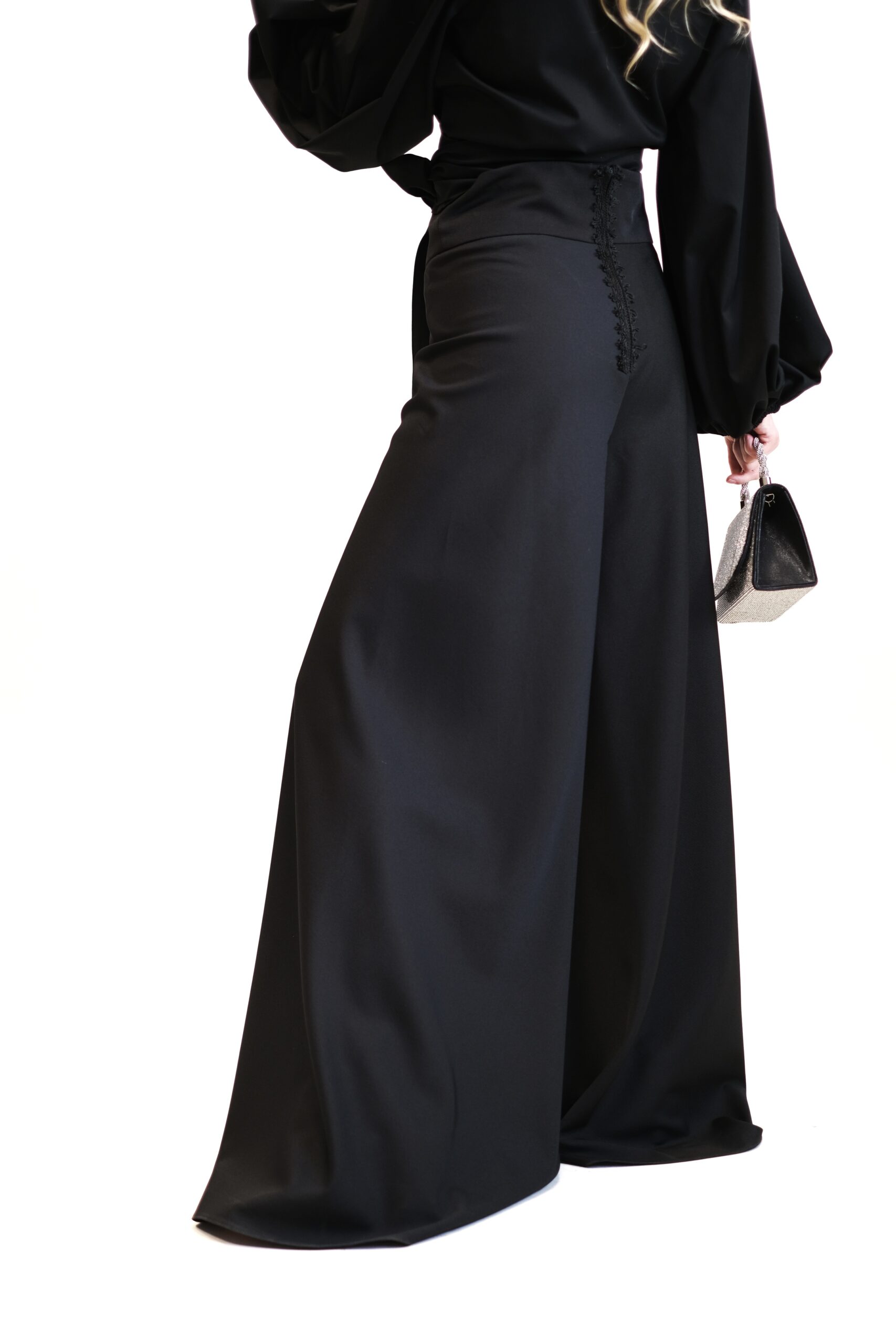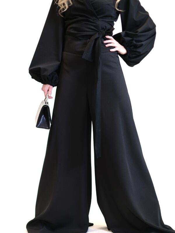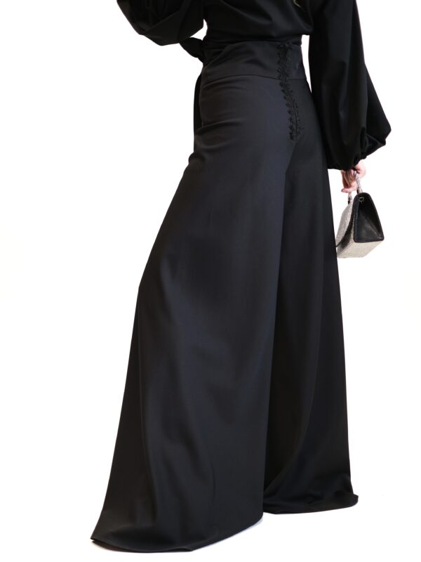 Nohavice sú navrhnuté v nádhernom elegantnom strihu, ktorý zdôrazní váš pas. Nohavice sú dostatočne široké, aby ste sa v nich cítili pohodlne počas celého dňa. Nohavice majú vysoký pás, ktorý opticky zoštíhli partie bokov. Zaujímavým detailom na nohaviciach je ozdobná nášivka na zips, ktorá im dodáva šmrnc.