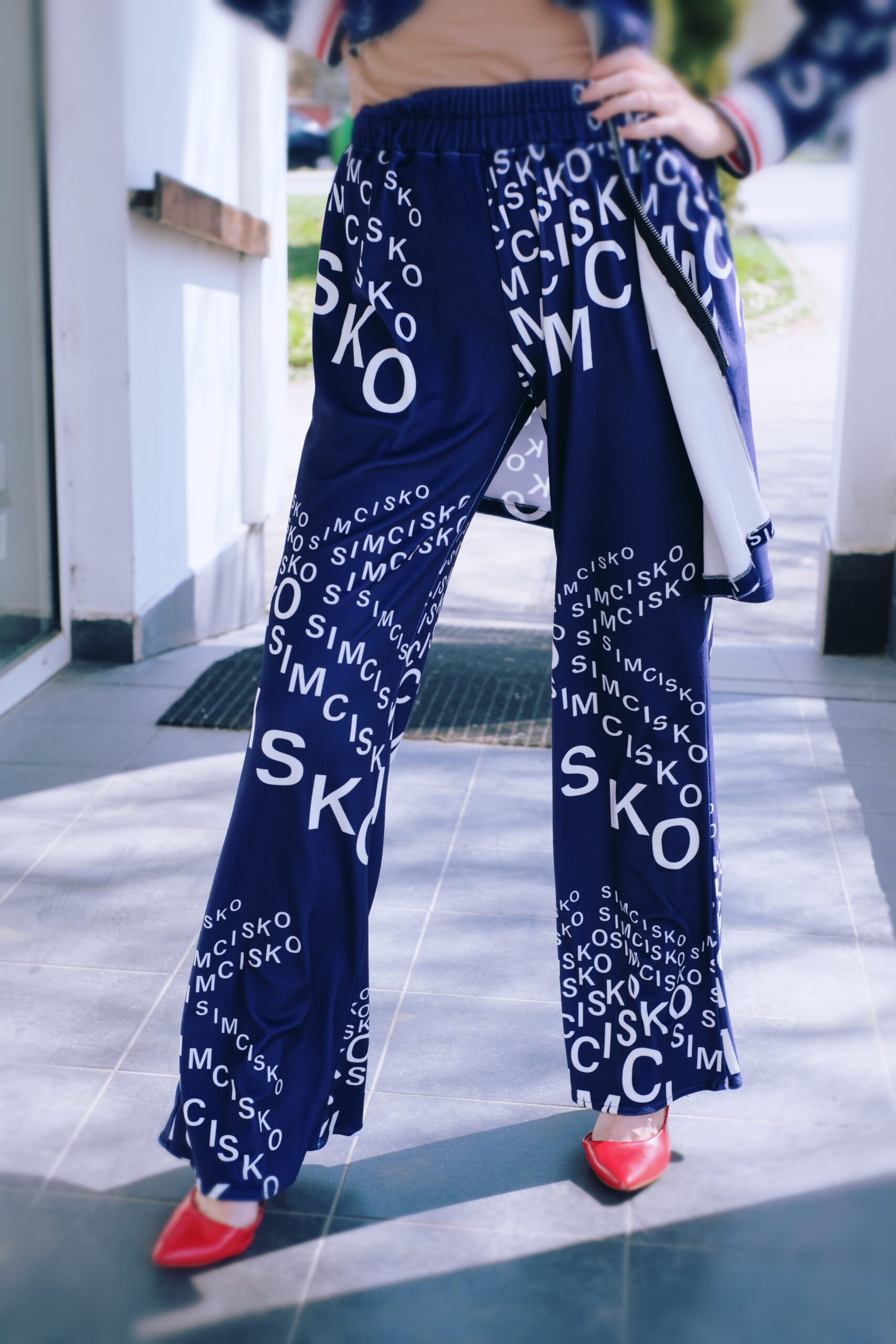Nohavice sú navrhnuté v obľúbenom voľnom strihu so širokými padavými nohavicami, ktoré sa vďaka vysoko elastickému a príjemnému materiálu dokonale prispôsobia vašej postave. Sýta kráľovská modrá farba v kombinácii s výraznou bielou typografickou potlačou dodáva nohaviciam moderný a neprehliadnuteľný vzhľad.