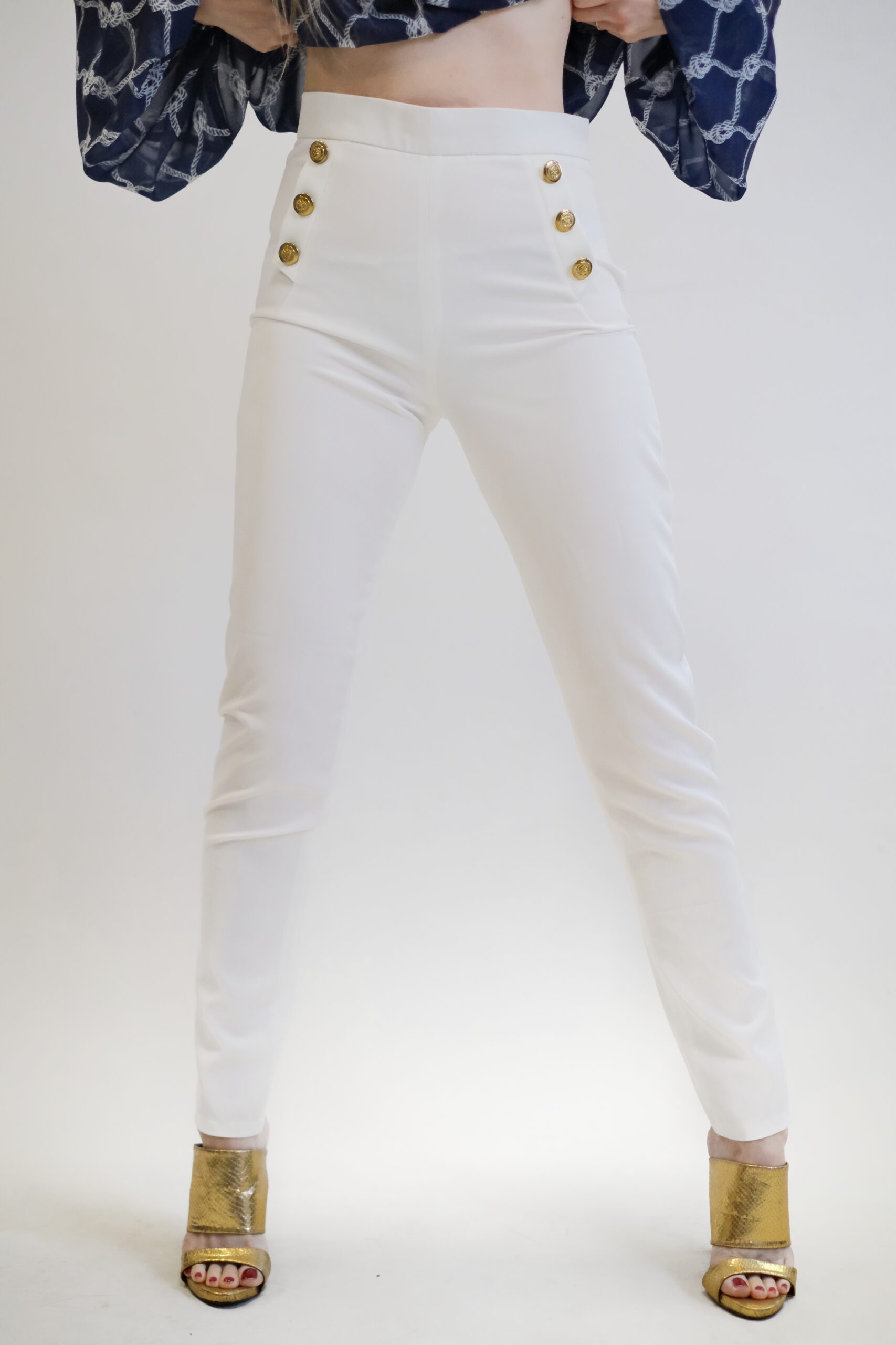Biele nohavice sú dámske, priliehavé nohavice s vysokým pásom. Sú charakteristické svojimi ozdobnými zlatými gombíkmi, ktoré sú umiestnené vo dvojiciach po oboch stranách pása.