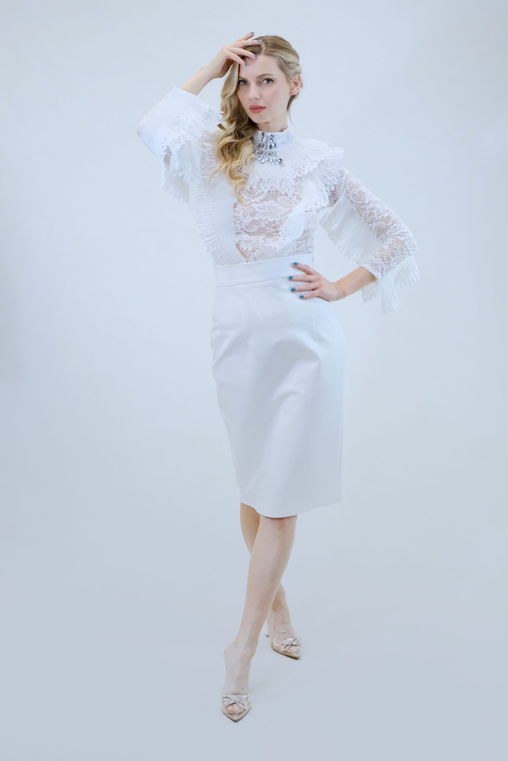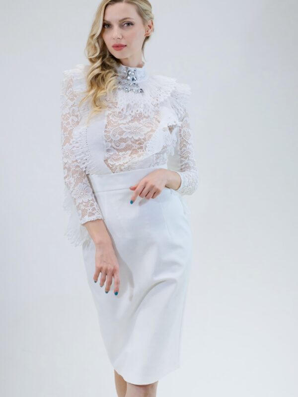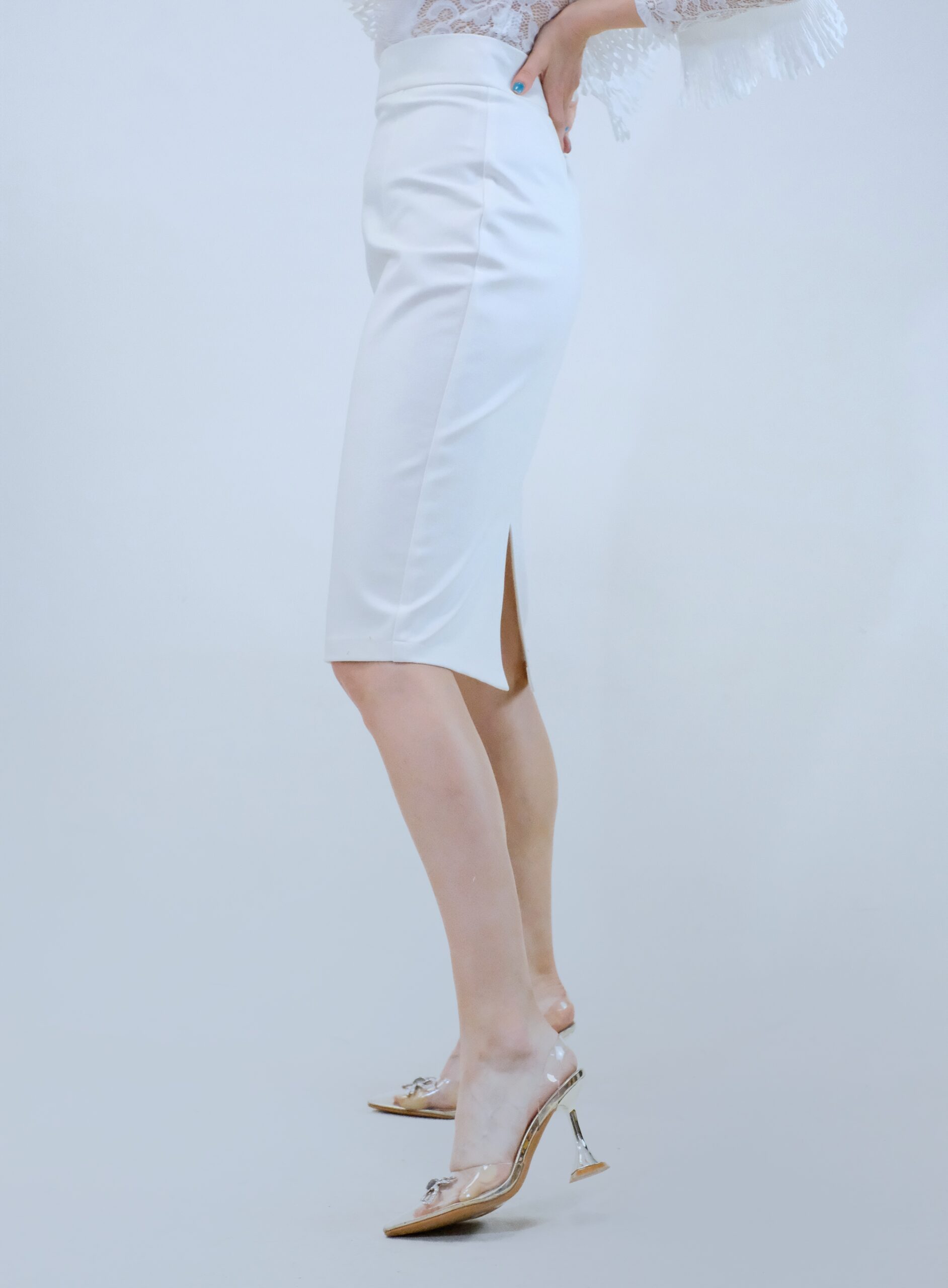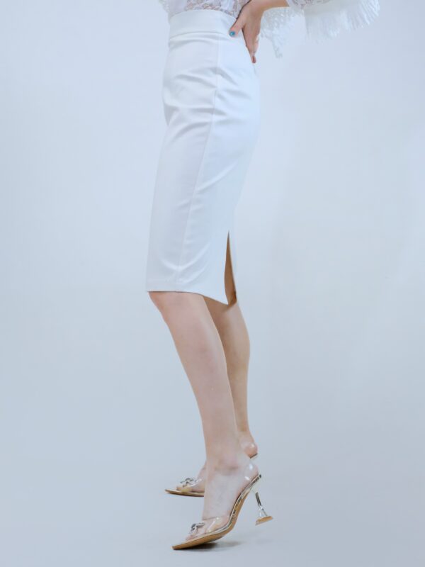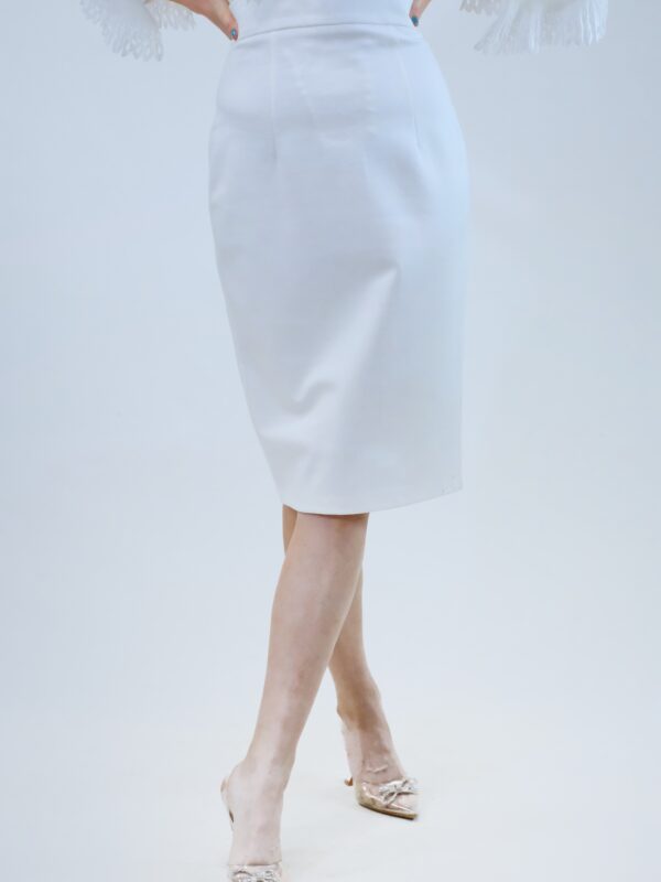Sukňa je navrhnutá v elegantnom a jednoduchom strihu, ktorý necháva naplno vyniknúť Vašu postavu. Sukňa je ušitá z prijemného elastického materiálu, ktorý sa Vám skvele prispôsobí. Sukňa má dĺžku po kolená. Poľahky ju skombinujete s akýmkoľvek kúskom vo Vašom šatníku. Sukňu viete nosiť elegantne na spoločenské udalosti s topom , ako naša aranžérka alebo aj na bežný deň do práce napríklad s čiernou košeľou.