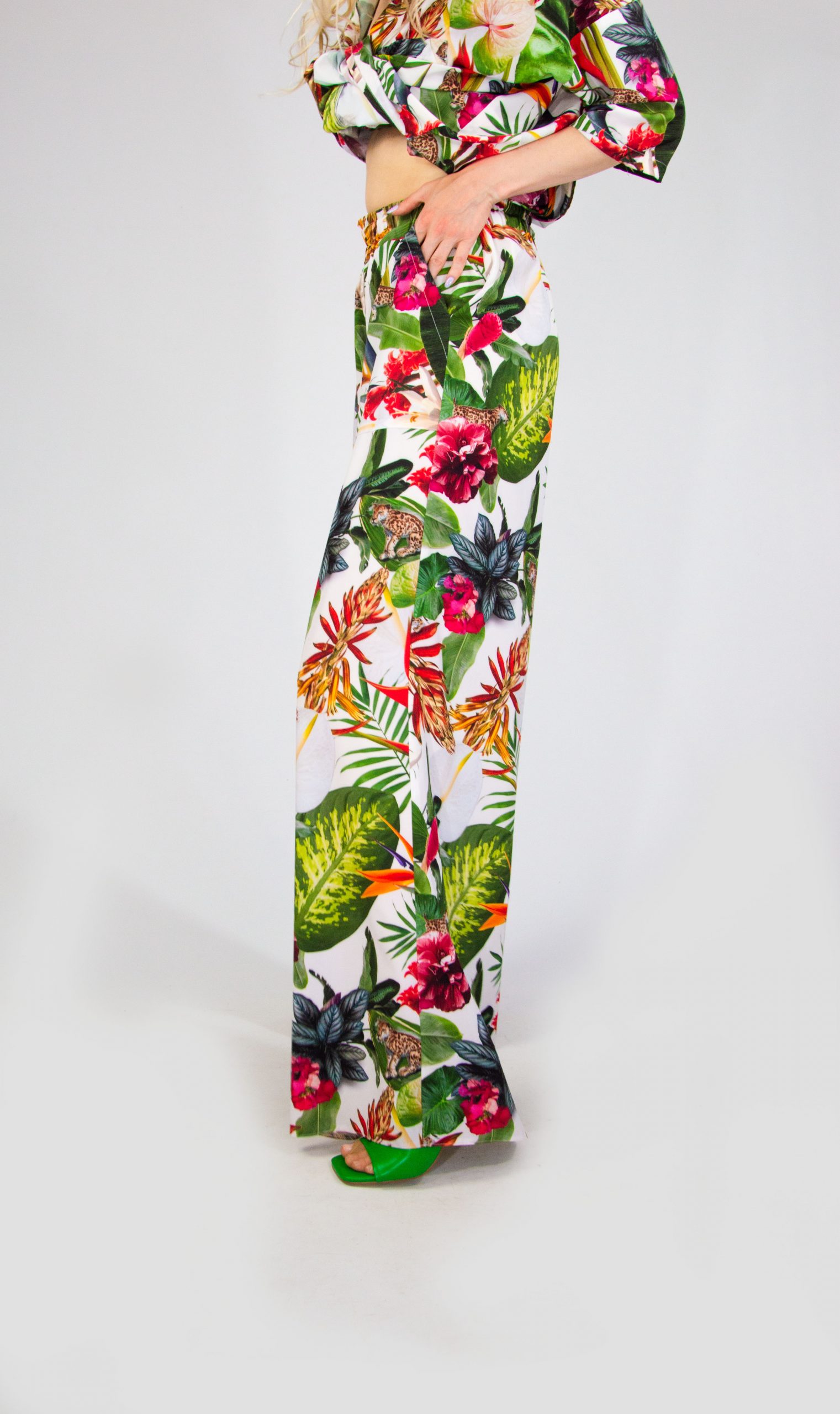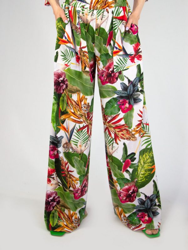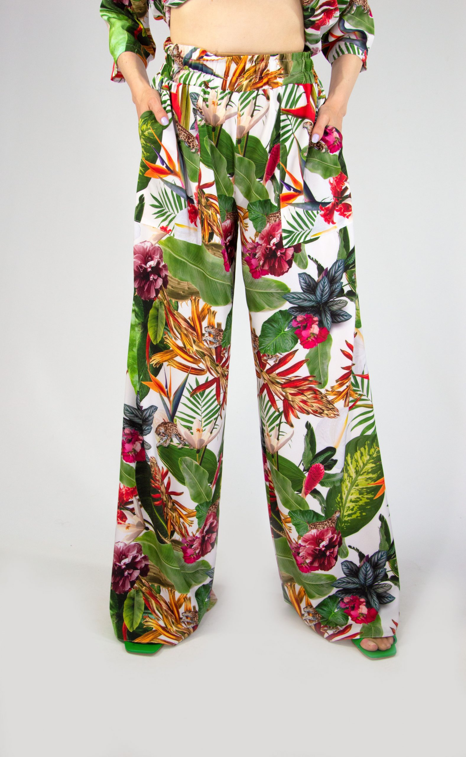 Ak hľadáte skutočne pohodlné nohavice na letné dni, tak Vaše hľadanie sa práve skončilo. Pohodlný široký strih nohavíc v kombinácii s ľahkým materiálom Vám na leto zaručí skutočný komfort. Nohavice sú na gumičku vo výraznom vzore, ktorý ľahko zamaskuje drobné nedostatky. Skombinujte s našou Blúzkou Afrika pre kompletný look.