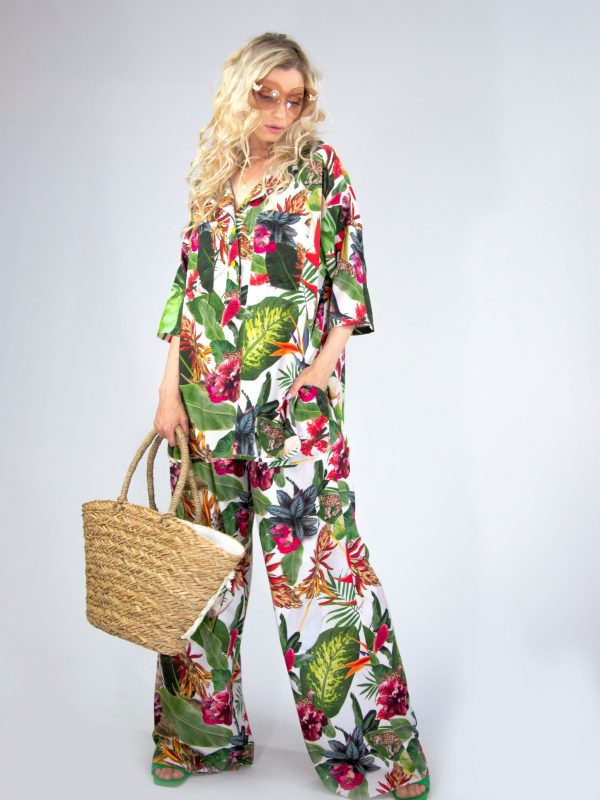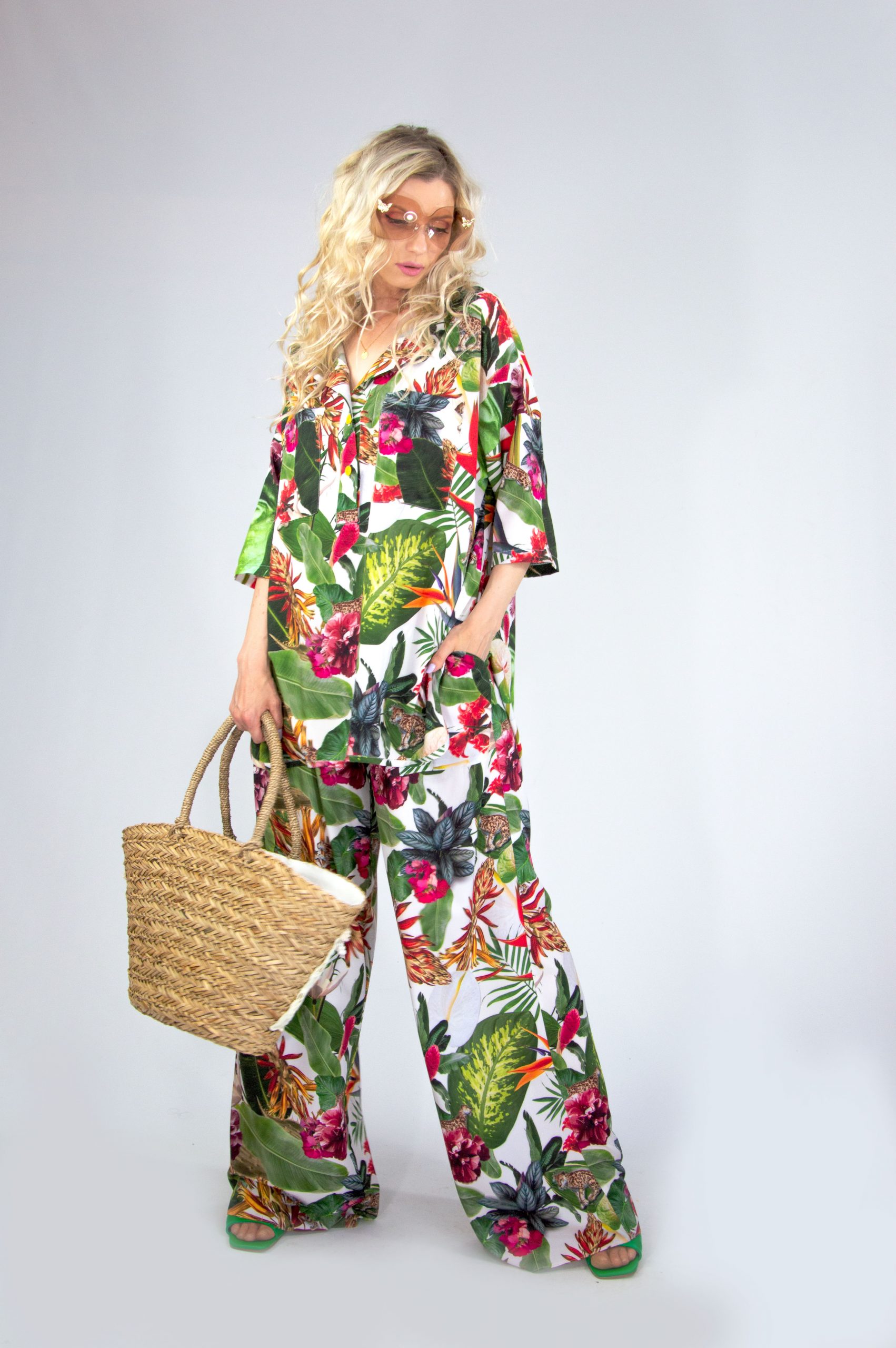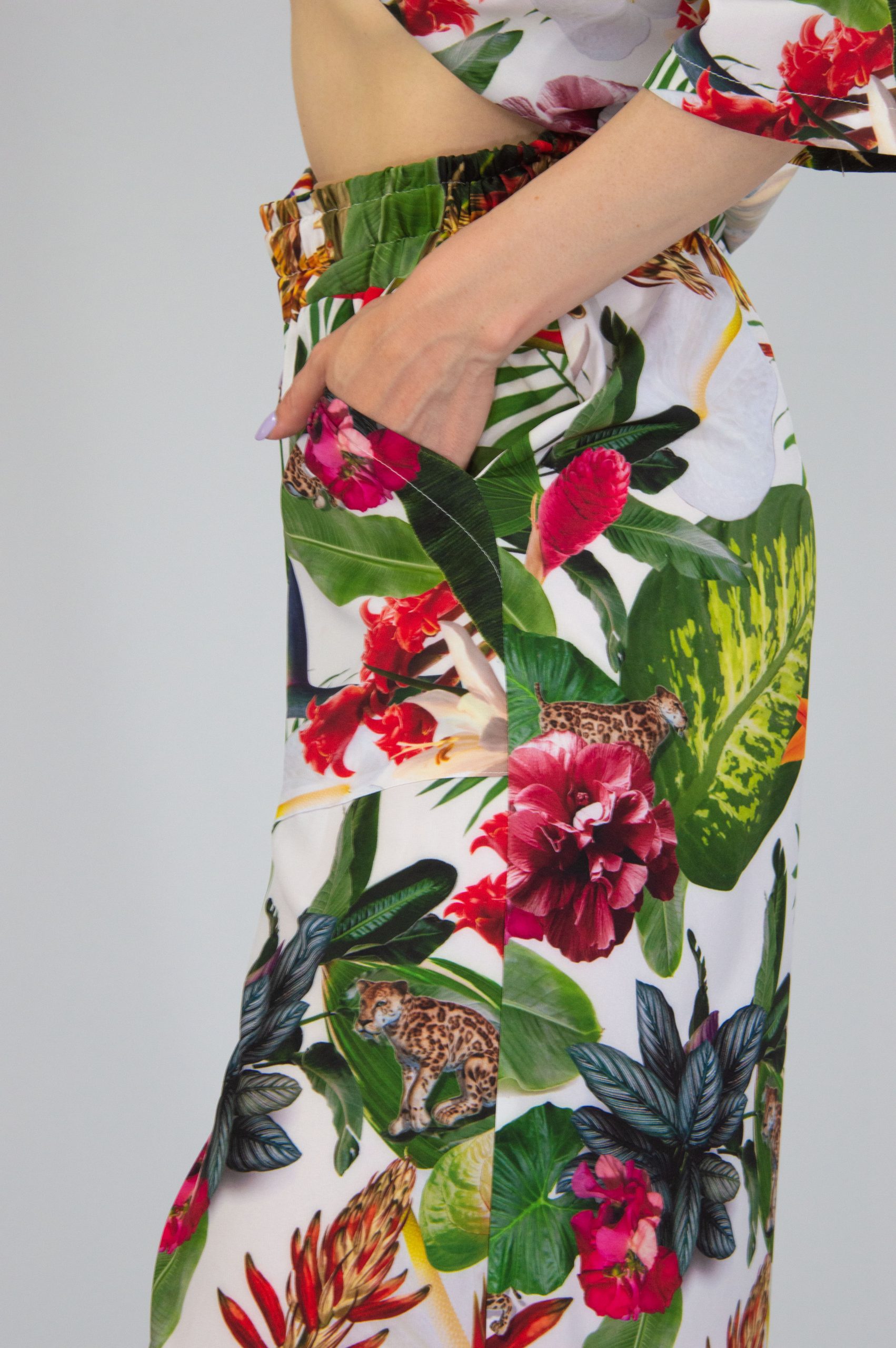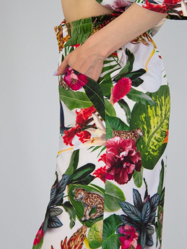 Ak hľadáte skutočne pohodlné nohavice na letné dni, tak Vaše hľadanie sa práve skončilo. Pohodlný široký strih nohavíc v kombinácii s ľahkým materiálom Vám na leto zaručí skutočný komfort. Nohavice sú na gumičku vo výraznom vzore, ktorý ľahko zamaskuje drobné nedostatky. Skombinujte s našou Blúzkou Afrika pre kompletný look.
