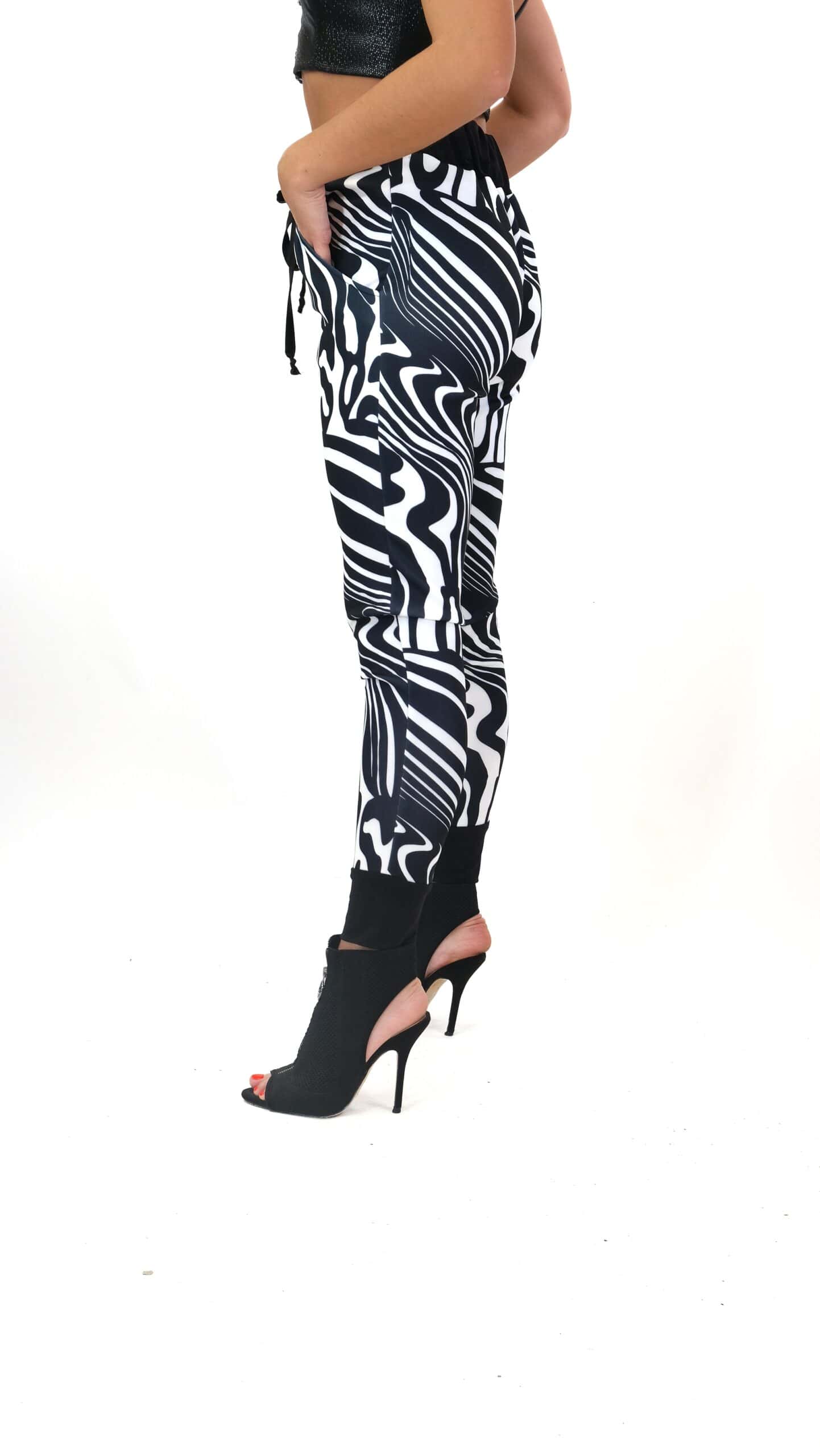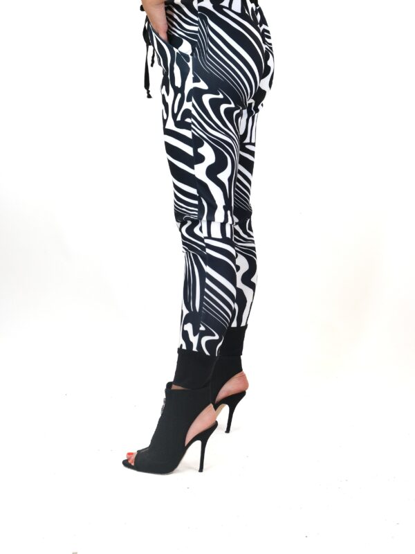 Nohavice sú ušité v ležérnom strihu, ktorý výborne sadne na každý typ postavy a budete sa v nich cítiť skvele počas celého dňa. Nohavice sú navrhnuté z prispôsobivého úpletového materiálu so zvýšeným pásom, tým pádom Vás opticky zoštíhlia. Nohavice majú praktické vrecká a sú navrhnuté v krásnom čierno-bielom vzore, ktorý výborne zamaskuje drobné nedostatky. Pre kompletný look skombinujte s kardiganom Camouflage.