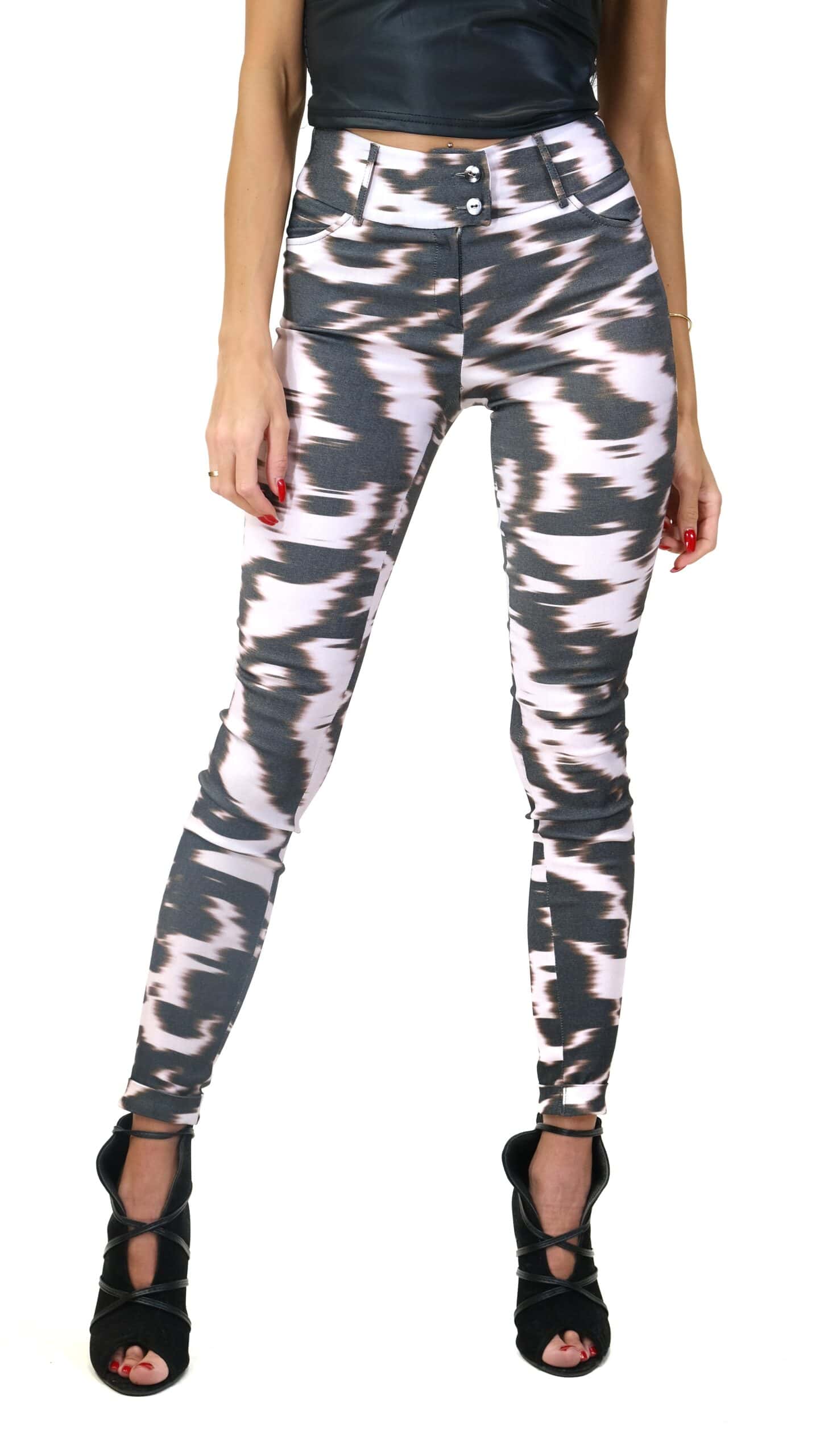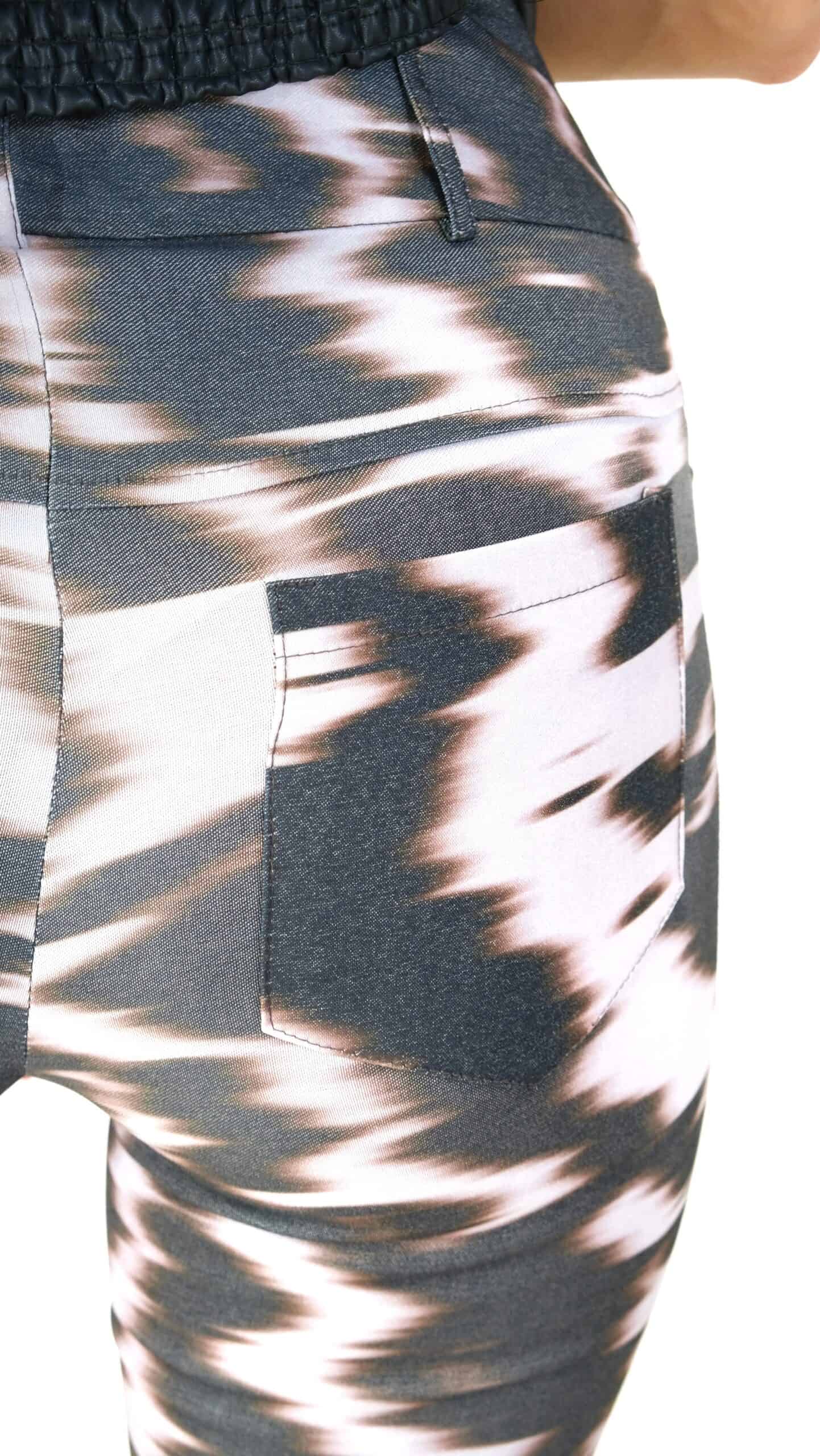 Nohavice sú navrhnuté v tlmenom zvieracom vzore, v ktorom dominuje béžová a čierna farba. Nohavice sú ušité z elastického materiálu a skvele sa prispôsobia Vašej postave. Nohavice majú zvýšený pás a budete sa sa v nich vďaka tomu cítiť komfortne celý čas.