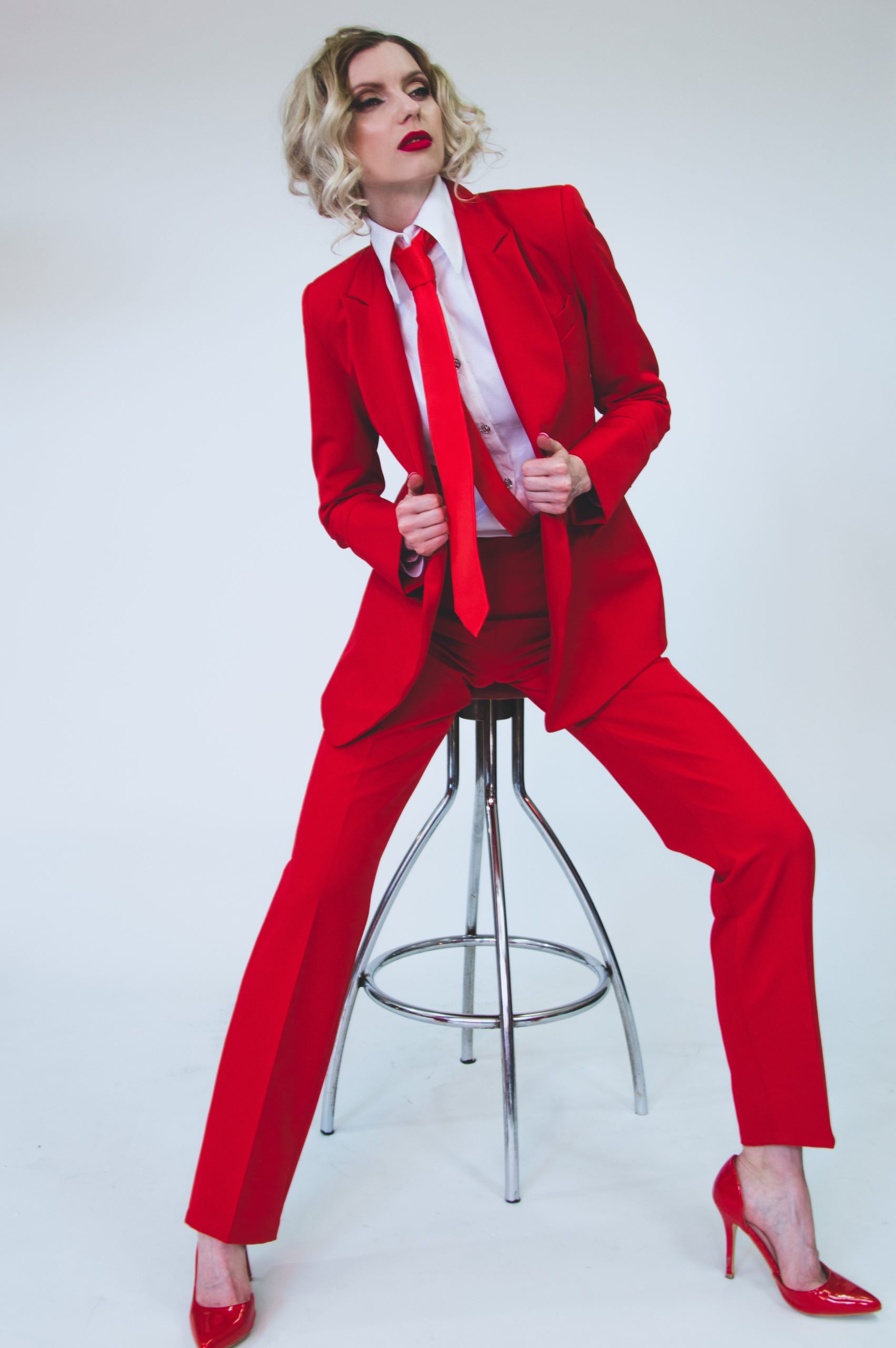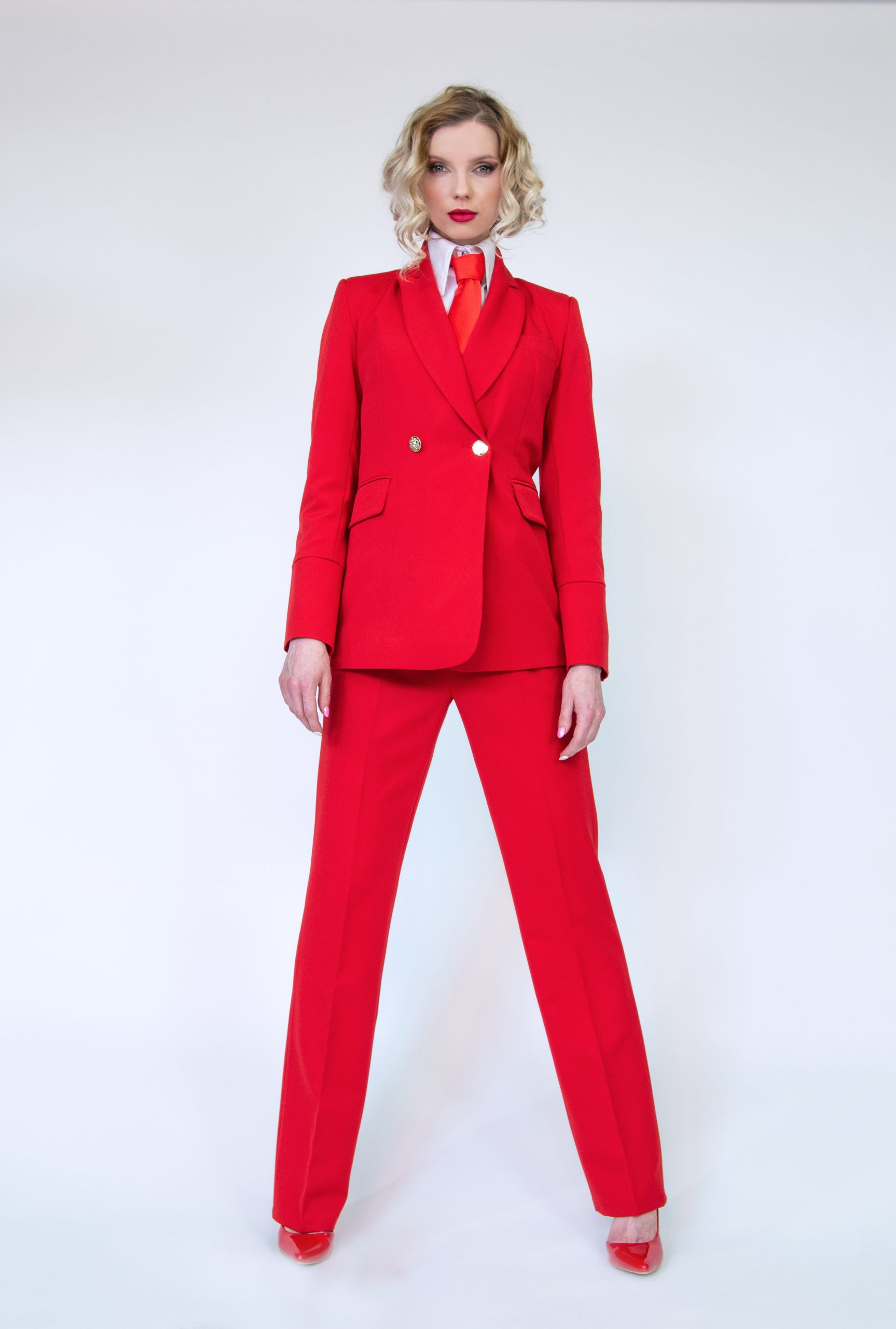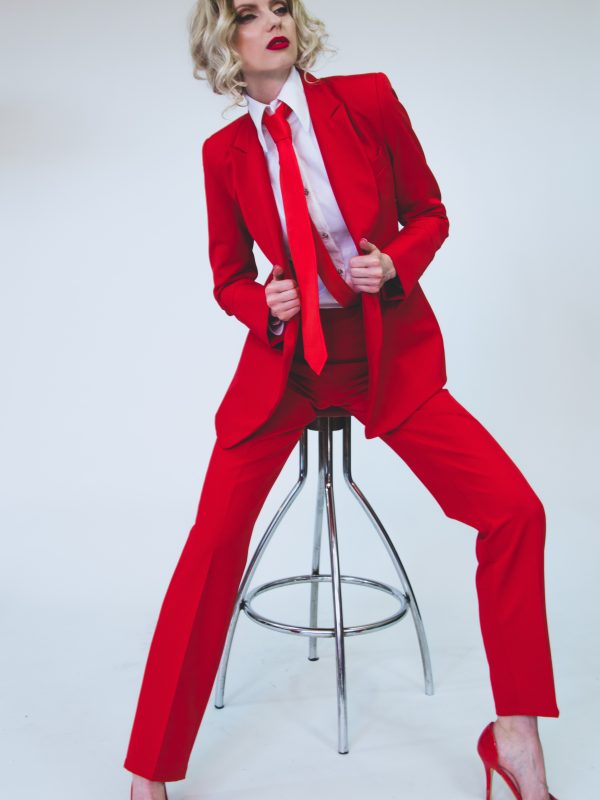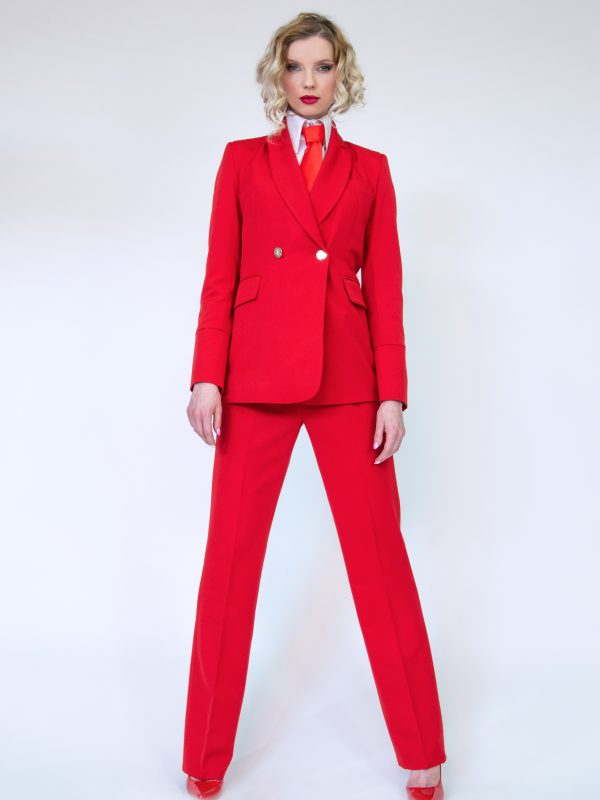 Nohavice úzkeho strihu z elastickej kostýmovky skvele padnú na postavu.