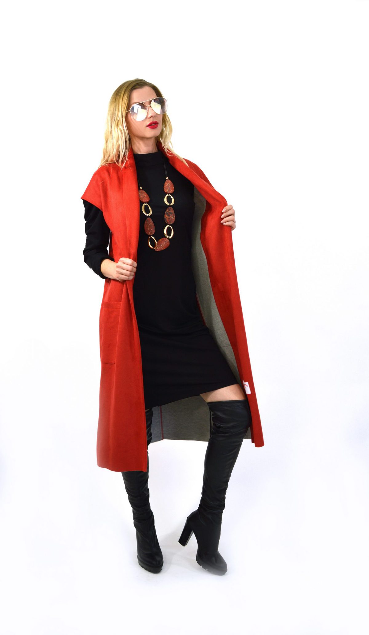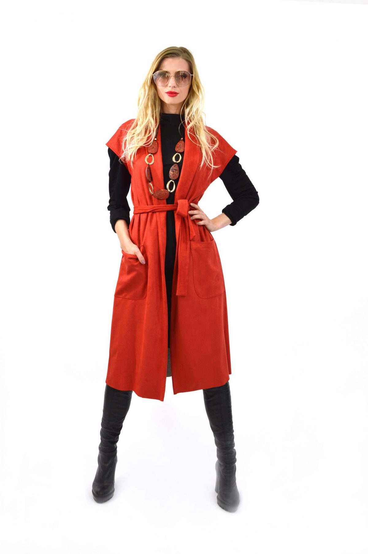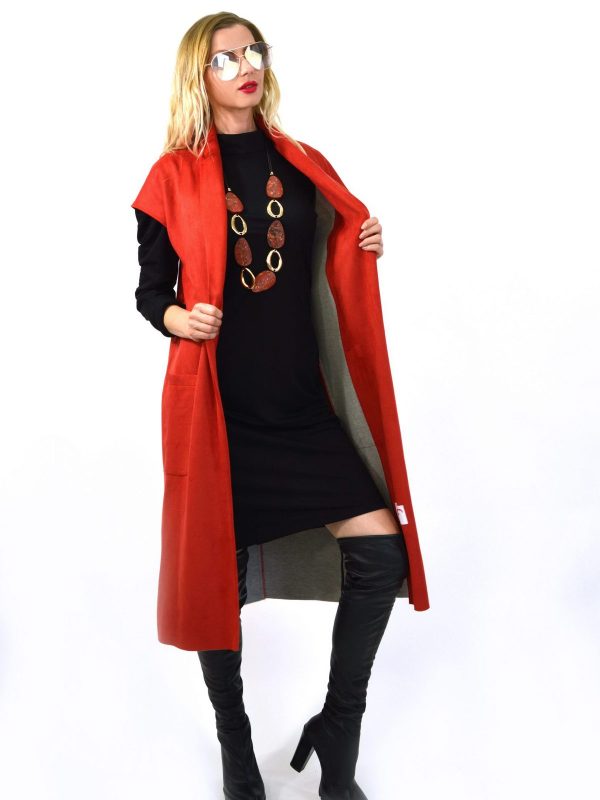 Pre milovníčky vrstvenia počas bláznivých aj chladných jesenných dní sme ušili Cardigan Lisle. Cardigan je v tehlovo červenom prevedení a ľahko sa kombinuje aj s takými stálicami jesenného šatníka ako čierna alebo okrová. Cardigan má funkčné vrecká .