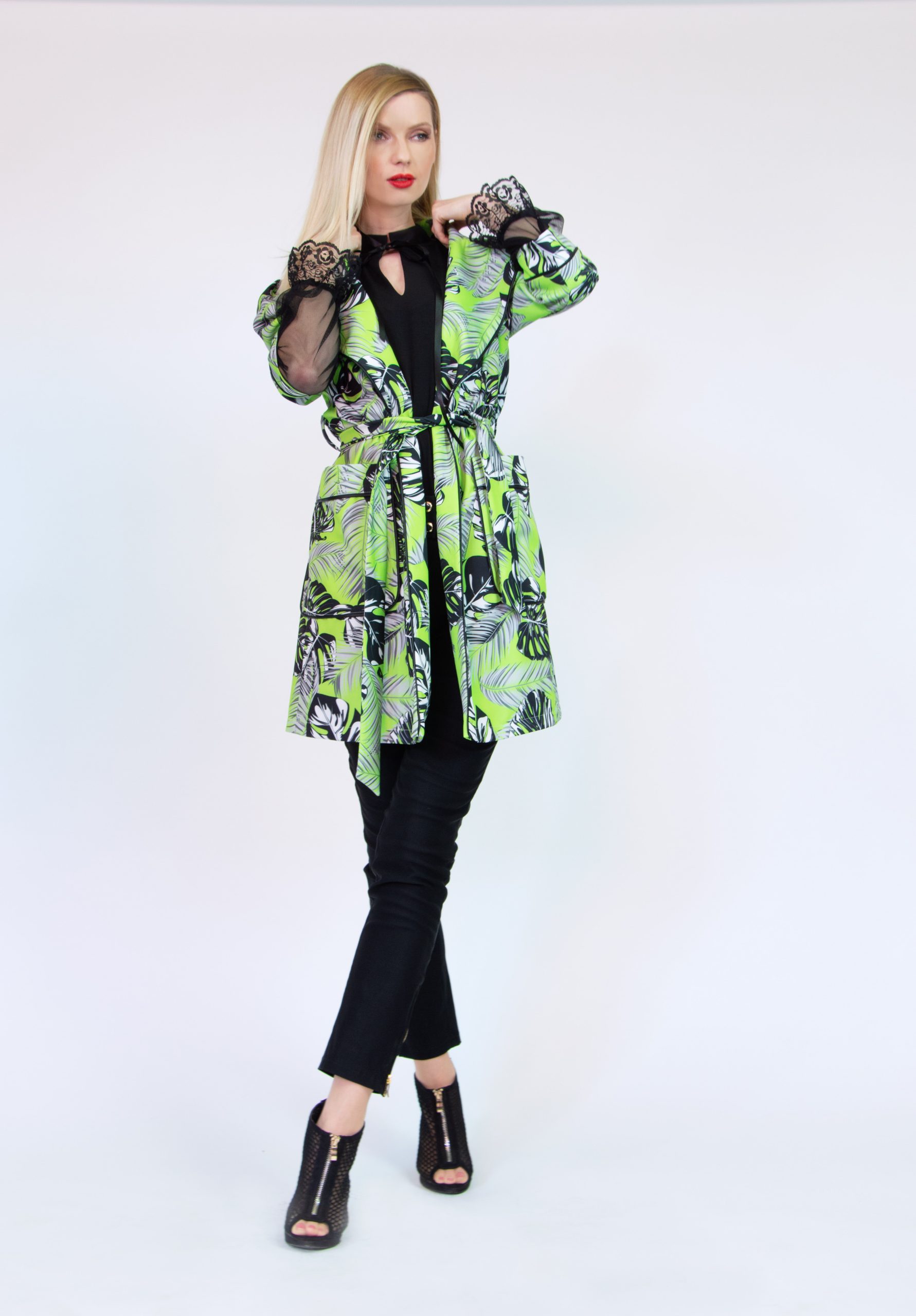Pre tých z Vás , ktorý majú radi jarné vzory ale myslia si , že kvety patria len do vázy. Prinášame nepodšitý kardigan olemovaný čiernou koženkou so vzorom papradia. Kardigan má dve funkčné vrecká a opasok.