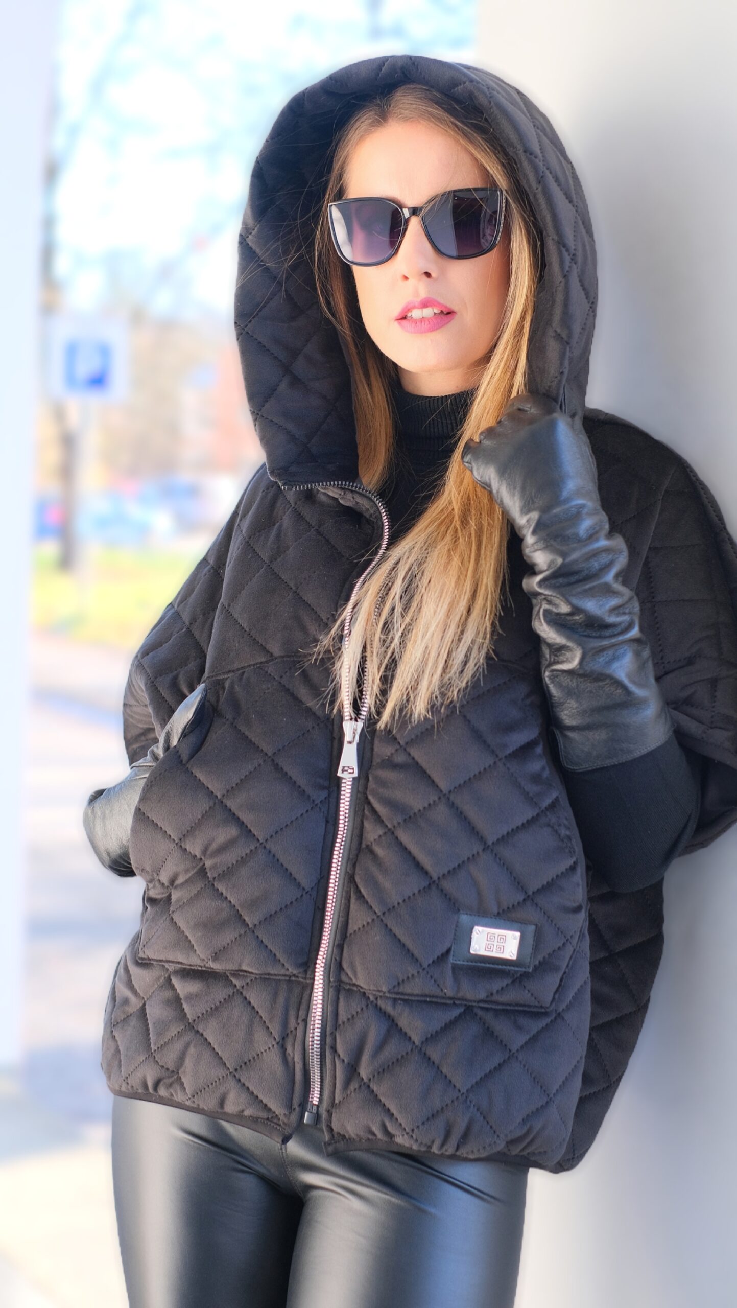 Zaujímavý materiál v ešte zaujímavejšom strihovom prevedení . Na bunde Vás zaujme bohatá kapucňa a vestový strih bundičky, ktorý je vhodný na zimné ale aj jarné obdobie, kedy si môžete tento krásny kúsok navrstviť a kombinovať k bežným teplákovým súpravám alebo k nohaviciam.