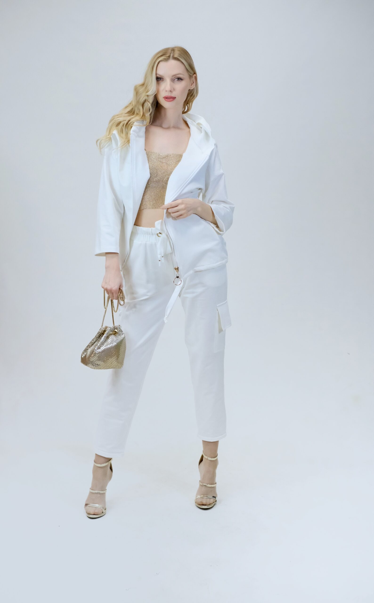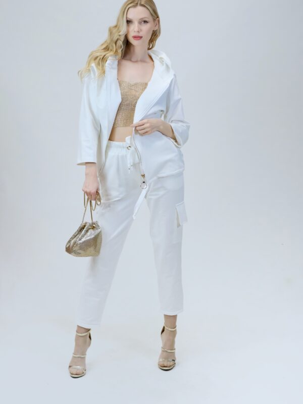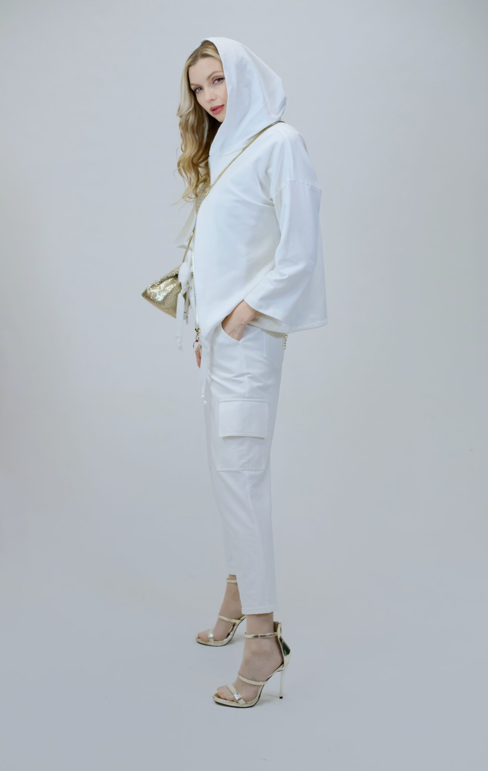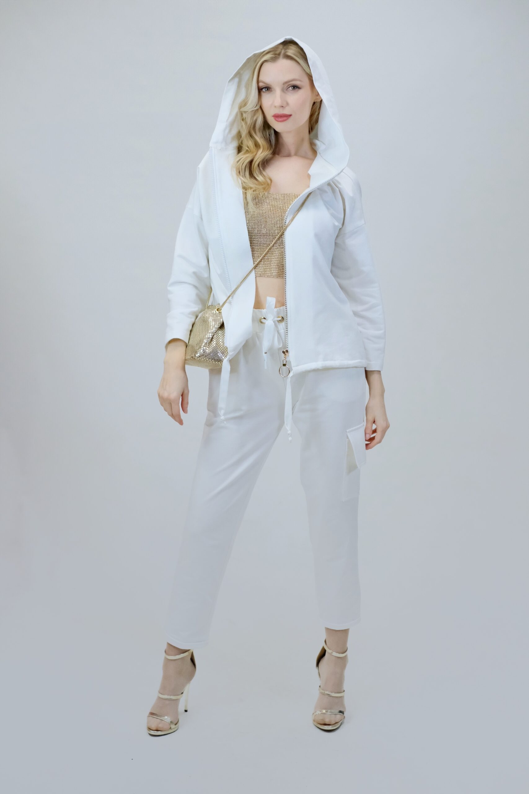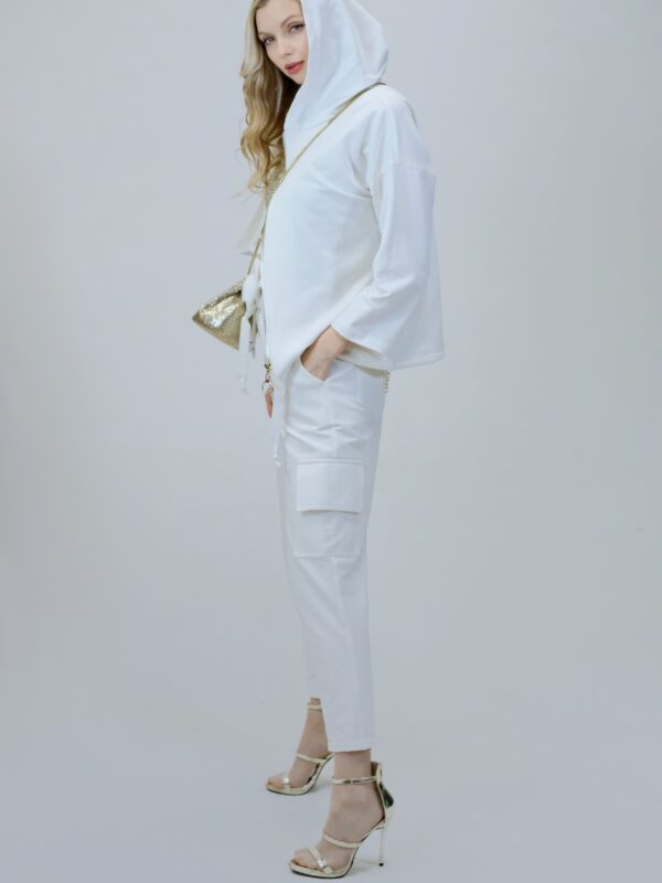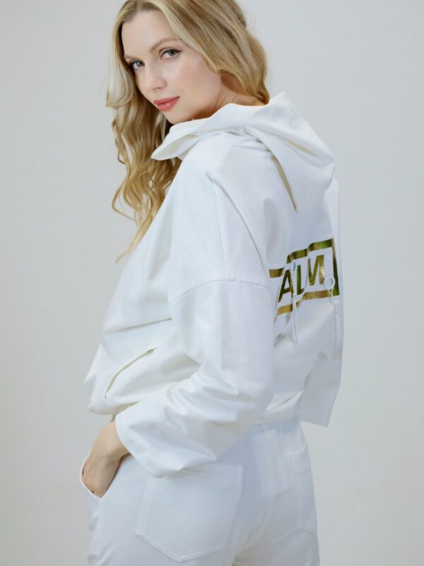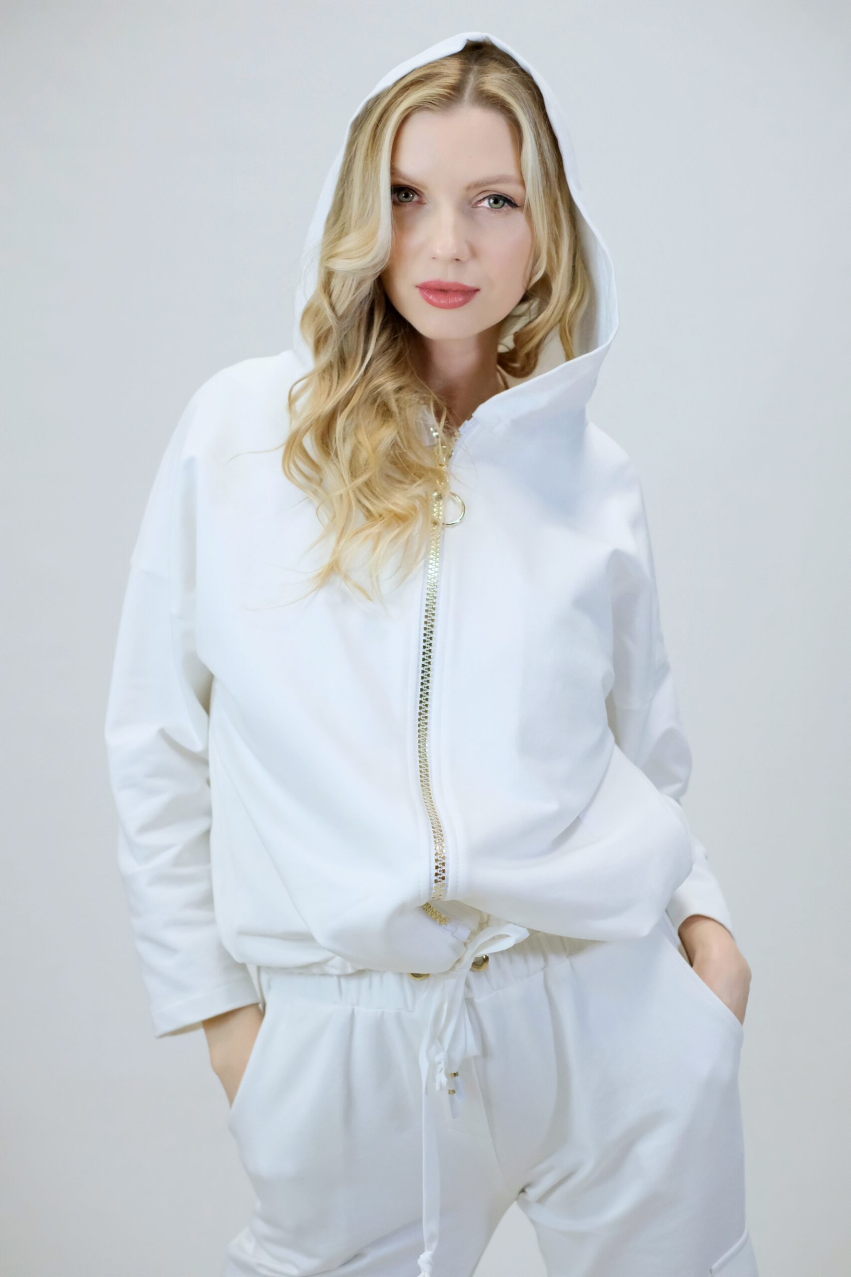 Mikina je navrhnutá z pohodlnej bavlnenej látky, v ktorej sa budete cítiť výborne aj počas náročných dní. Mikina je navrhnutá vo voľnom strihu a výborne sadne na každý typ postavy. Mikina má funkčnú kapucne. Zaujímavým detailom je nášivka na zadnej časti, ktorá svojou zlatou farbou výborne mladý k ozdobnému zlatému zipsu. Pre ucelený look kombinujte s nohavicami Simplicity. Pre výnimočný efekt kombinujte so zlatými doplnkami ako naša aranžérka.