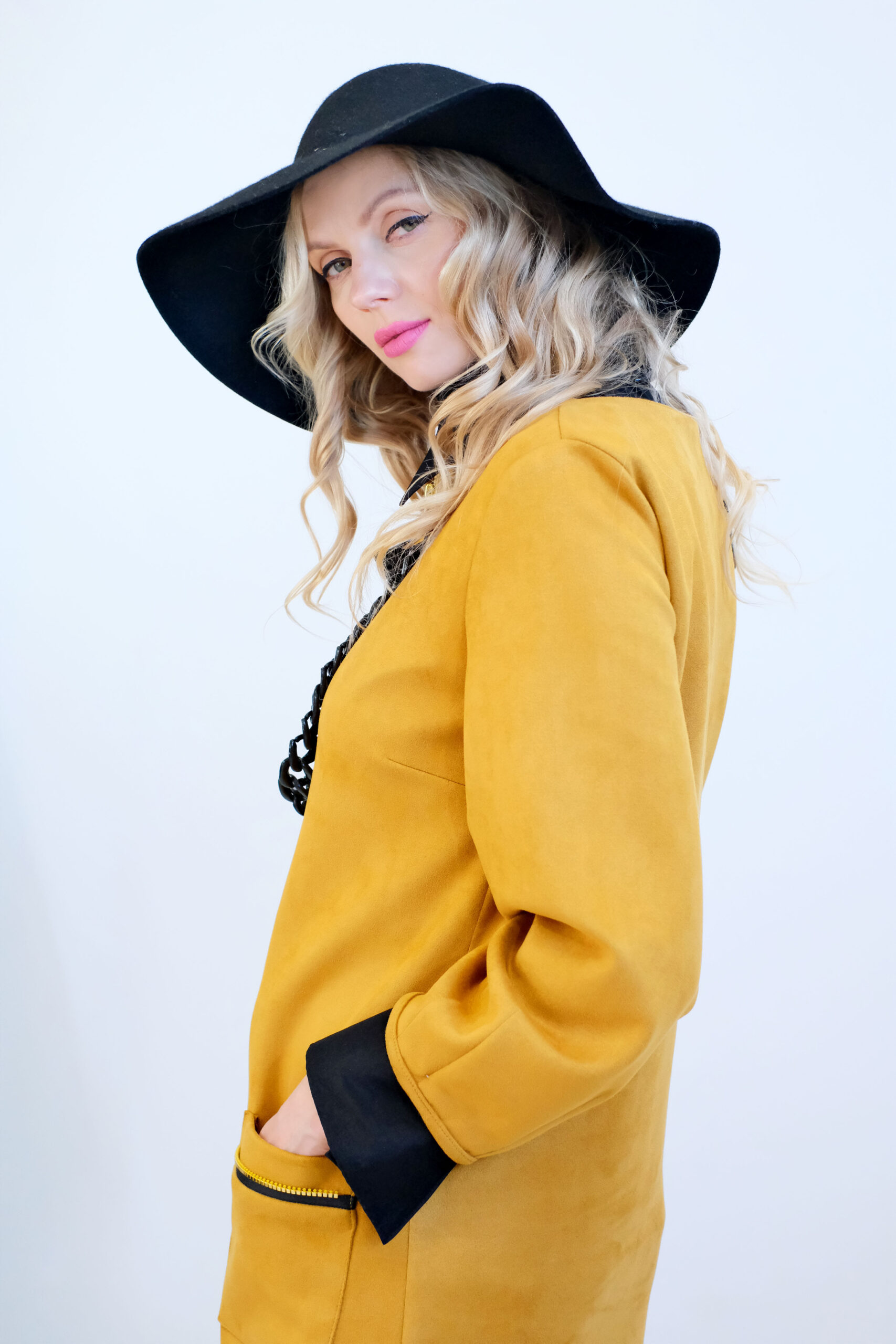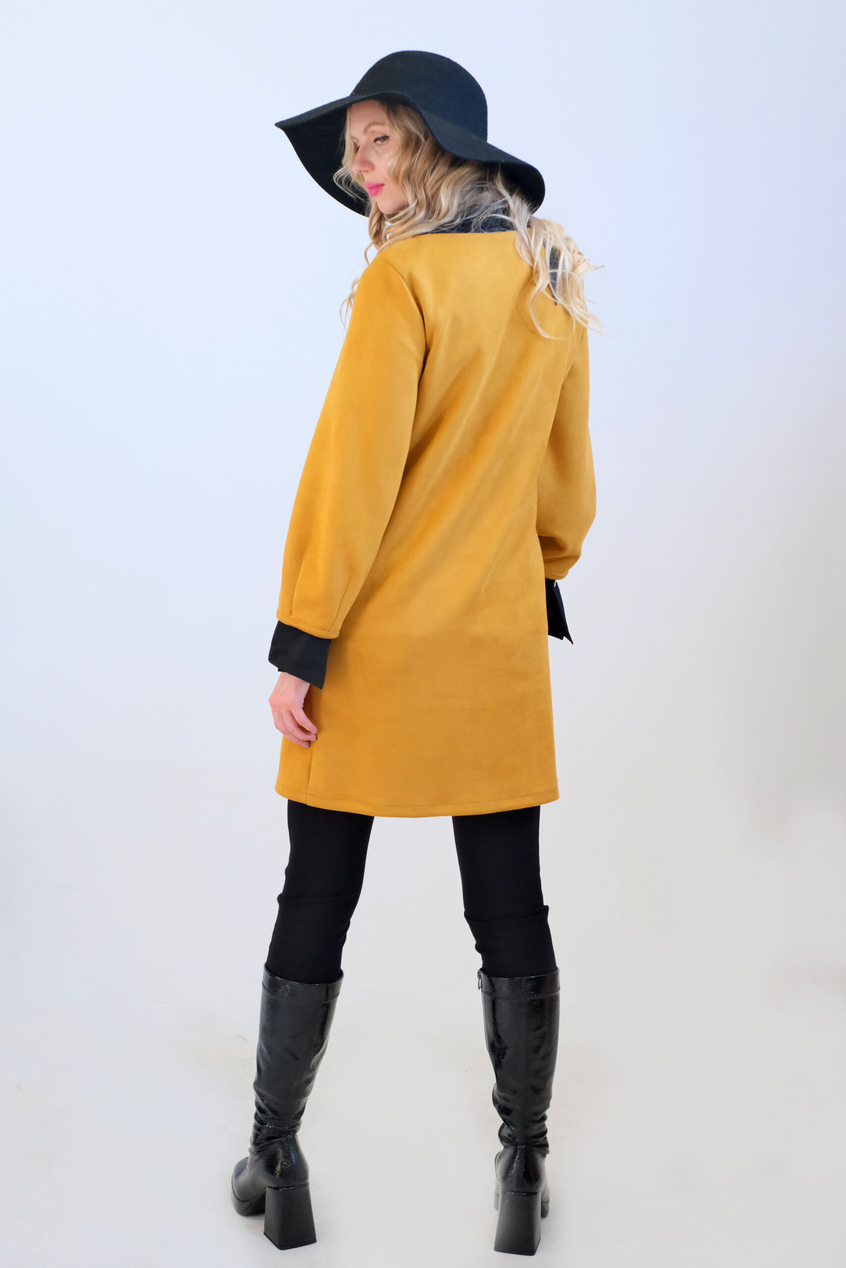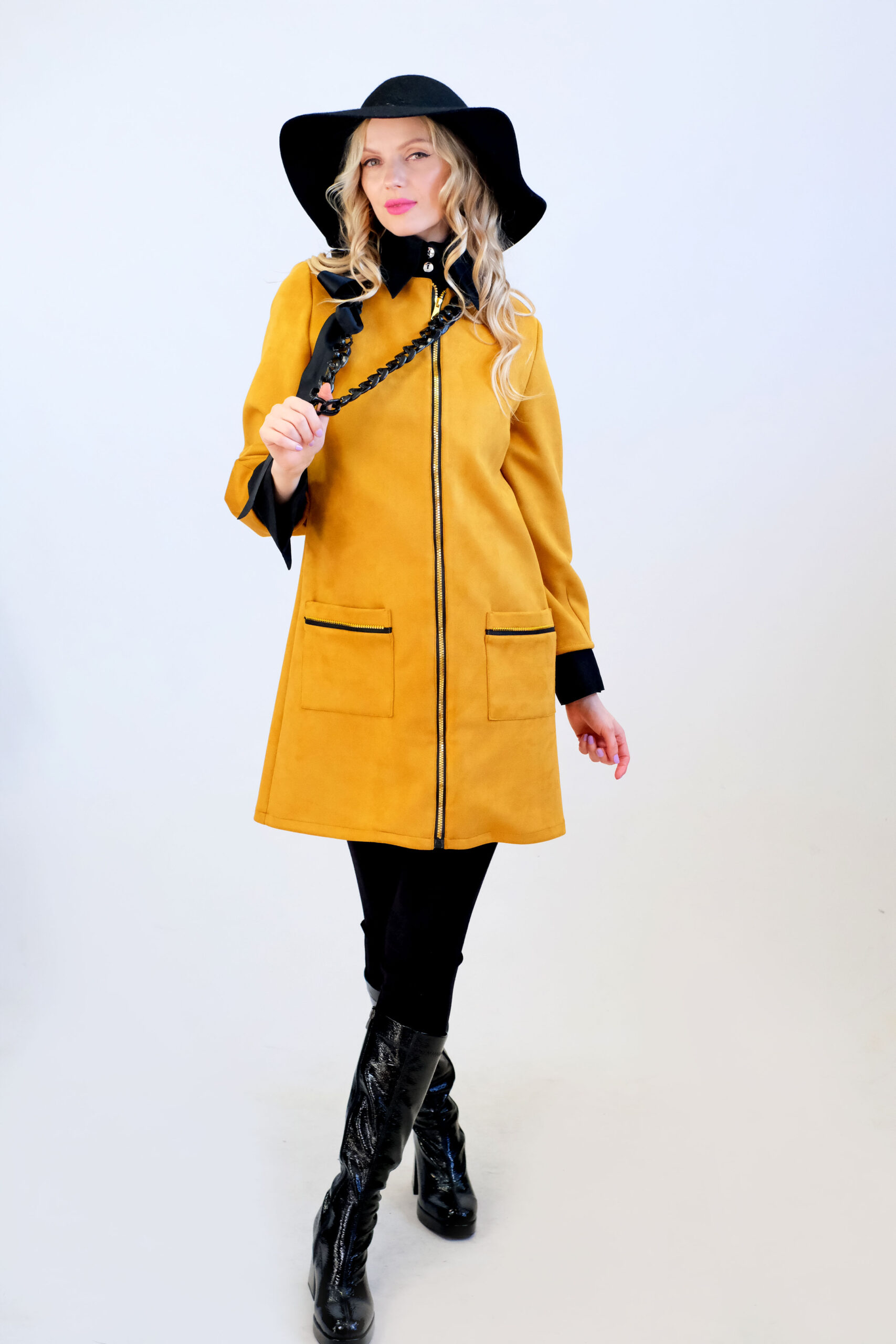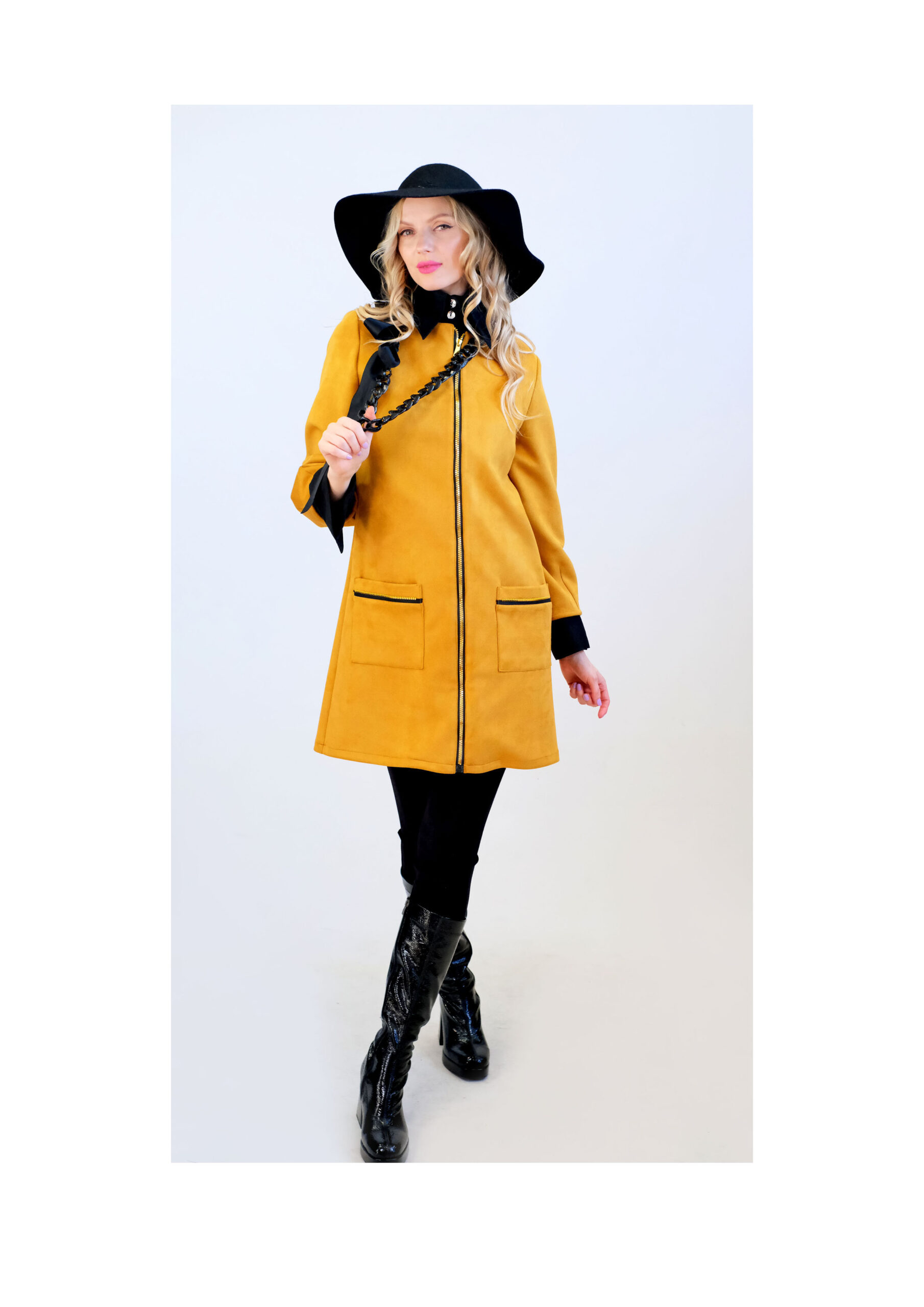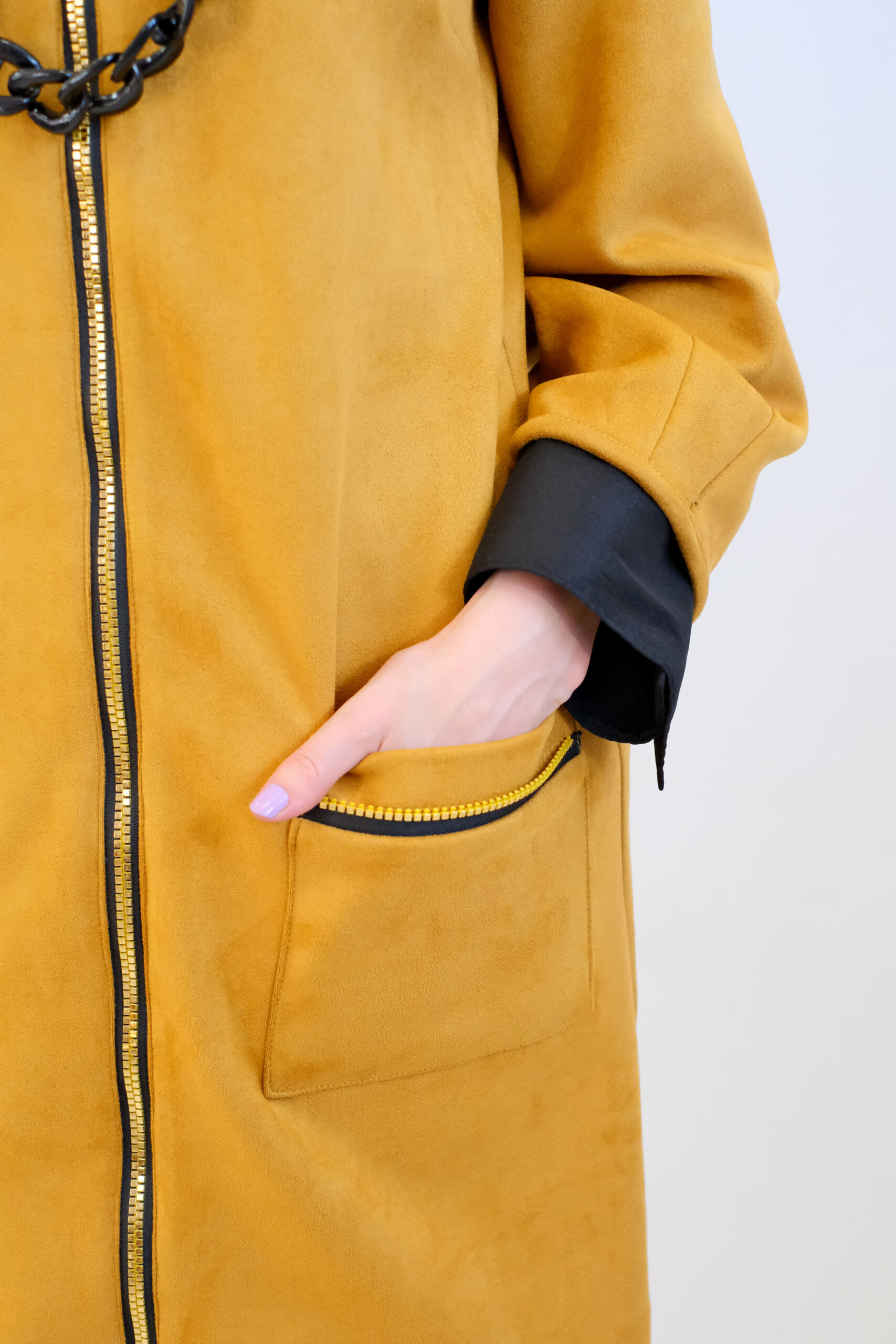 Plášť je navrhnutý v áčkovom strihu, ktorý sadne na každý typ postavy. Plášť ma funčkné a výrazné vrecká, ktoré mu spoločne so zipsom po celej dĺžke dodávaju ležérny nádych. Plášť je ušitý z teplého semišového materiálu a zahreje Vás počas chladnejších dní. Kombinujte s čiernymi doplnkami ako naša aranžérka.