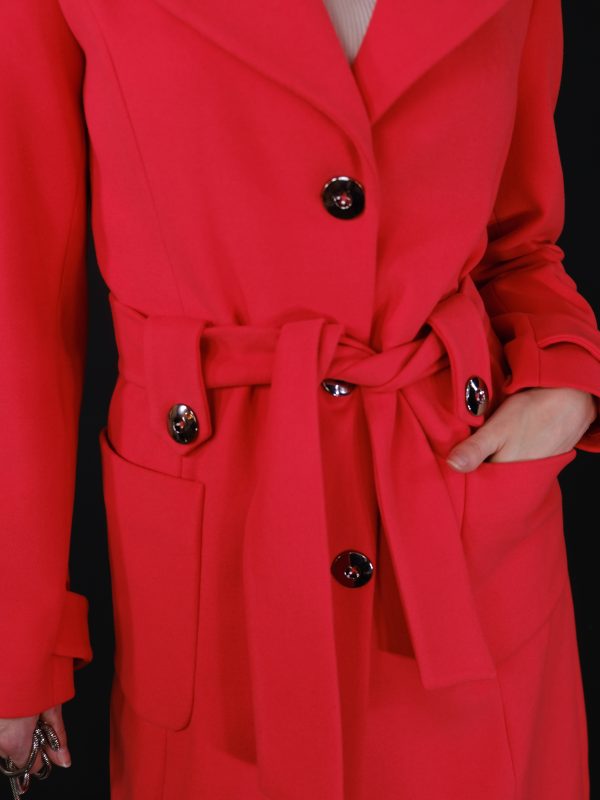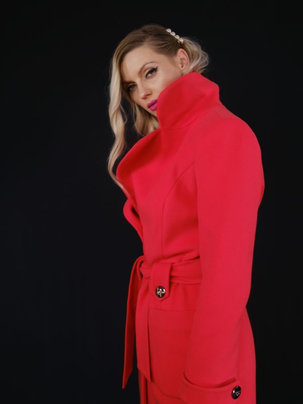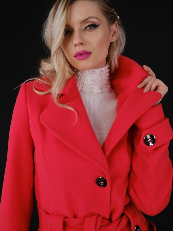 Kabát ušitý s 25 ročnou tradíciou rodinnej dielne vyniká krásnym detailným spracovaním strihu a vysokou kvalitou materiálu , ktorý Vás bude hriať počas chladných zimných dní dlhé roky. Kabát od nás je investícia do Vášho šatníku na dlhé roky. Noste ho s láskou, s akou ich my šijeme. Ak hľadáte kabát, ktorý prinesie farby do hmlistých zimných dní , tak ste ho práve našli. Kabát Coral Life je ušitý v krásnej oranžovo-červenej farbe, ktorá rozžiari pochmúrne zimné dni. Kabát je ušitý v klasickej trenčkotovej fazóne, ktorá bola pôvodne inšpirovaná vojenskými vzormi, ako mnoho praktických kúskov ženského šatníka. Kabát má opasok, ktorým si môžete opticky zúžiť pás.