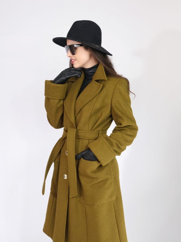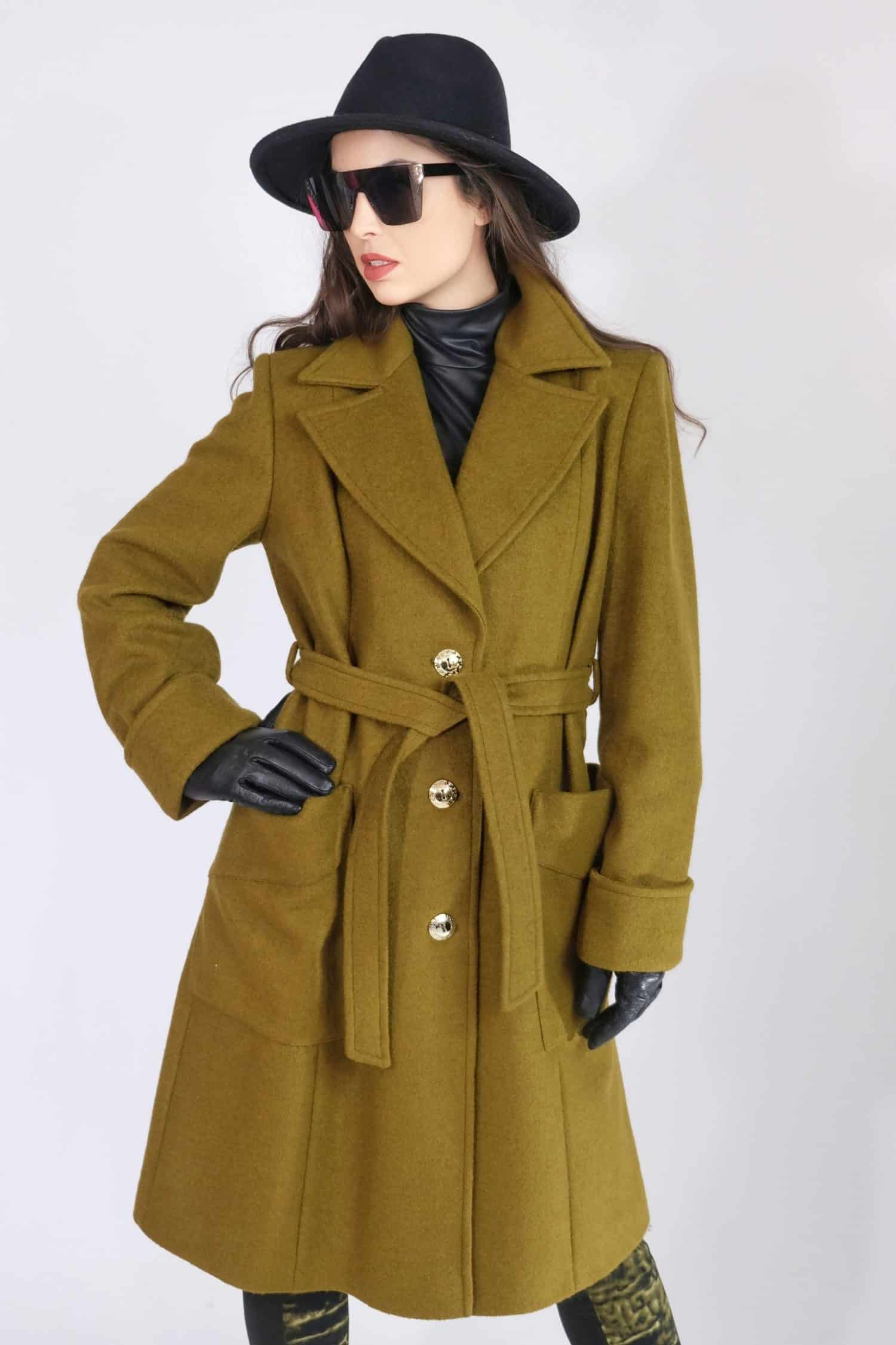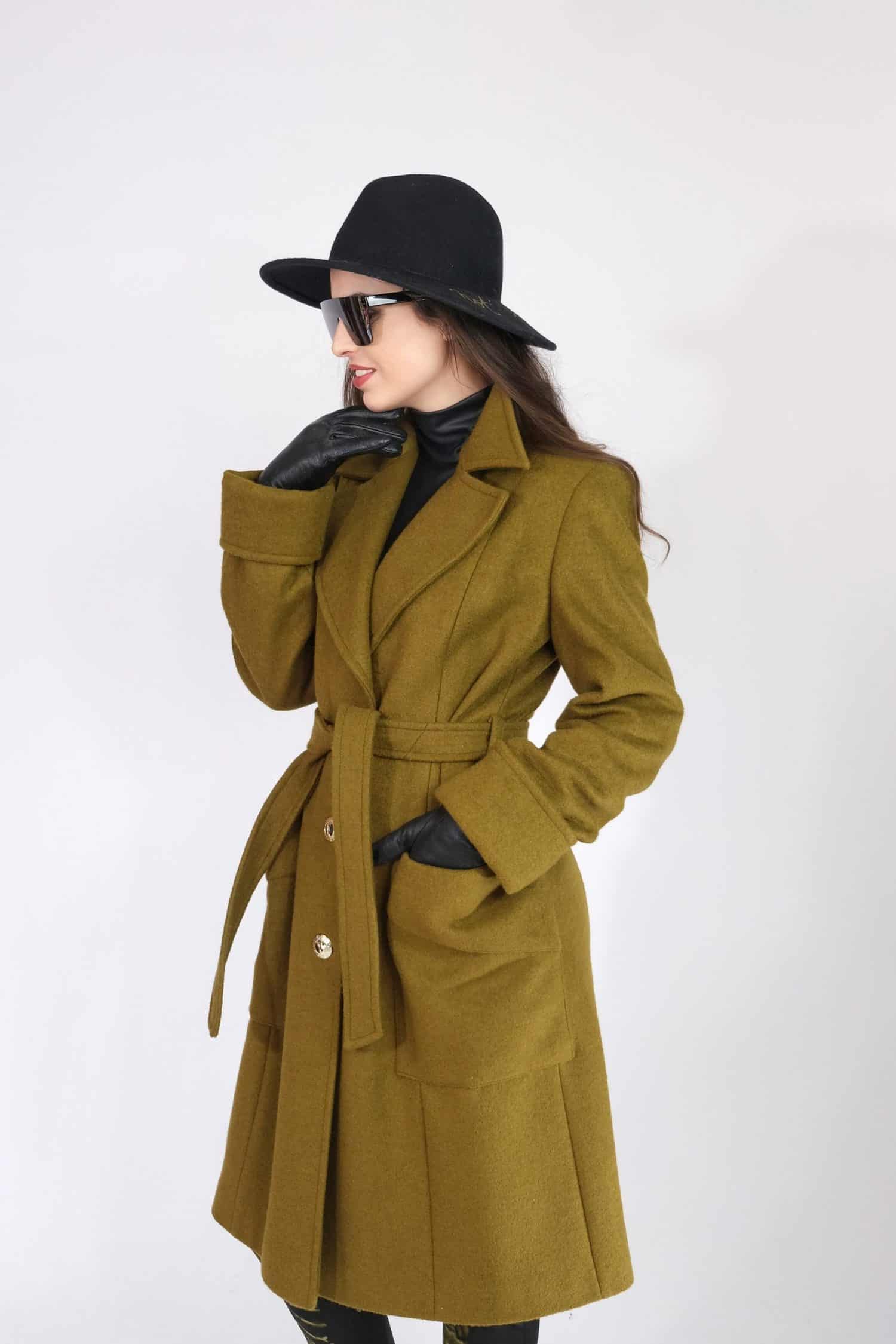 Kabát ušitý s 25 ročnou tradíciou rodinnej dielne vyniká krásnym detailným spracovaním strihu a vysokou kvalitou materiálu , ktorý Vás bude hriať počas chladných zimných dní dlhé roky. Kabát od nás je investícia do Vášho šatníku na dlhé roky. Kabát je ušitý s nadnesenou fazónou, ktorá je inšpirovaná tradíciou teplých kabátov v armáde. Kabát má bohaté členenie a veľmi praktické veľké vrecká. Kabát má aj opasok, vďaka, ktorému viete opticky zúžiť pás. Machovo zelená je farba zimných období a veľmi dobre sa kombinuje s ostatnými zimnými farbami ako červenou, bordovou alebo žltou či cyklamenovou.