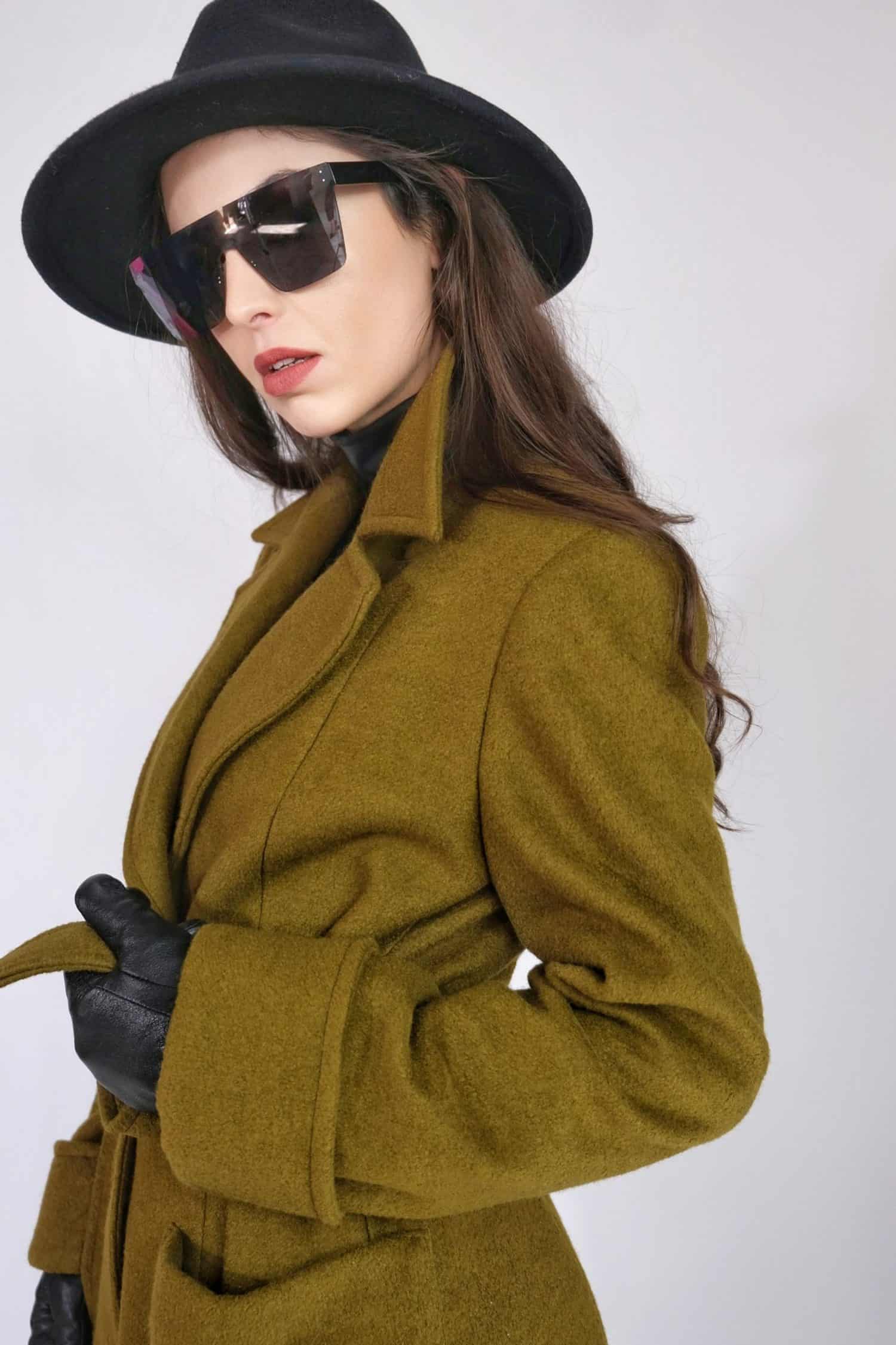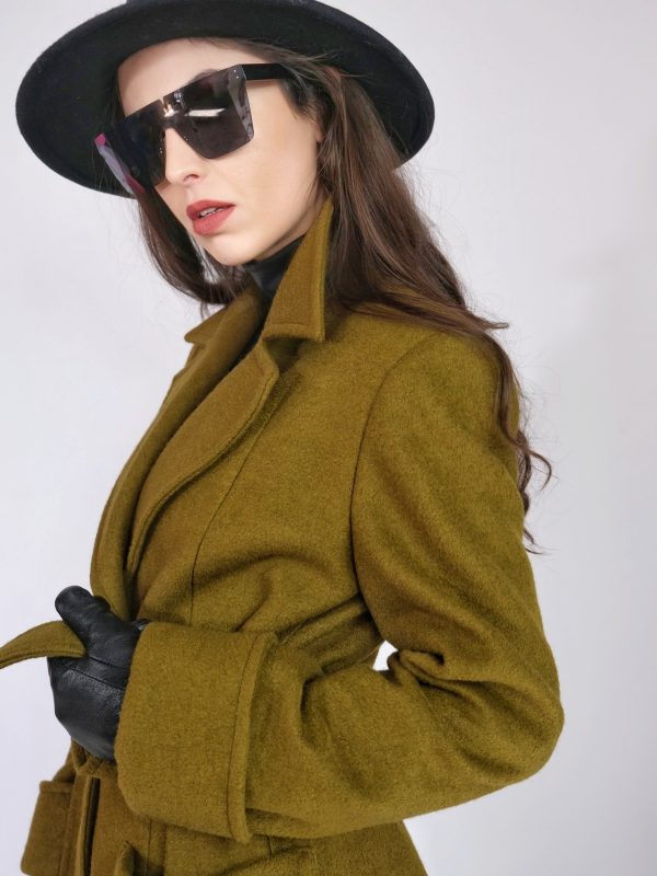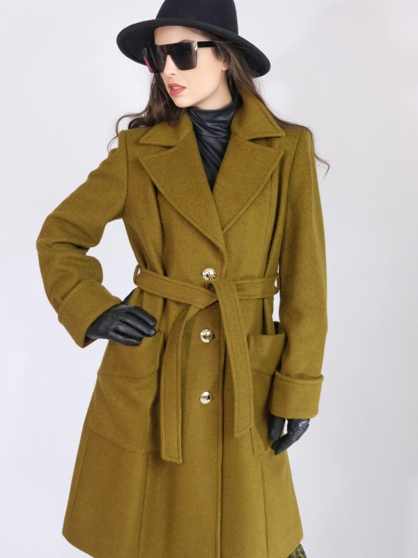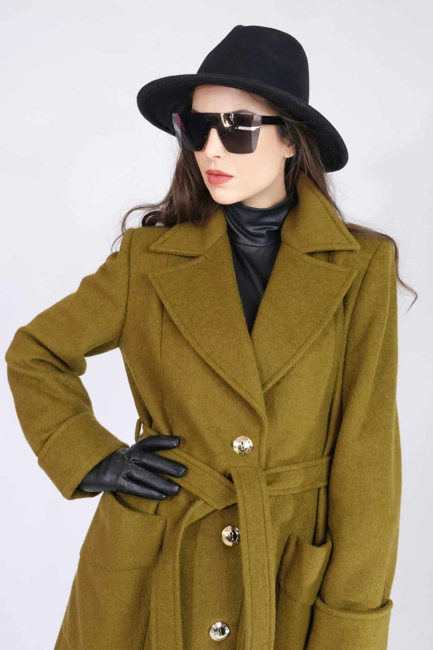 Kabát ušitý s 25 ročnou tradíciou rodinnej dielne vyniká krásnym detailným spracovaním strihu a vysokou kvalitou materiálu , ktorý Vás bude hriať počas chladných zimných dní dlhé roky. Kabát od nás je investícia do Vášho šatníku na dlhé roky. Kabát je ušitý s nadnesenou fazónou, ktorá je inšpirovaná tradíciou teplých kabátov v armáde. Kabát má bohaté členenie a veľmi praktické veľké vrecká. Kabát má aj opasok, vďaka, ktorému viete opticky zúžiť pás. Machovo zelená je farba zimných období a veľmi dobre sa kombinuje s ostatnými zimnými farbami ako červenou, bordovou alebo žltou či cyklamenovou.
