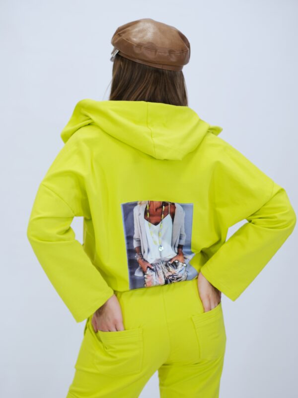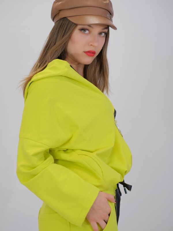 Mikina je ušitá z výborného priedušného materiálu s vysokým zastúpením bavlny. Mikina má praktickú kapucňou. Mikina je ušitá vo výraznej neónovo žltej farbe, ktorá pripomína slnečné lúče. Výrazná farba je kombinovaná s univerzálnou čiernou farbou vo forme zipsov a doplnkov. Mikinu viete ľahko kombinovať so stálicami Vášho šatníka napríklad legínami alebo úzkymi nohavicami na voľný čas. Mikina je určená pre tých z vás ktorí chcú aj vo voľnočasovom oblečení vyzerať Chic. Pre kompletný Look kombinujte s nohavicami Sunlight.