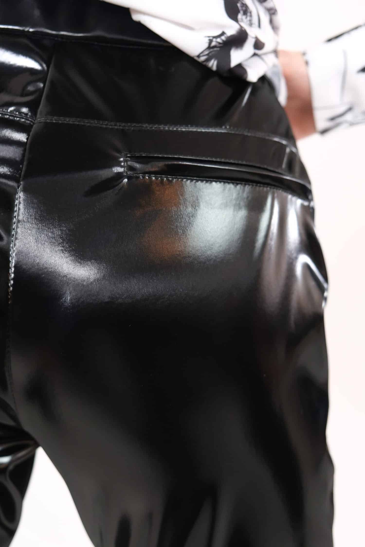 Latexové nohavice ušité vo výborne padnúcom strihu Vás zahrejú počas chladnejších dní. Nohavice ušité v čiernom lesklom latexe oživia každý outfit a vďaka ich farbe sa dajú ľahko kombinovať s celým Vaším šatníkom. Zaujímavým detailom je ozdobný zips.