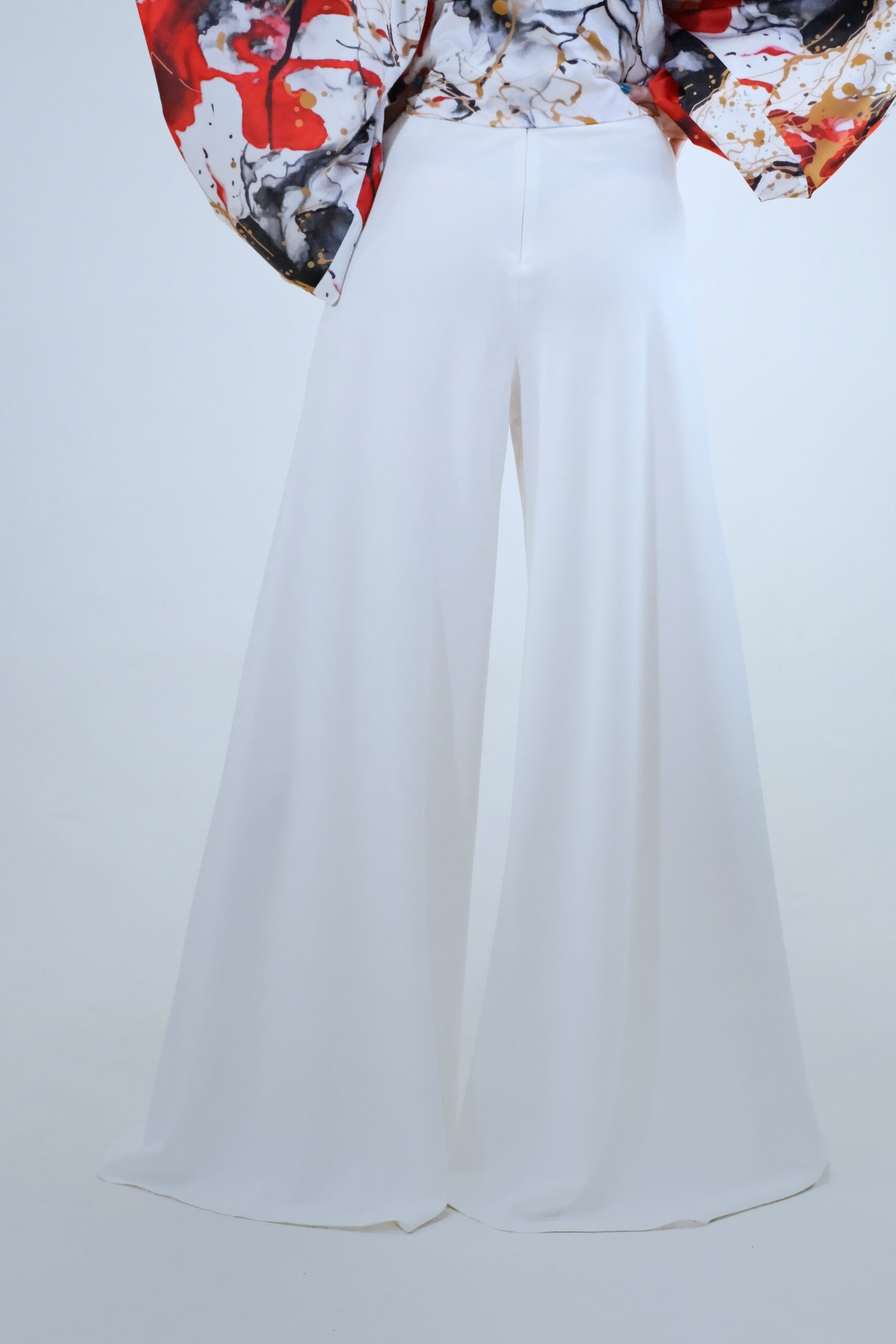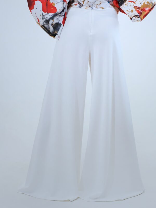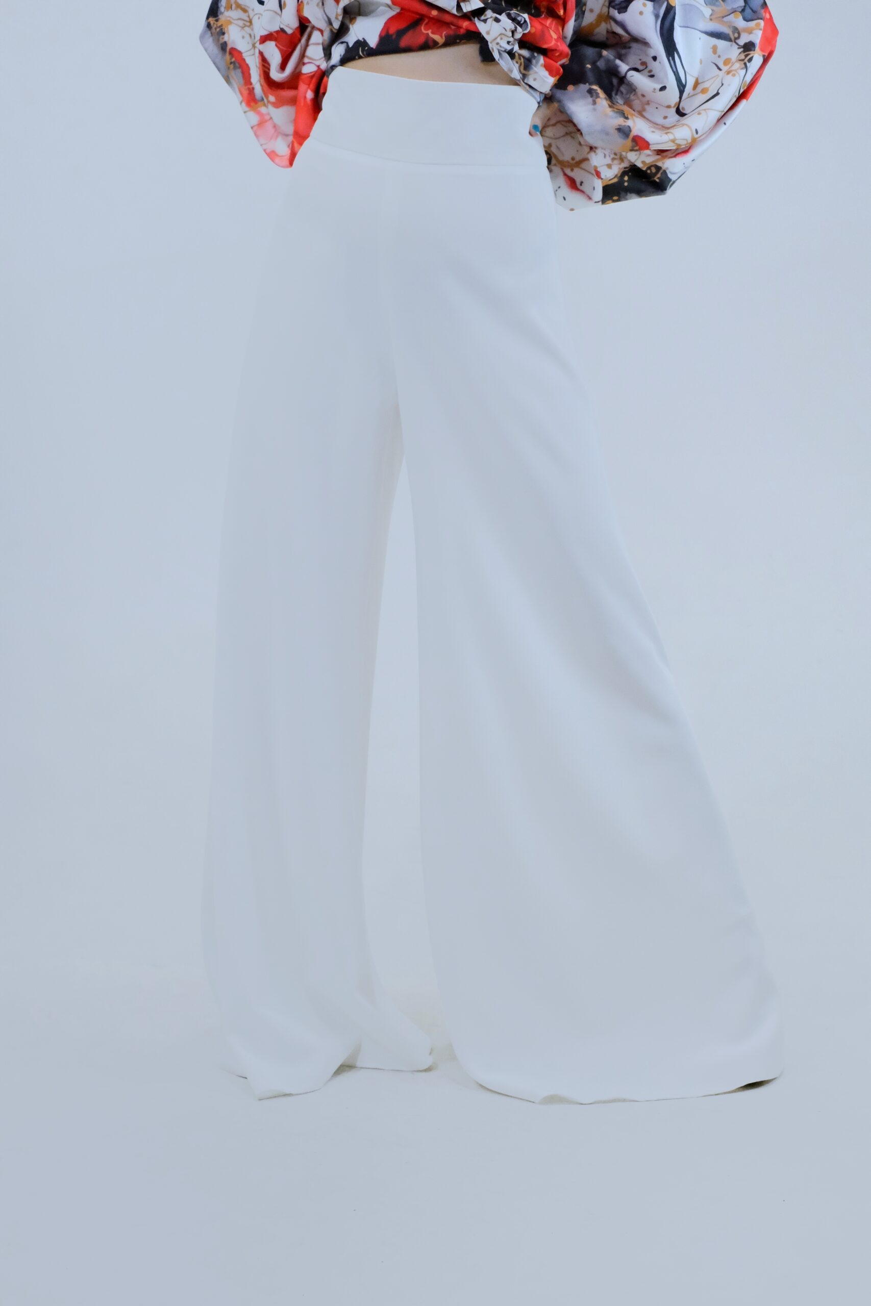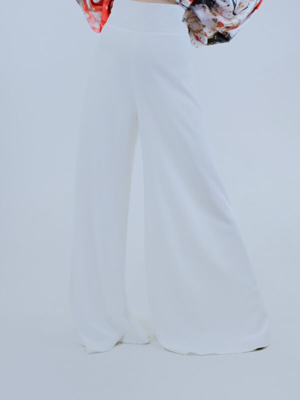 Nohavice sú navrhuté vo výraznom rozširujúcom sa strihu, ktorý im dodáva na elegancii a ležérnosti. Nohavice majú zvýšený pás. Široké nohavice sú skvele pre tie z Vás, ktoré chcú vyzerať elegantne a cítiť sa uvolnene aj v outfite, ktorým nie sú šaty. Nohavice môžete skombinovať s akýmkoľvek topom pre wau efekt kombinujte s výrazným vzorom ako naša aranžérka.