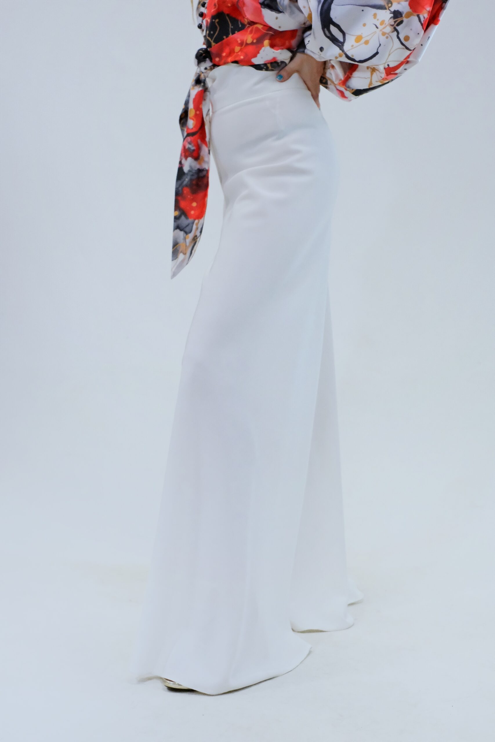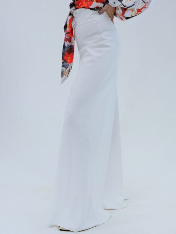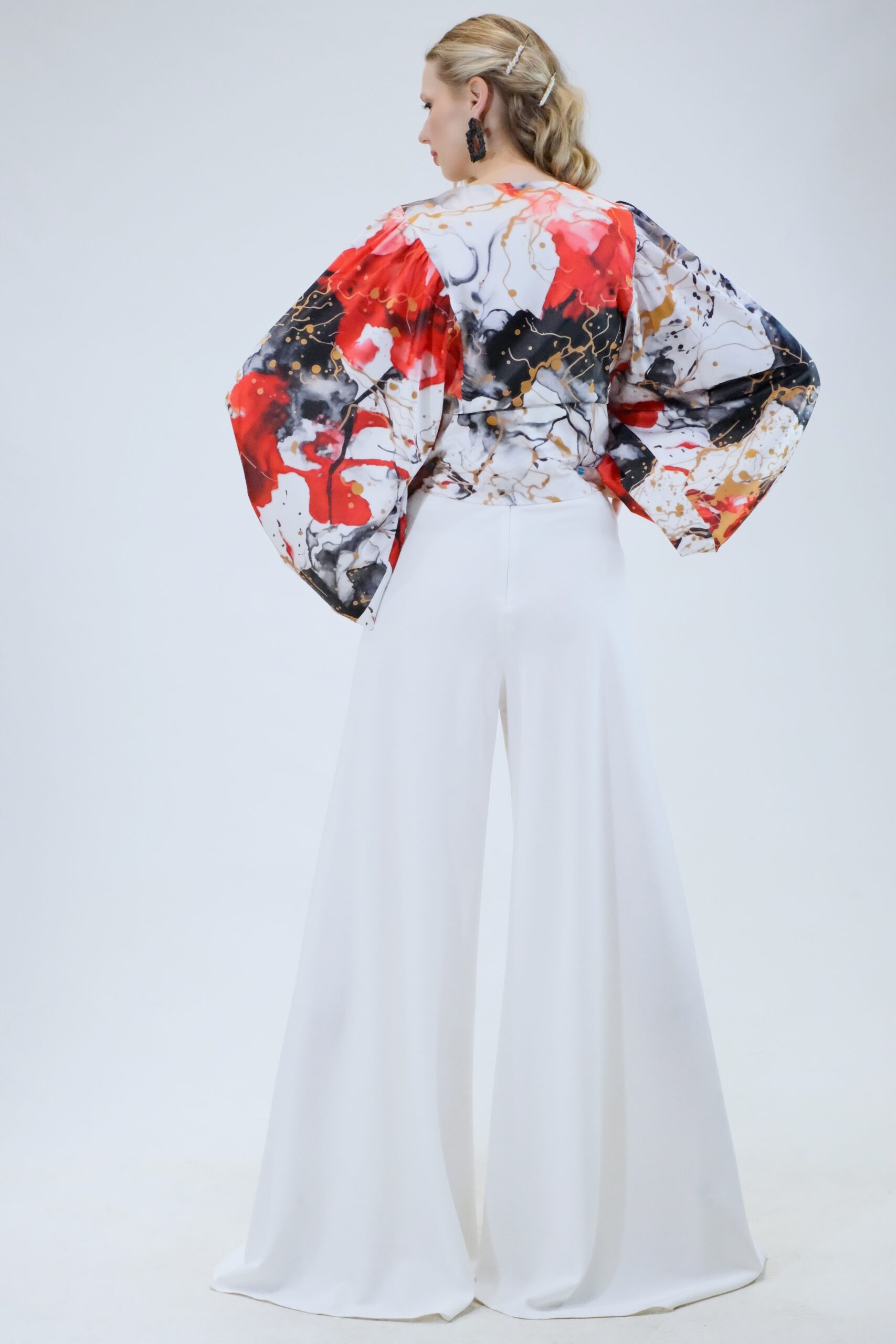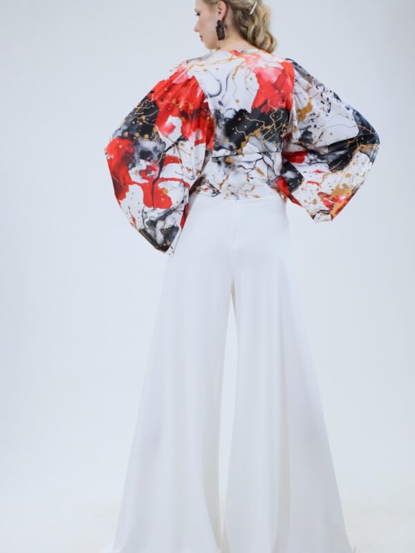Nohavice sú navrhuté vo výraznom rozširujúcom sa strihu, ktorý im dodáva na elegancii a ležérnosti. Nohavice majú zvýšený pás. Široké nohavice sú skvele pre tie z Vás, ktoré chcú vyzerať elegantne a cítiť sa uvolnene aj v outfite, ktorým nie sú šaty. Nohavice môžete skombinovať s akýmkoľvek topom pre wau efekt kombinujte s výrazným vzorom ako naša aranžérka.