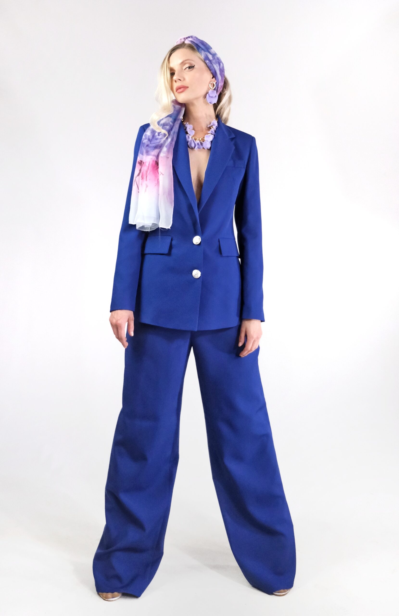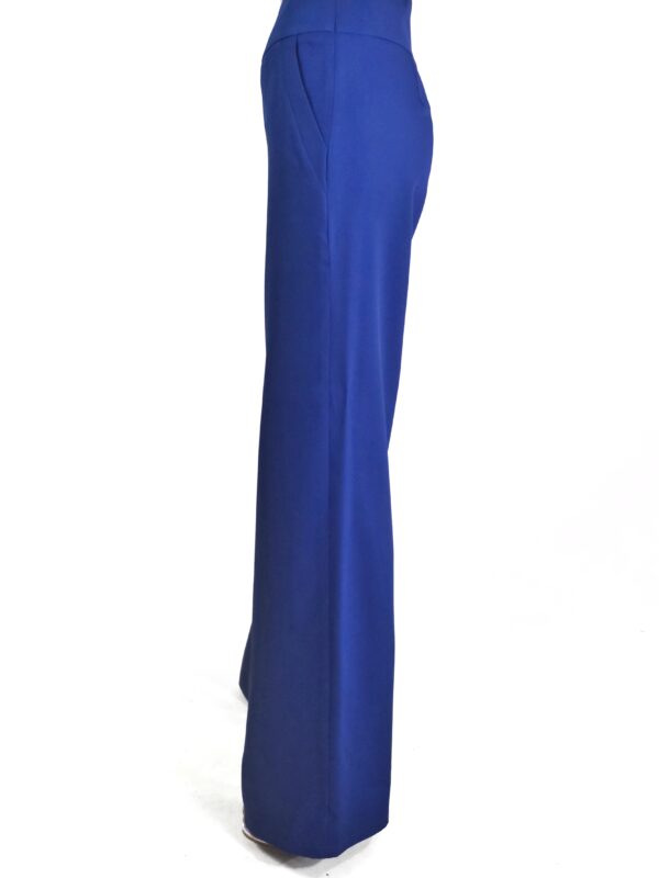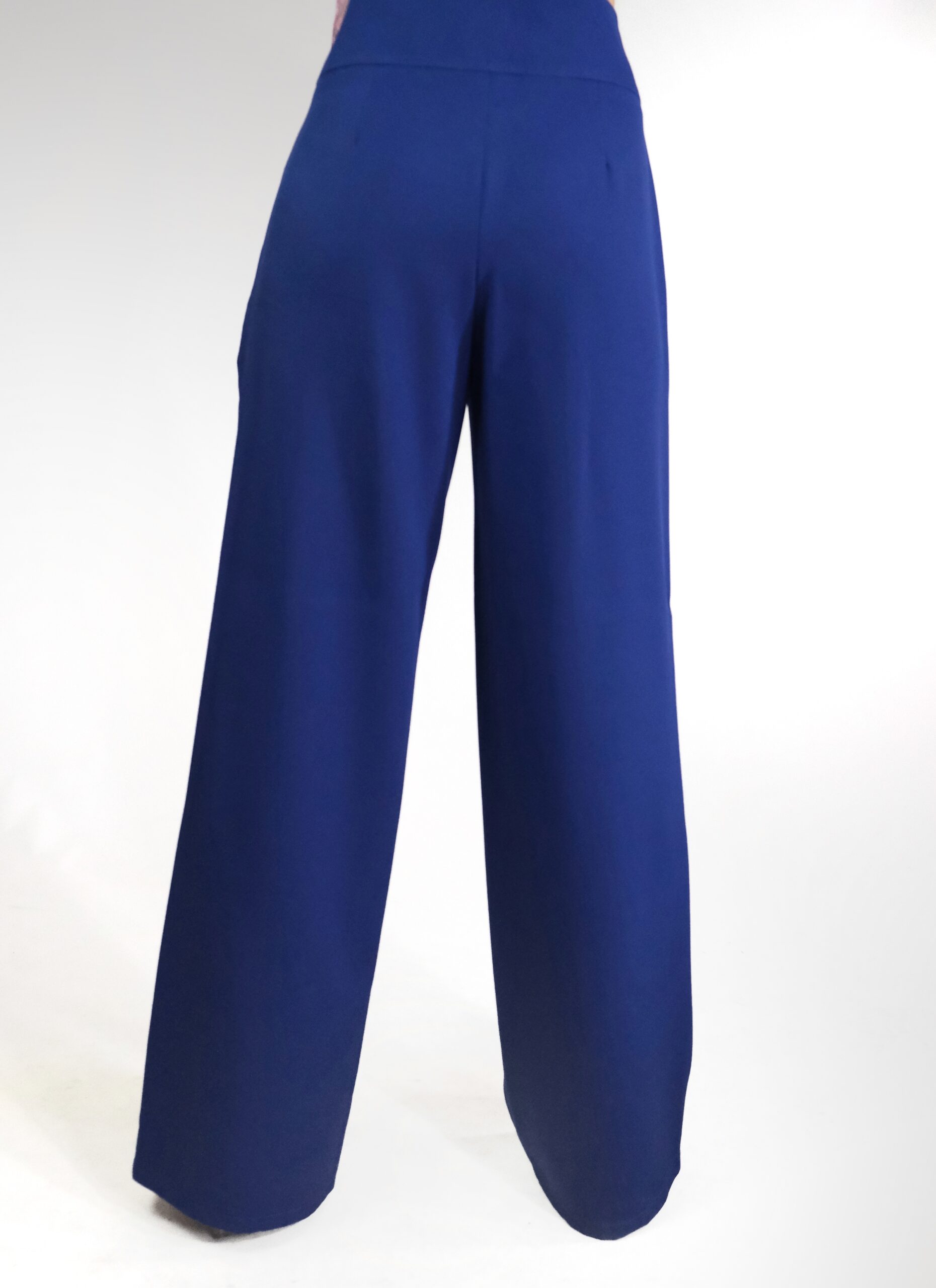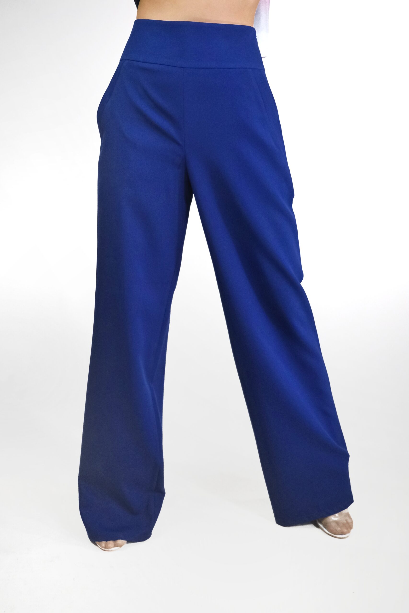 Nohavice s vyšším pásom skvele sadnú na každý typ postavy a opticky ho zoštíhlia. Nohavice sú ušité v širokom strihu, ktorý im dodáva komfort. Nohavice sú navrhnuté v nádhernej slivkovo-modrej farbe. Nohavice majú funkčné vrecká