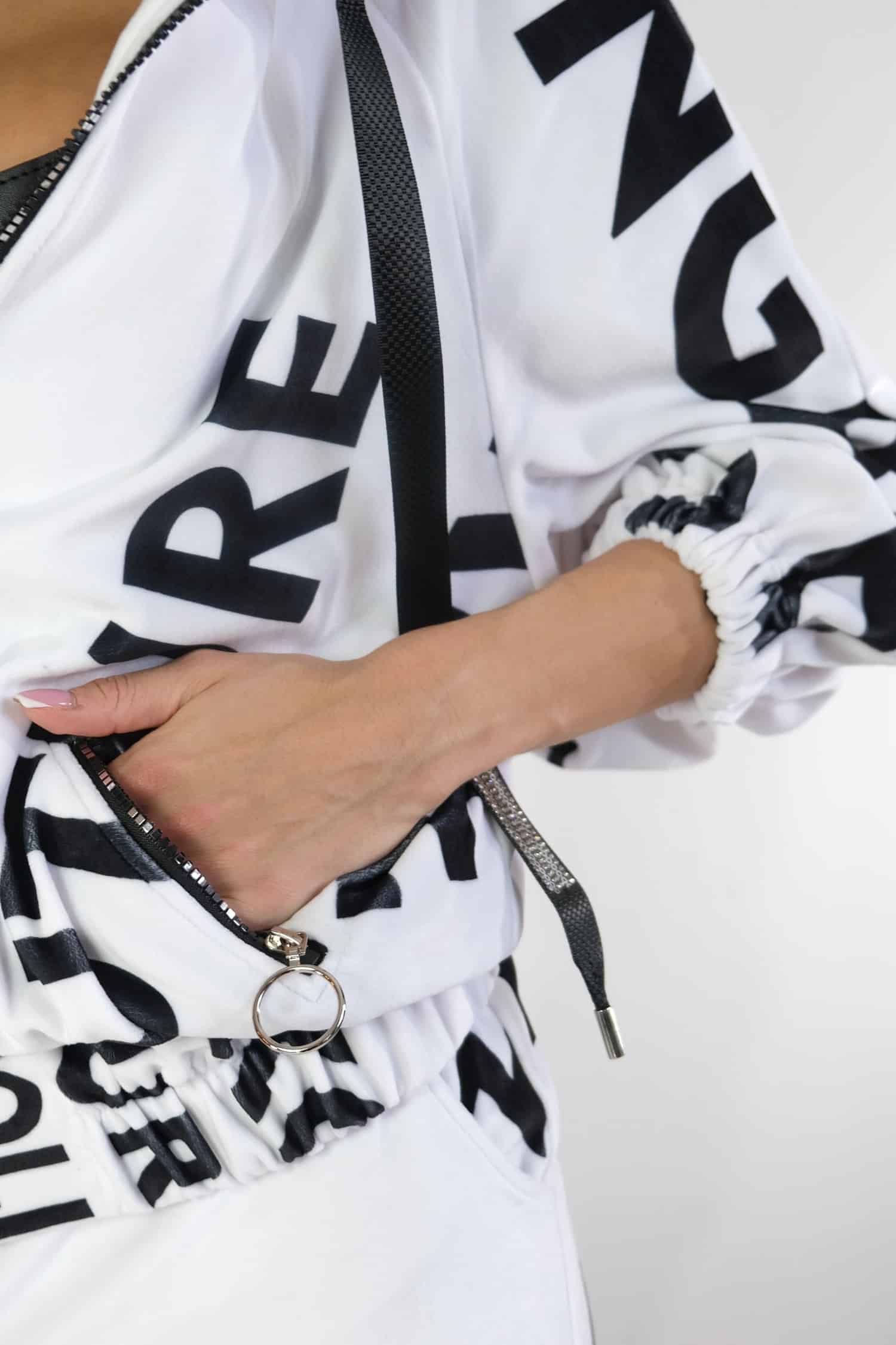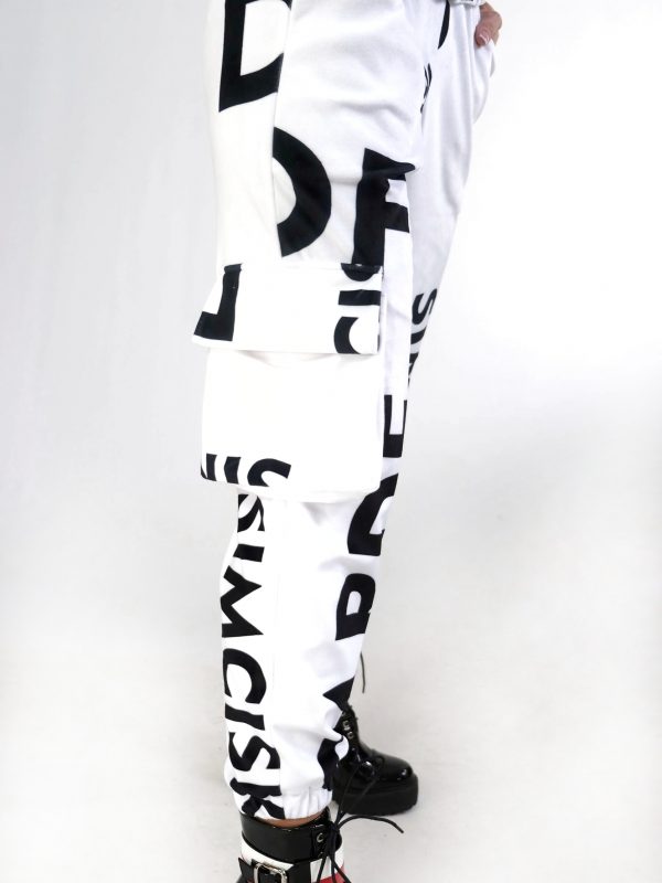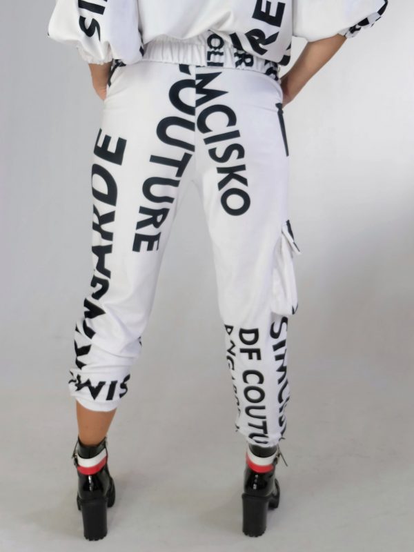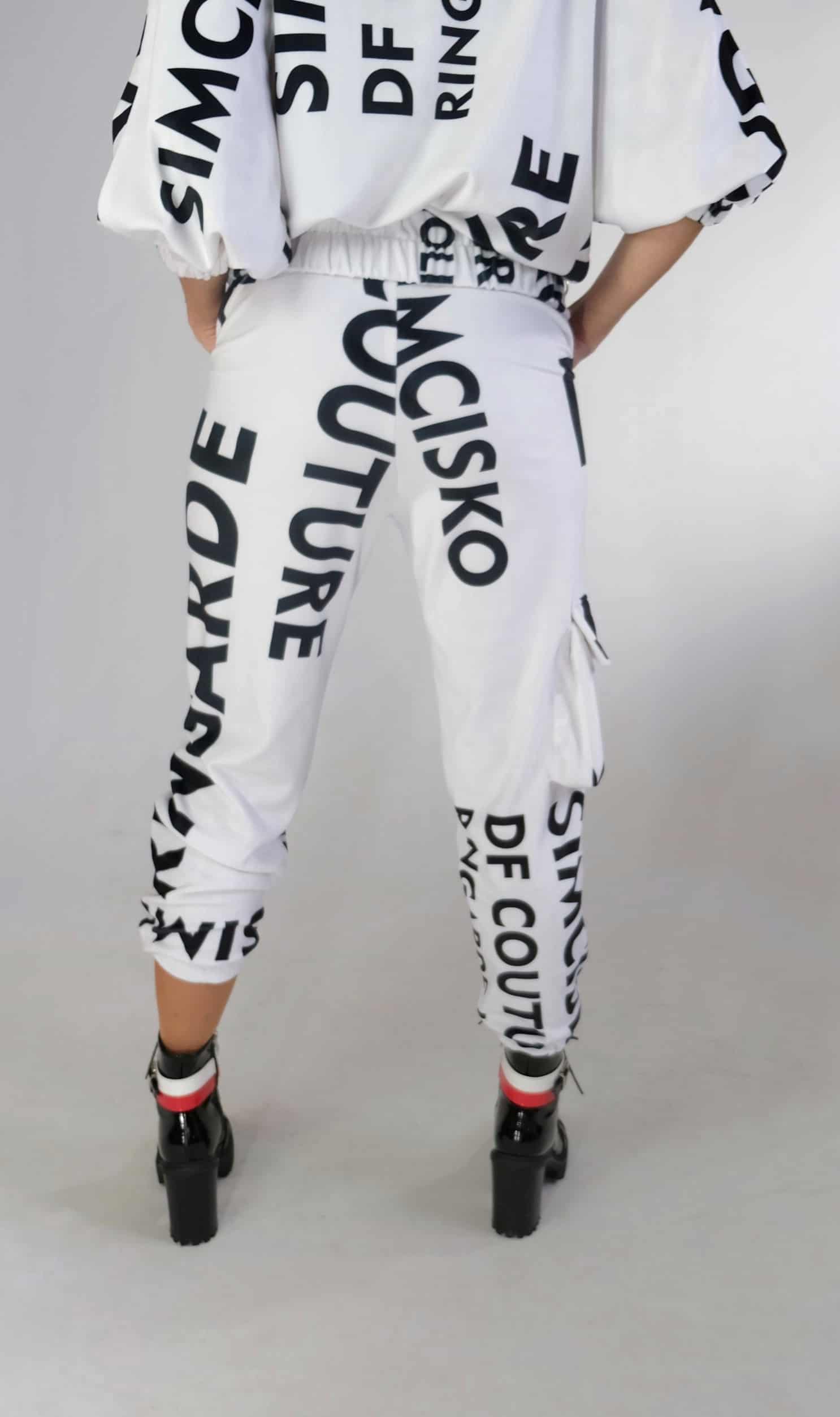 Nohavice sú ušité v pohodlnom voľnom strihu, v ktorom sa budete cítiť skvele po celý deň. Nohavice majú zvýšený pas zakončený patentom pre zvýšenie komfortu. Nohavice sú ušité z príjemného a teplého materiálu na omak pripomínajúceho zamat. Nohavice majú funkčné vrecka a zaujímavým detailom je našitá funkčná kapsička na jednej strane. Pre kompletný outfit skombinujte s Bombera SIMCISKO. tlač bola na mieru vyrobená pre našu značku v nesmrteľnej čierno-bielej kombinácii, ktorá je nositeľná s celým Vaším šatníkom. Potlač odkazuje na zakladateľov a pokračovateľov tejto rodinnej značky spolu s ďalšími fashion odkazmi, ktoré nie sú každému fashionistovi ľahostajné.
