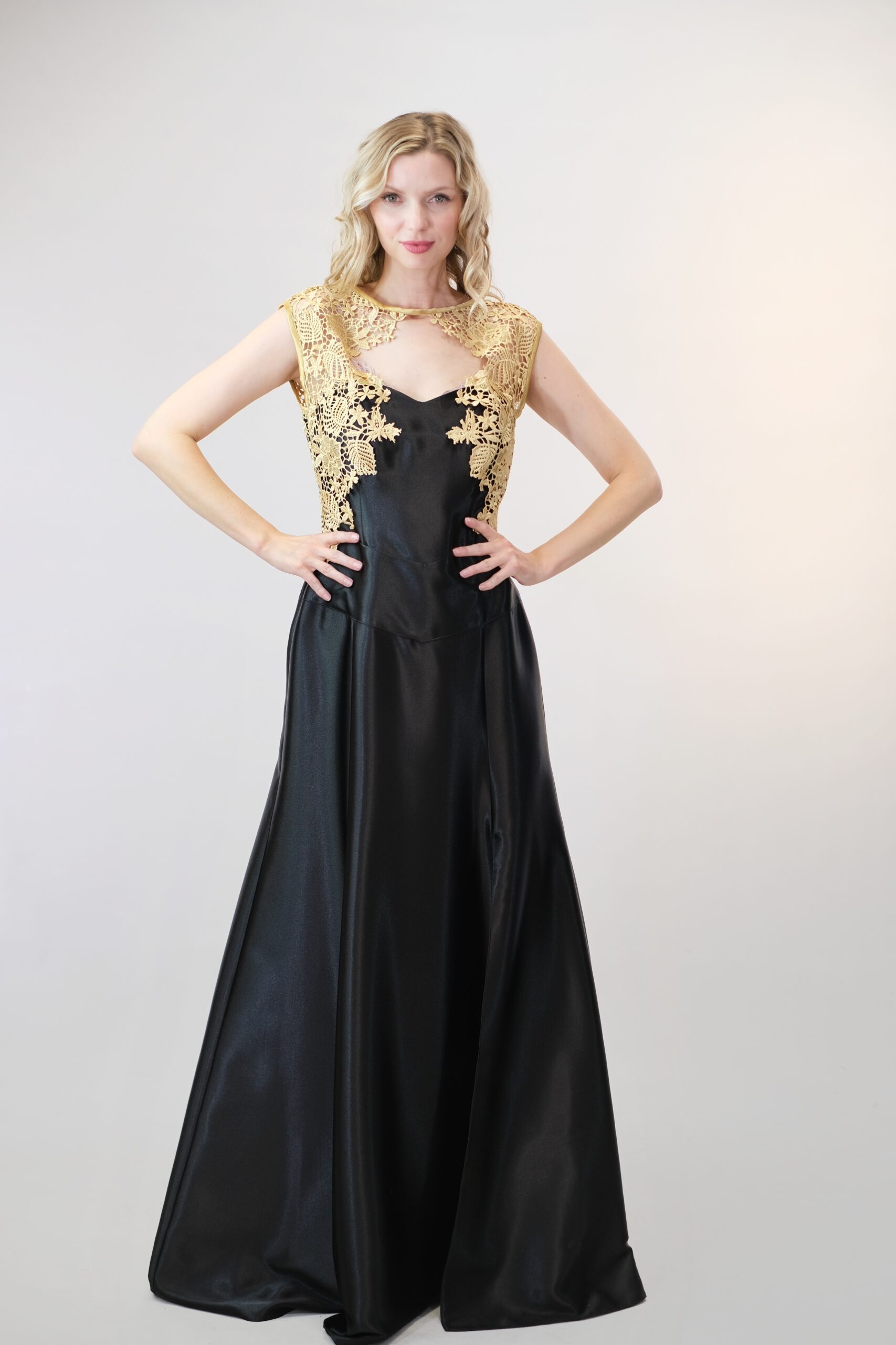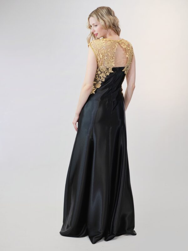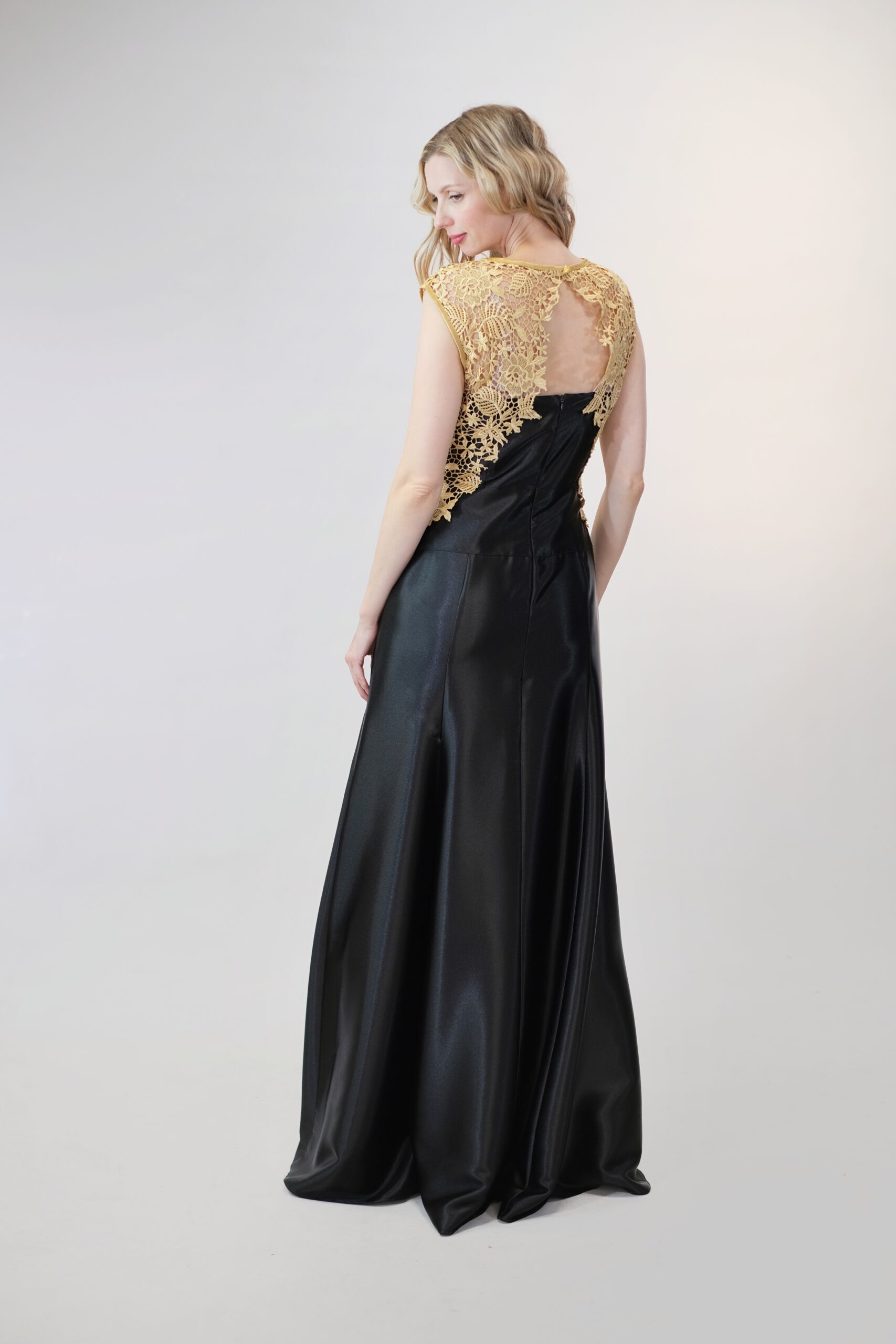 Šaty sú ušité v lesklom saténe, ktorý im dodáva eleganciu. Vrchný diel šiat je ušitý v úzkom strihu, ktorý Vám sadne na postavu a v kombinácii s voľnejšou áčkovou suknicou vytvára pekný kontrast. Zaujímavým detailom na šatách je našitá elegantná krajka, ktorá krásne podtrhuje ženskosť šiat.