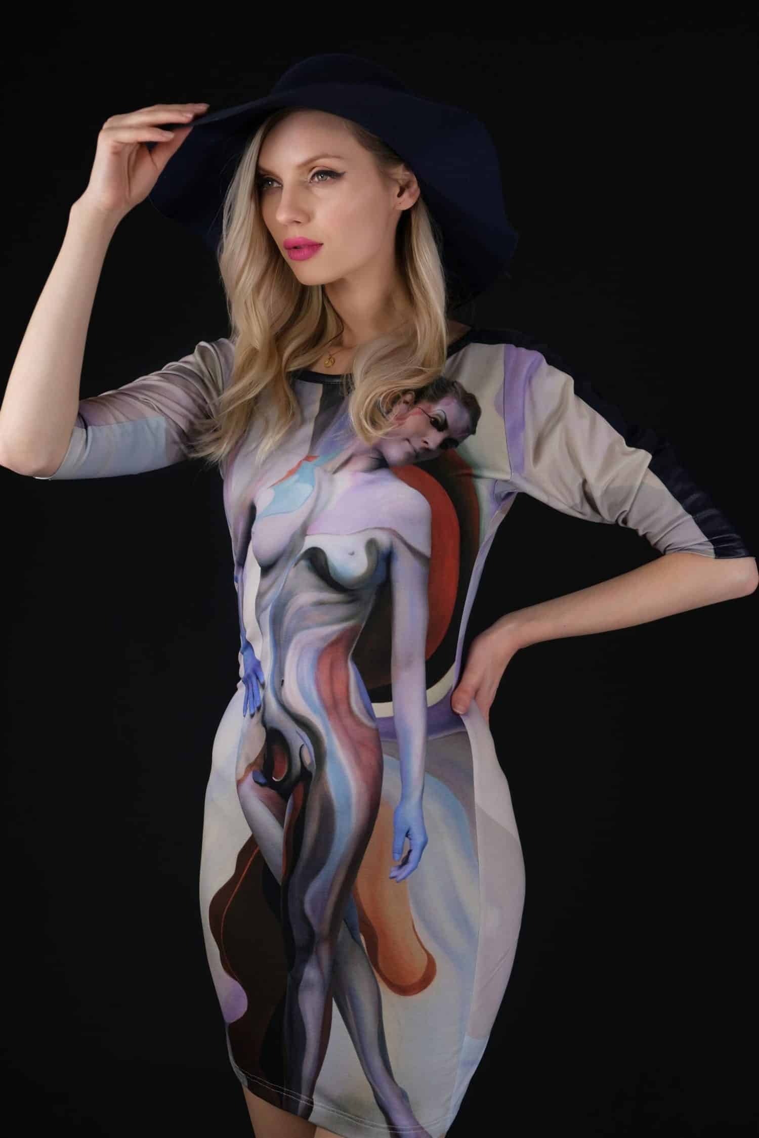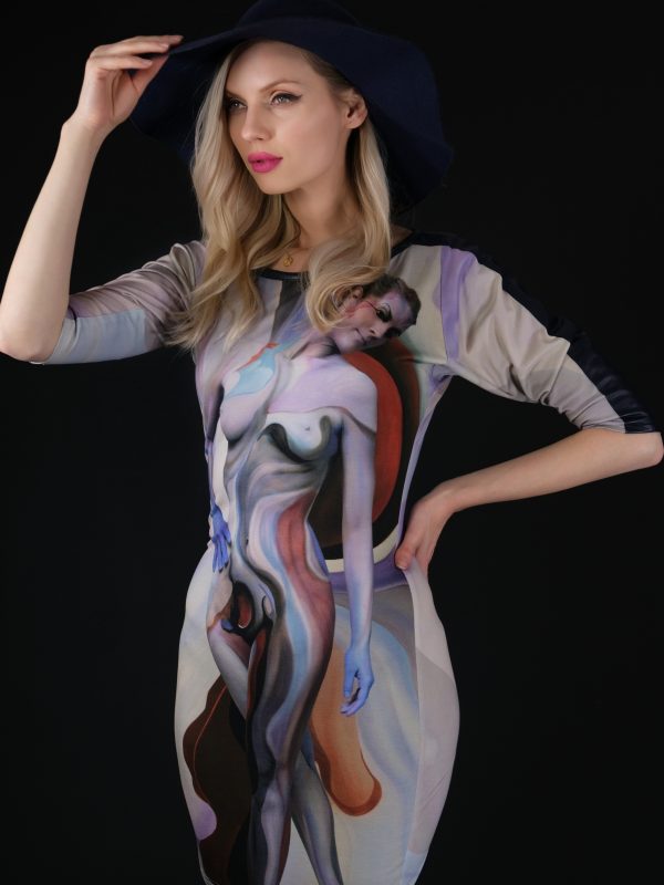 Šaty ušité v puzdrovom strihu z výborného materiálu, ktorý sa skvele prispôsobí postave. Najzaujímavejším prvkom šiat je jednoznačne umelecká potlač pripomínajúca diela slávnych maliarov v pastelových farbách.