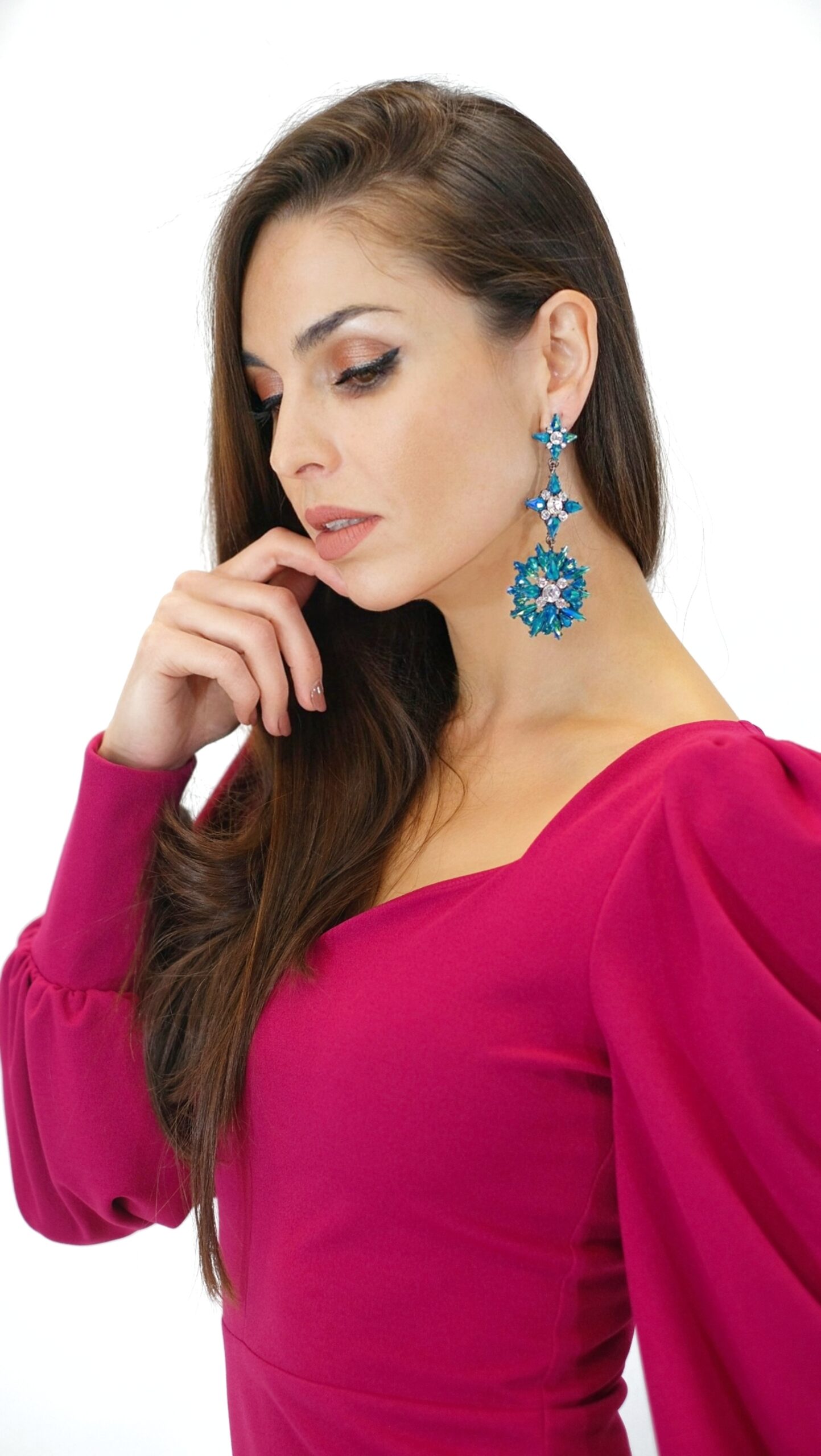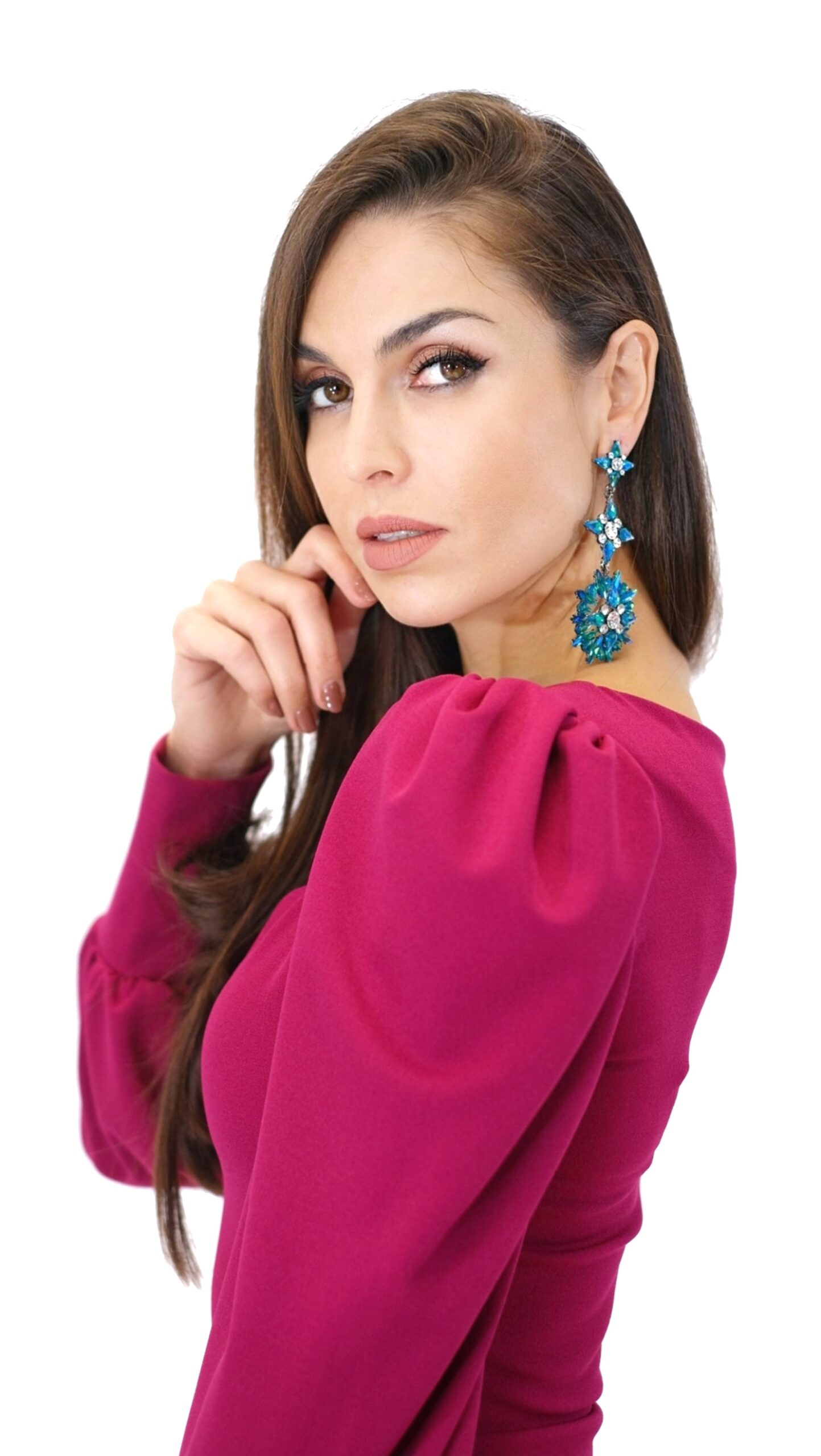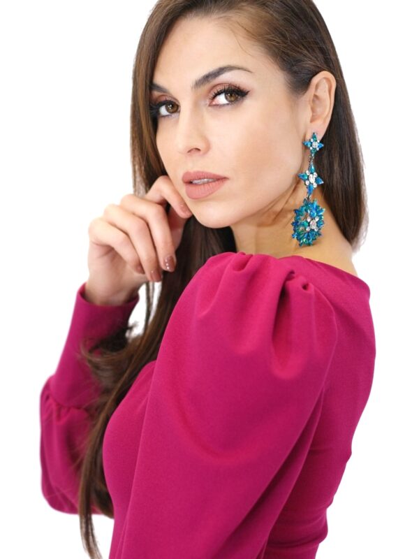 Šaty sú navrhnuté v puzdrovom strihu, ktorý aj vďaka pohodlnému úpletovému materiálu obomkne Vašu postavu. Šaty sú ušité z vysoko elastického materiálu, ktorý Vám zabezpečí komfort. Šaty sú ušité v dĺžke midi, takže sa hodia do práce aj na večierky, kde je predpísaná dĺžka šiat. Zaujímavým detailom šiat sú bohato nazberané rukávy ukončené elastickou manžetou, ktoré šatám dodávajú šmrnc a eleganciu. Šaty sú ušité v sýtej cyklámenovej farbe skvele sa k nim hodia strieborné alebo čierne doplnky. Nezaváhajte a experimentujte aj s doplnkami v odtieňoch modrej.