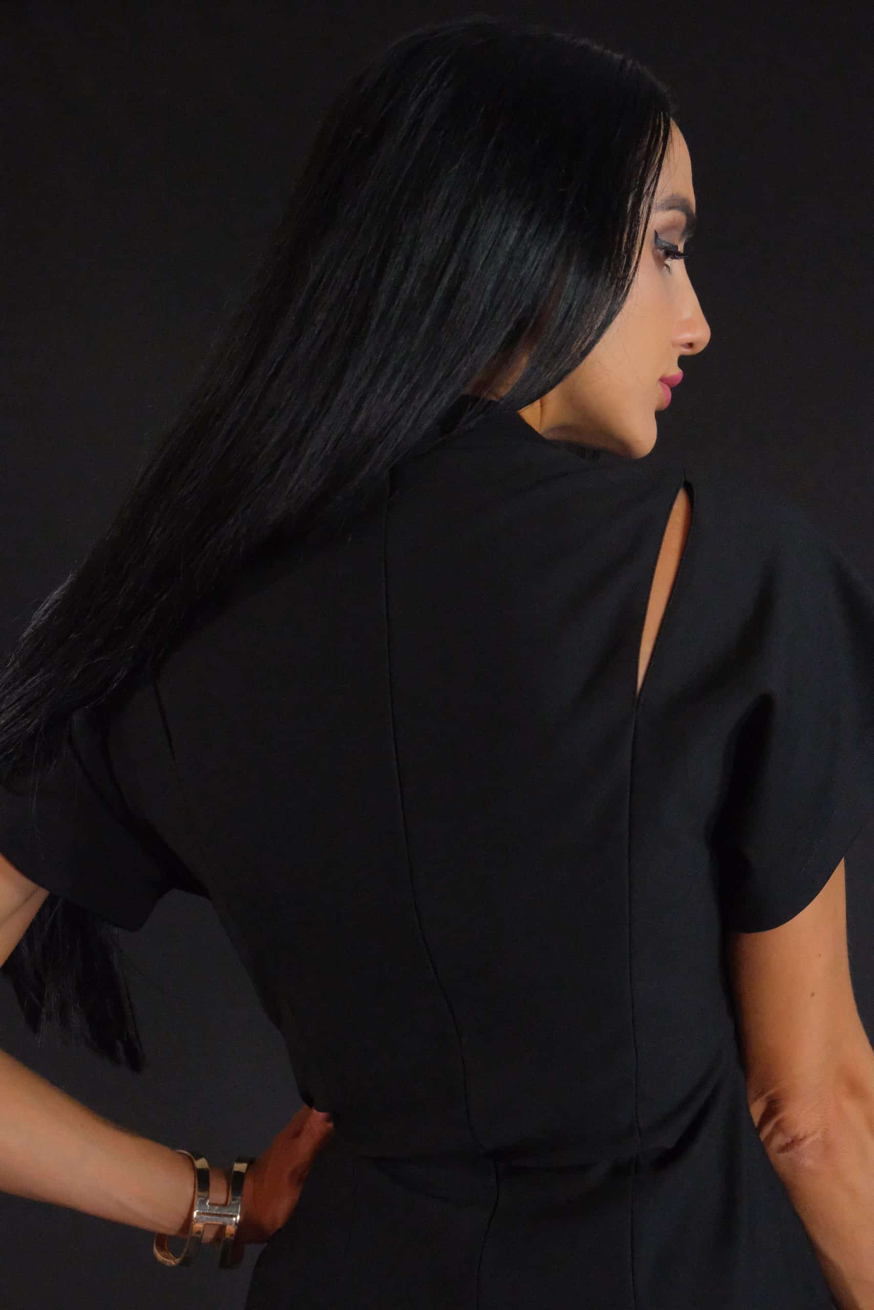 Šaty ušité vo výnimočne prispôsobivom úplete, ktorý Vám sadne, ako druhá koža. Od éry legendárnej Coco Chanel, by súčasťou každého šatníka mali byť malé spoločenské čierne šaty. Šaty Black Sun vynikajú rafinovanosťou strihu. Zaujímavými detailami sú prestrihy šiat v oblasti výstrihu a po stranách a taktiež zaujímavé spracovanie rukávov, ktoré naschvál odstávajú a dodávajú šatám šmrnc.