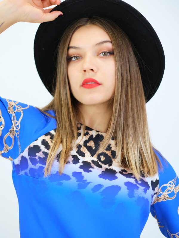 Šaty sú ušité vo veľmi jednoduchom strihu, ktorý naplno necháva vyniknúť výrazný vzor. Kombinujte s čiernymi doplnkami ako naša aranžérka.
