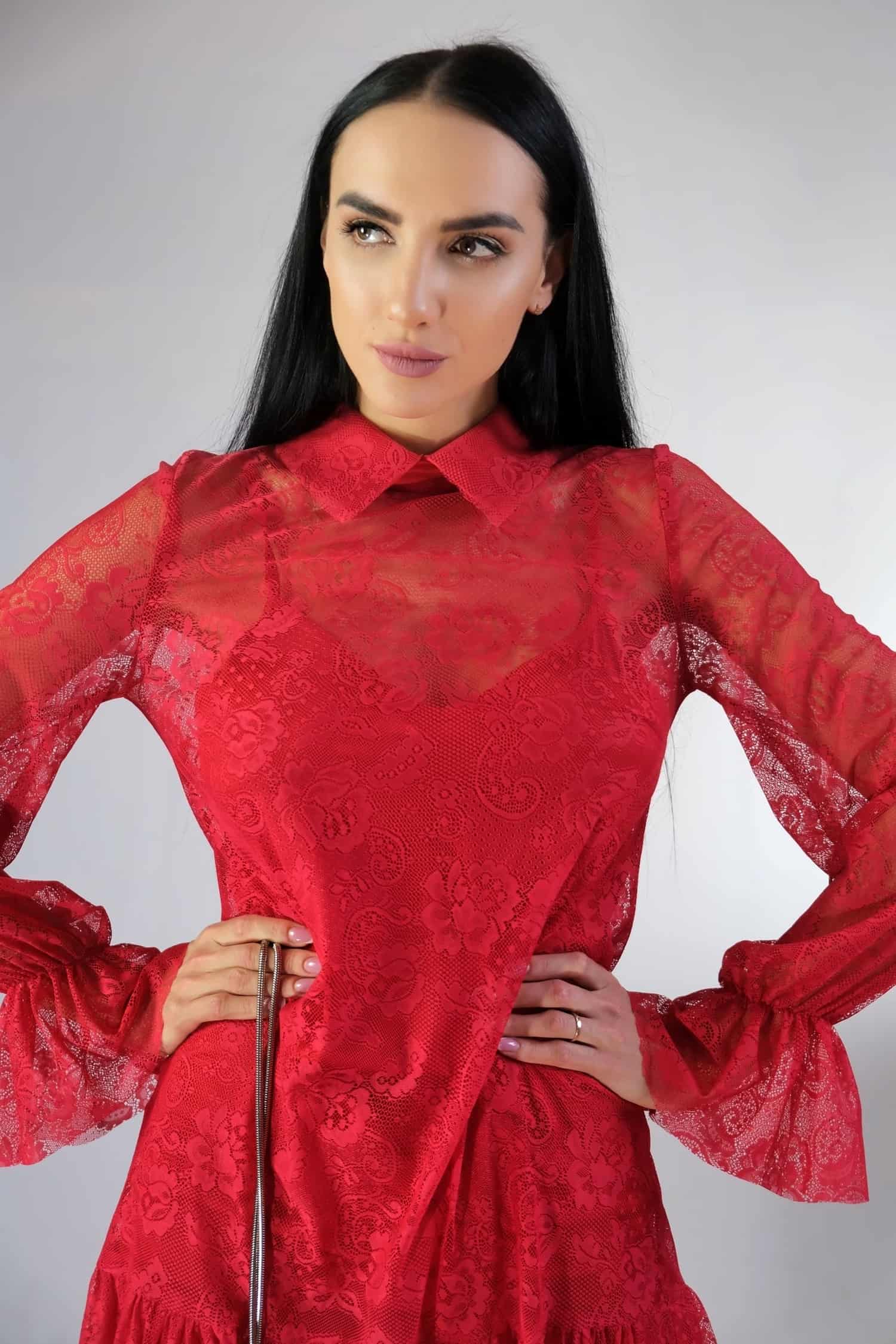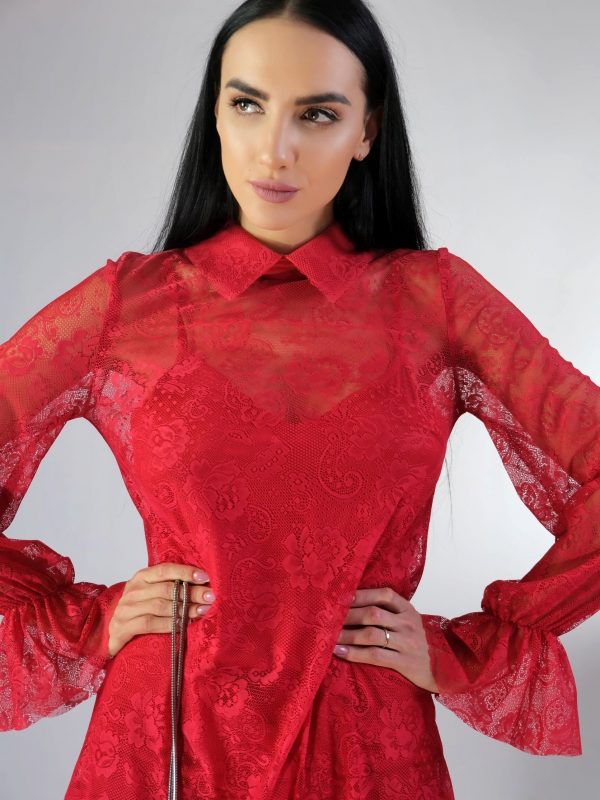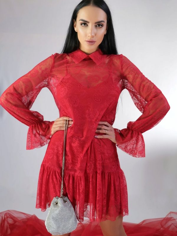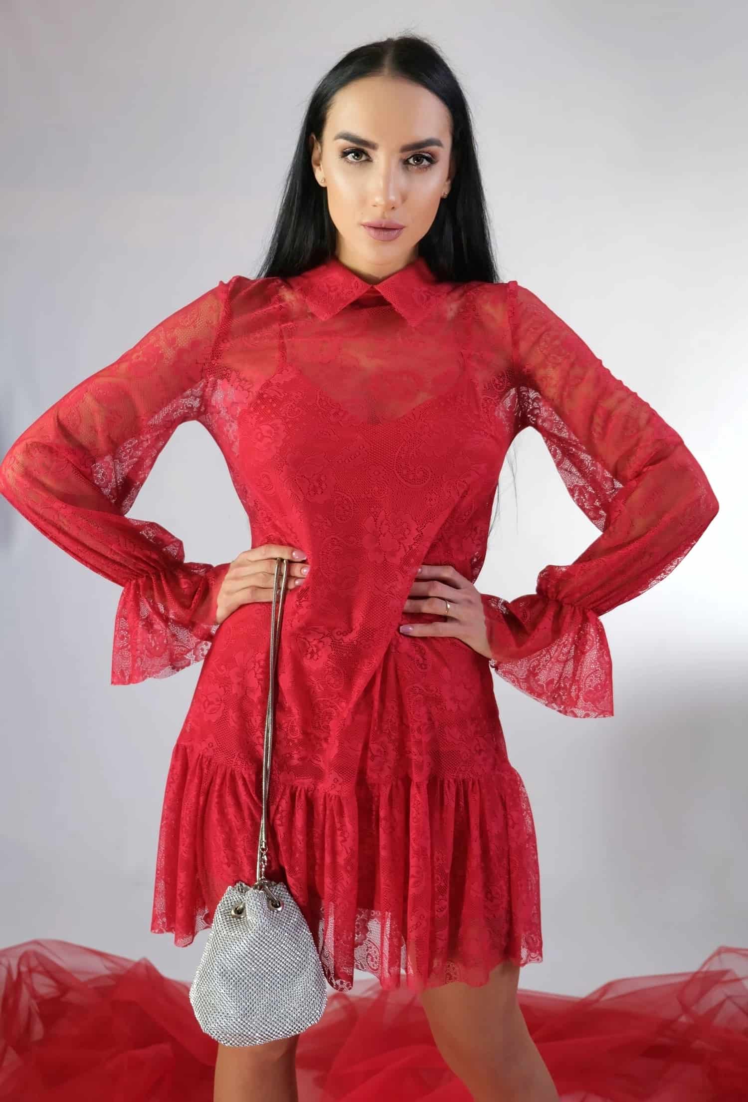 Šaty áčkového strihu sú navrhnuté z jemného šifónu s kĺzavou spodničkou. Vďaka áčkovému strihu a kĺzavému materiálu sa v nich budete cítiť skvele aj počas oslavy ako napríklad štedrá večera. Zaujímavými detailmi sú zriasené rukávy a výrazný golier v štýle Coco Chanel. Výraznú červenú môžete skombinovať napríklad s nevinnou bielou, výraznou smaragdovo zelenou alebo slávnostnou zlatou.