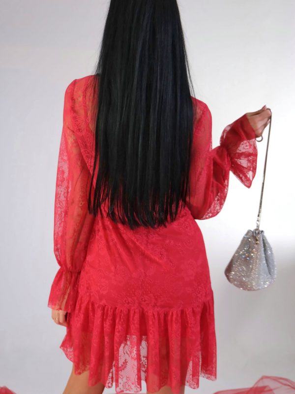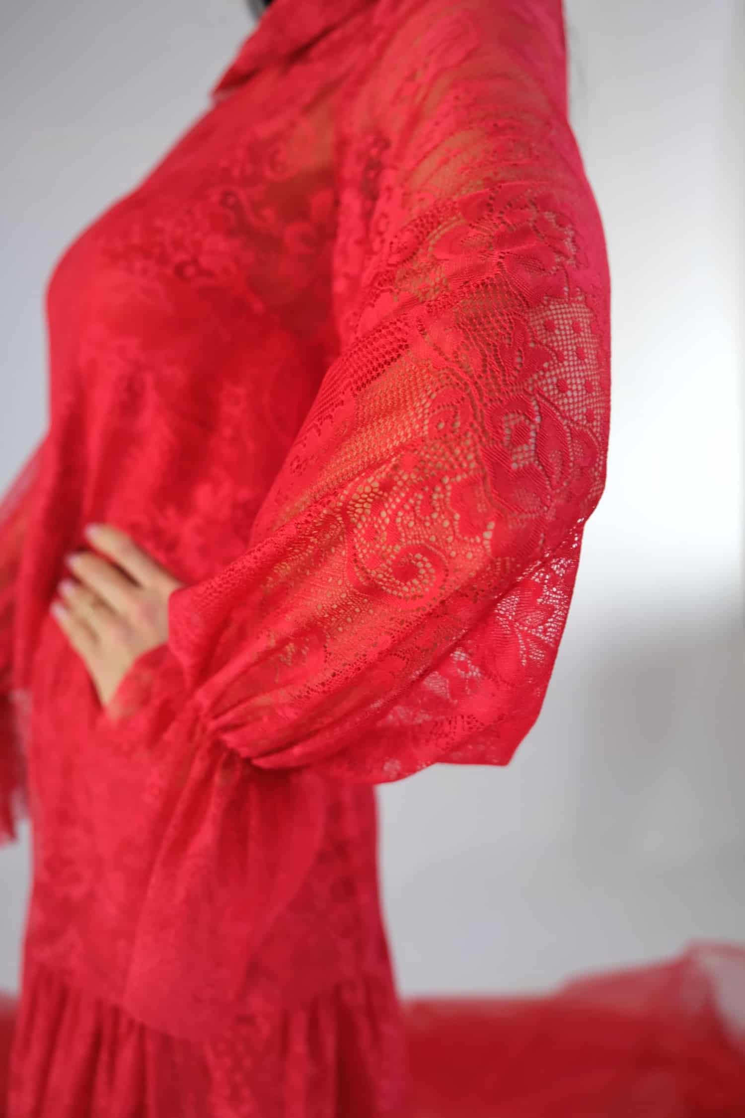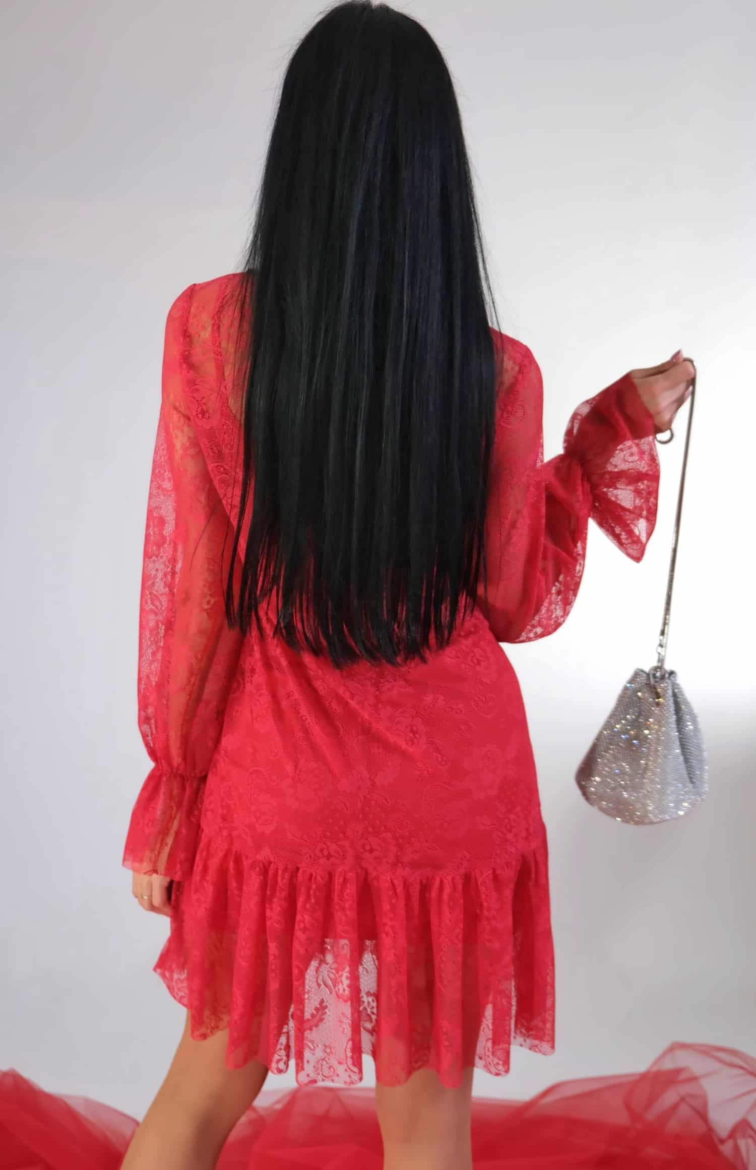 Šaty áčkového strihu sú navrhnuté z jemného šifónu s kĺzavou spodničkou. Vďaka áčkovému strihu a kĺzavému materiálu sa v nich budete cítiť skvele aj počas oslavy ako napríklad štedrá večera. Zaujímavými detailmi sú zriasené rukávy a výrazný golier v štýle Coco Chanel. Výraznú červenú môžete skombinovať napríklad s nevinnou bielou, výraznou smaragdovo zelenou alebo slávnostnou zlatou.