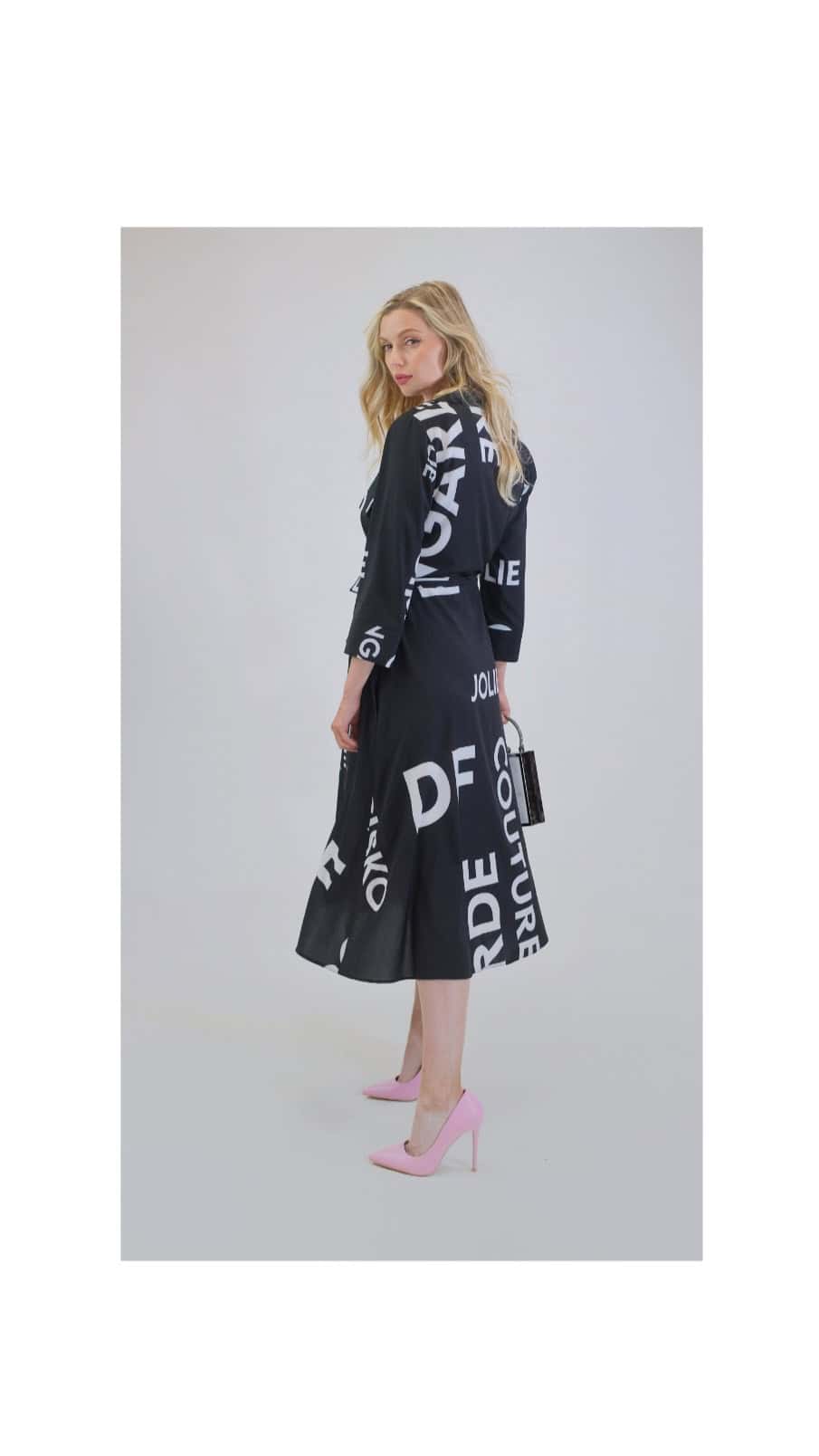 Šaty sú navrhnuté vo vašom obľúbenom košeľovom strihu, v ktorom sa budete cítiť komfortne aj počas tých najhorúcejších letných dní. Šaty sú ušité z ľahkého, letného a nekrčivého materiálu, ktorý si môžete zobrať so sebou kdekoľvek a nikdy vás nesklame. Šaty sú ušité v nesmrteľnej čierno bielej kombinácii, ktorá vám výborne zapadne do vášho šatníka. Šaty majú priložený opasok z vlastného materiálu, ktorým si môžete zúžiť pás. Na šatách nájdete odkazy na zakladateľkou značky, ako aj iné populárne termíny, ktoré sprevádzajú svet módy. Šaty môžete kombinovať s akýmikoľvek doplnkami rôznych farieb a nebojte sa použiť aj pastelové odtiene ako naša aranžérka.
