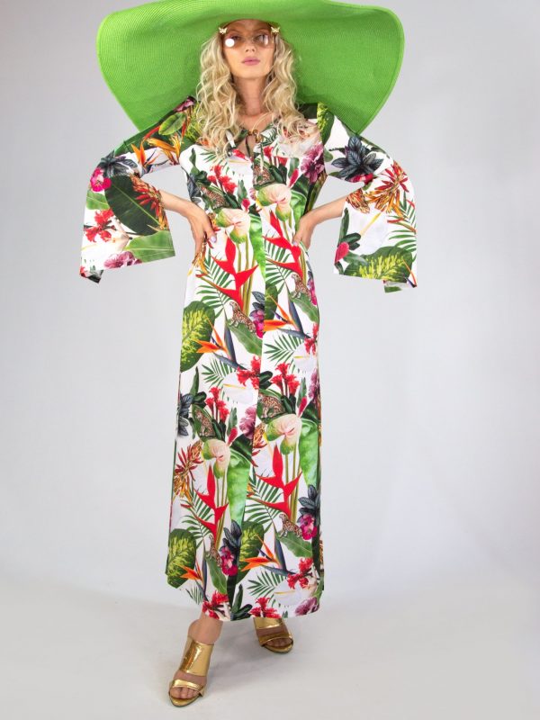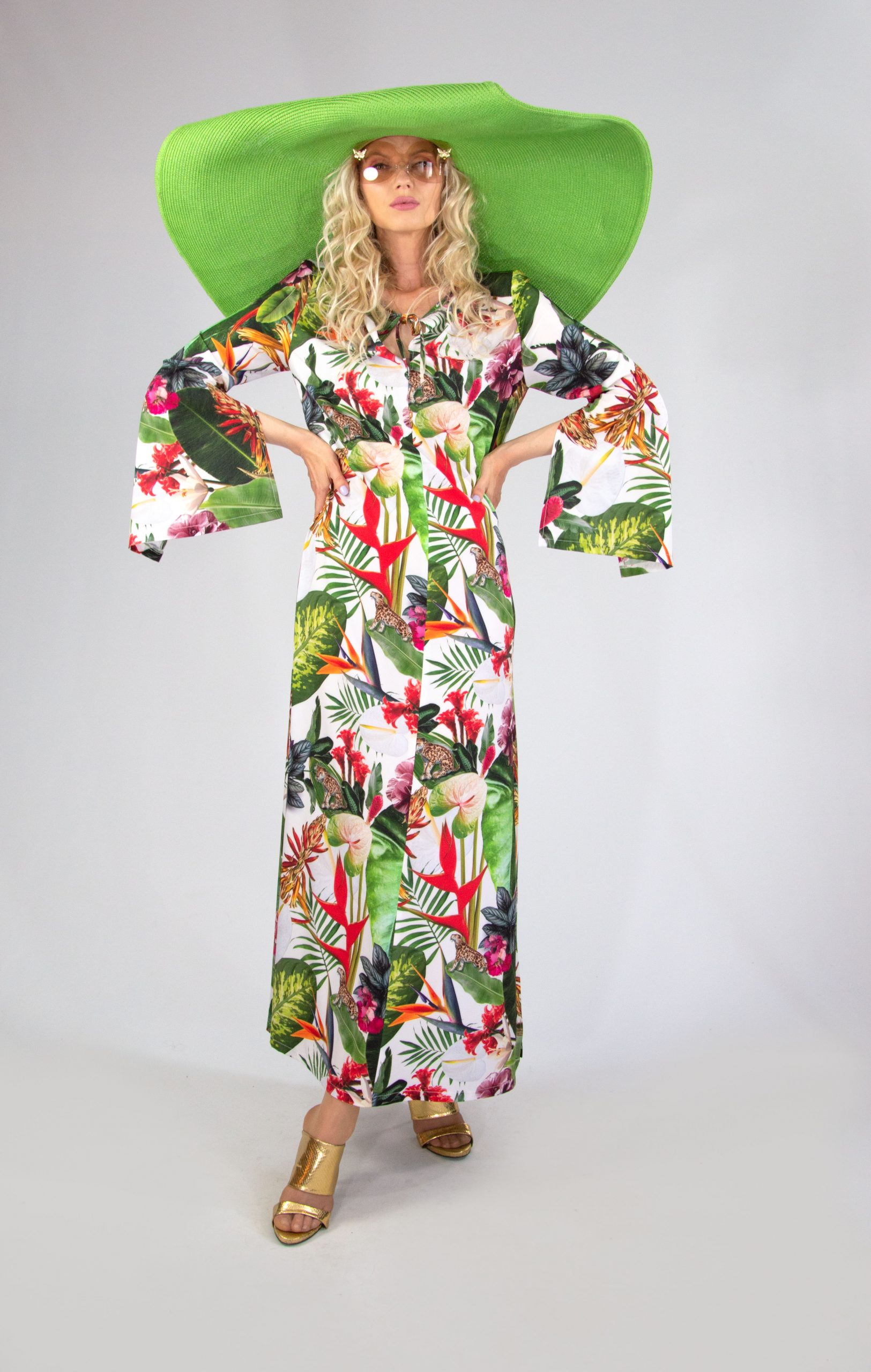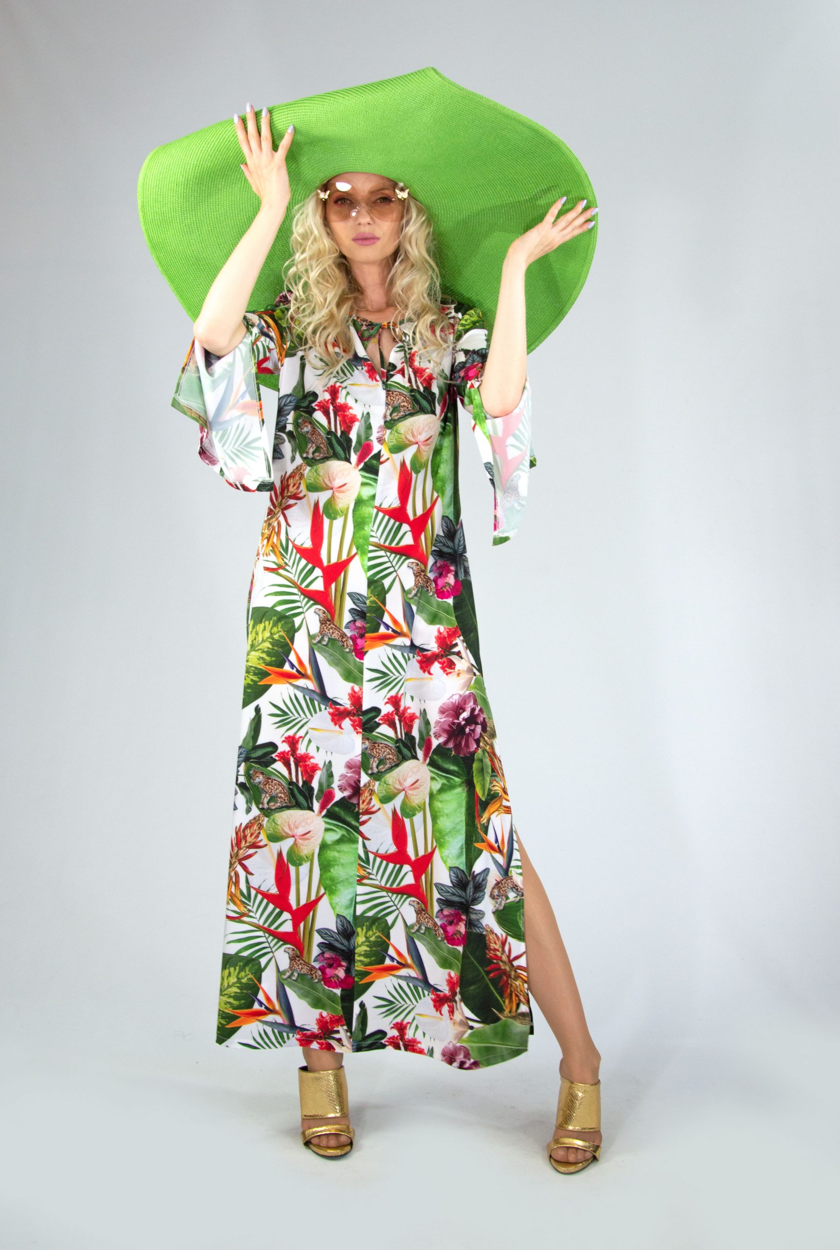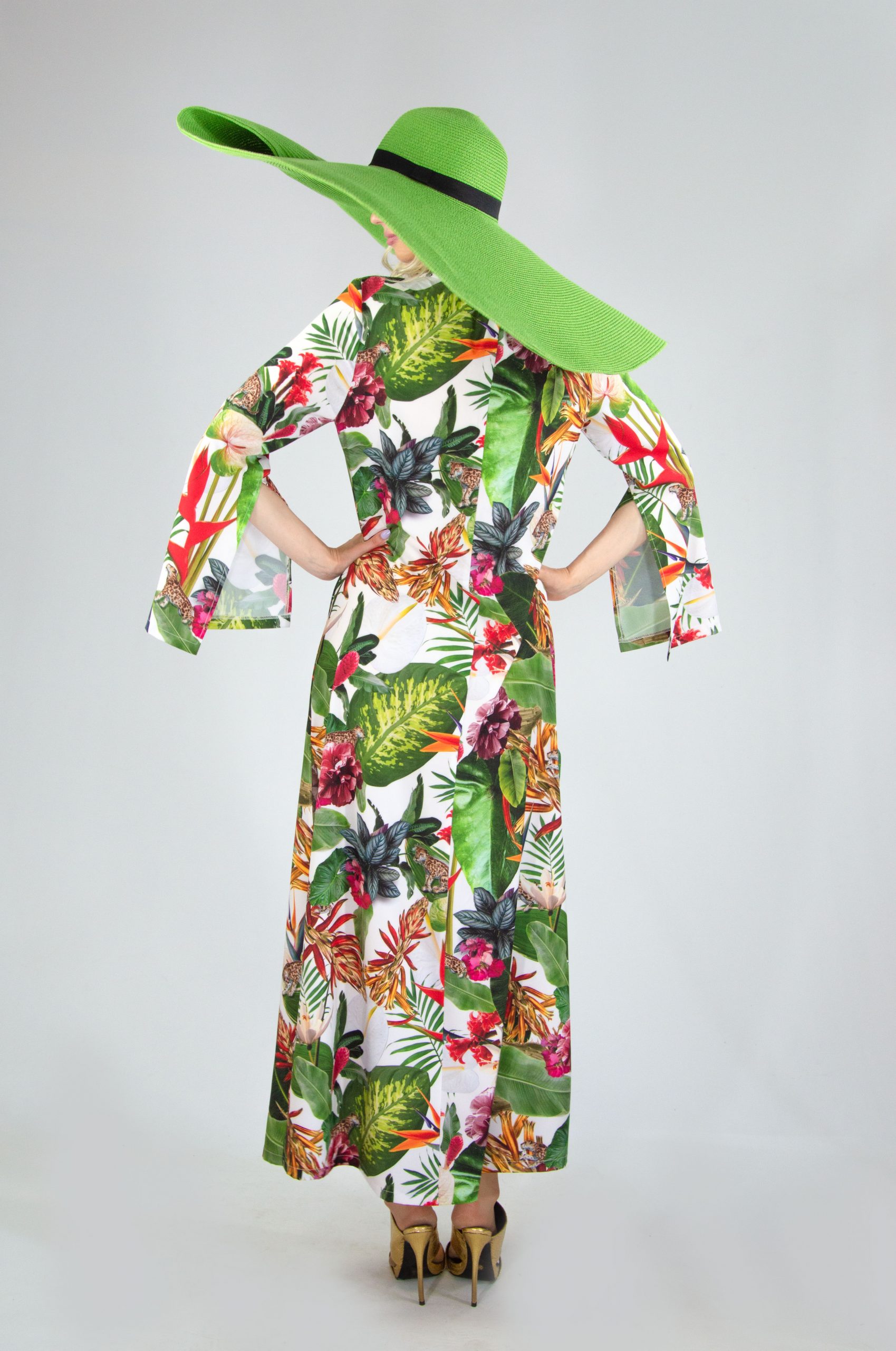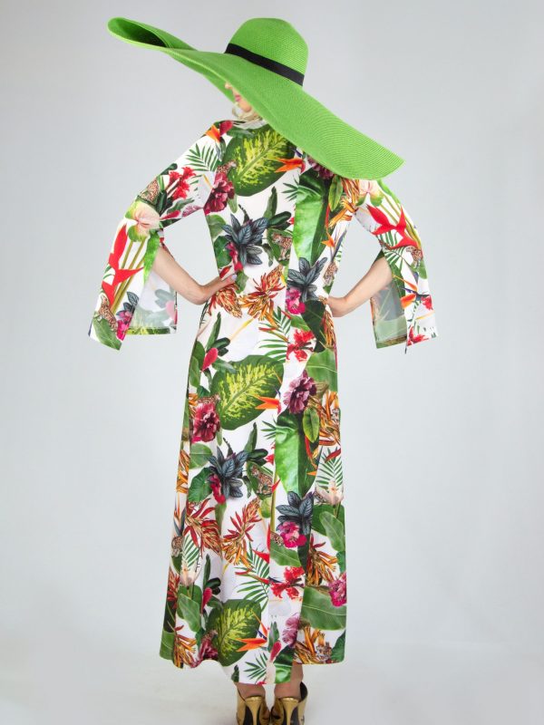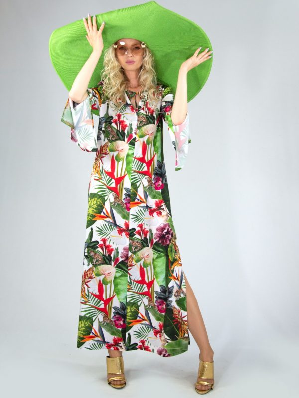 Šaty ušité v komfortnom áčkovom strihu s rozparkami na bokoch. Jednoduchý strih šiat s volánovými rukávmi necháva vyniknúť letnému farebnému vzoru, ako vystrihnutom z Africkej savany. Vďaka výraznému vzoru a áčkovému strihu šaty zakryjú drobné nedostatky.
