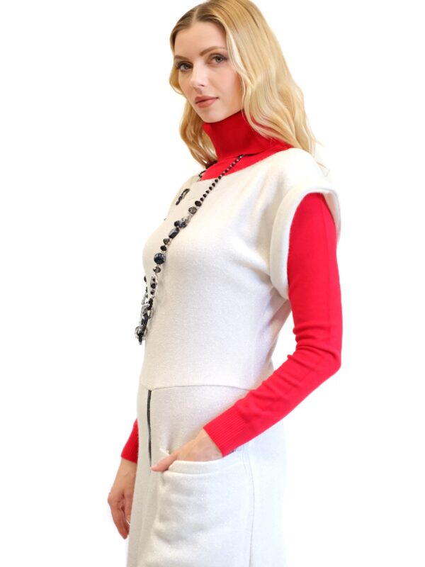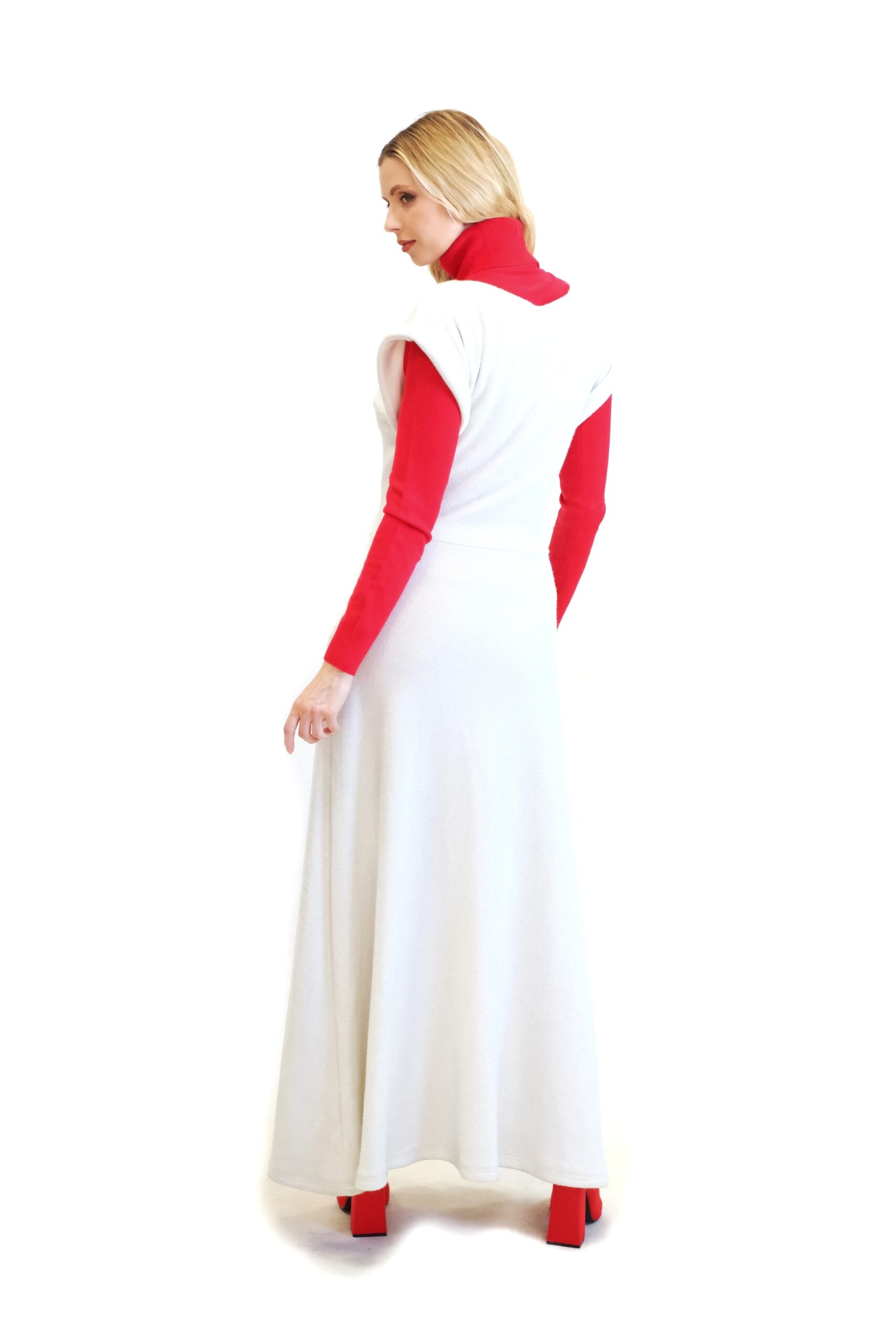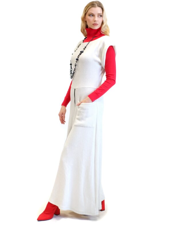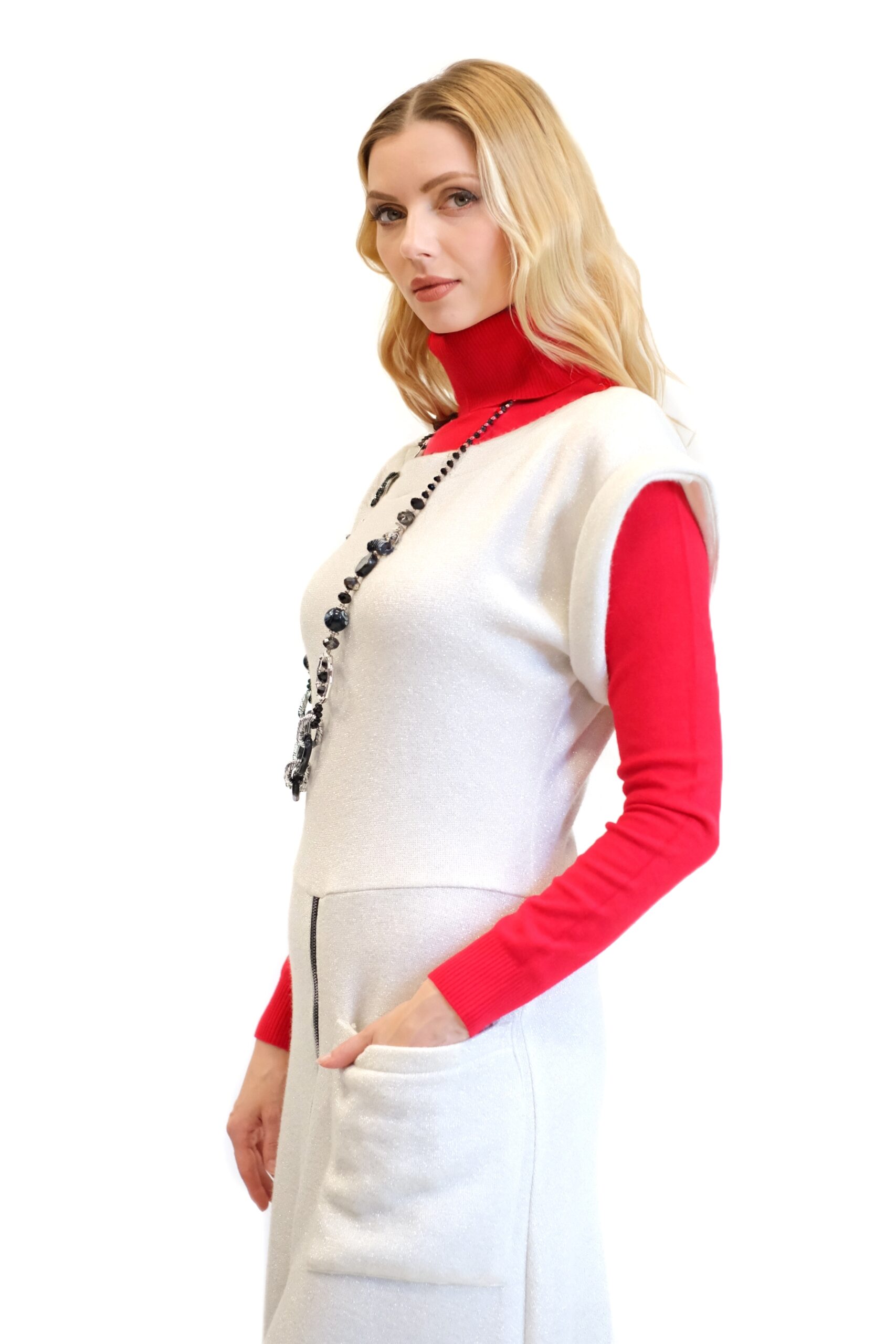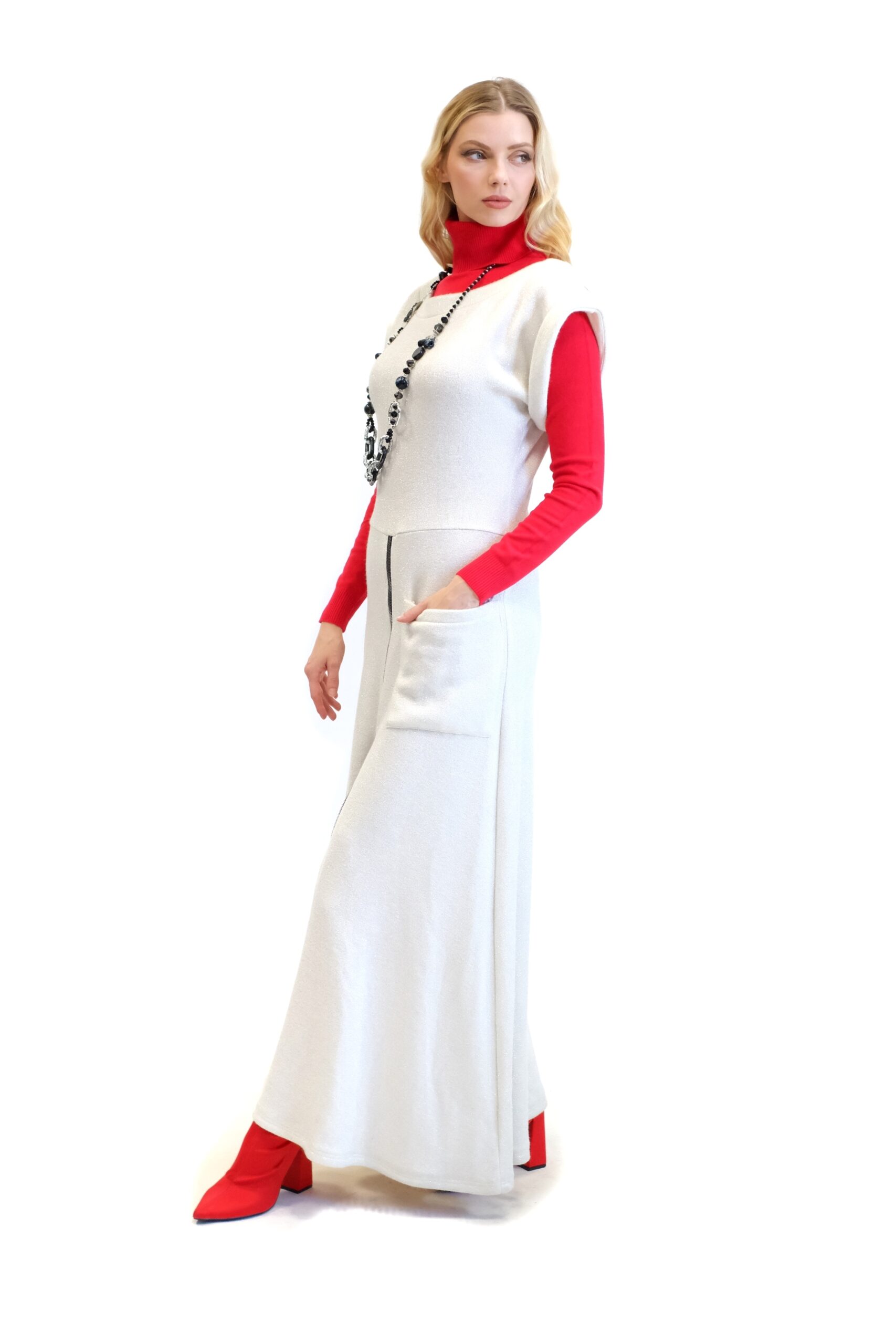 Šaty sú navrhnuté z prijemného úpletového materiálu, v ktorom sa budete cítiť komfortne počas celého dňa. Materiál je prispôsobivý a zohreje vás aj počas chladných dní. Šaty sú ušité ako skvelý doplnok na vrstvenie. Vďaka rafinovanému strihu ich dokážete nosiť počas každého ročného obdobia. Šaty sú prestrihnuté v páse a zaujímavým detailom je zips, ktorý sa ťahá po celej dĺžke suknice. Šaty majú krátke rukávy. Šaty kombinujte počas chladnejších období s kontrastnými pleteninami ako naša aranžérka.