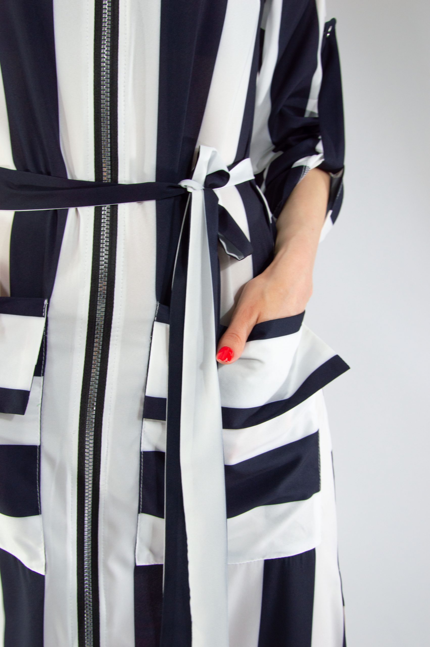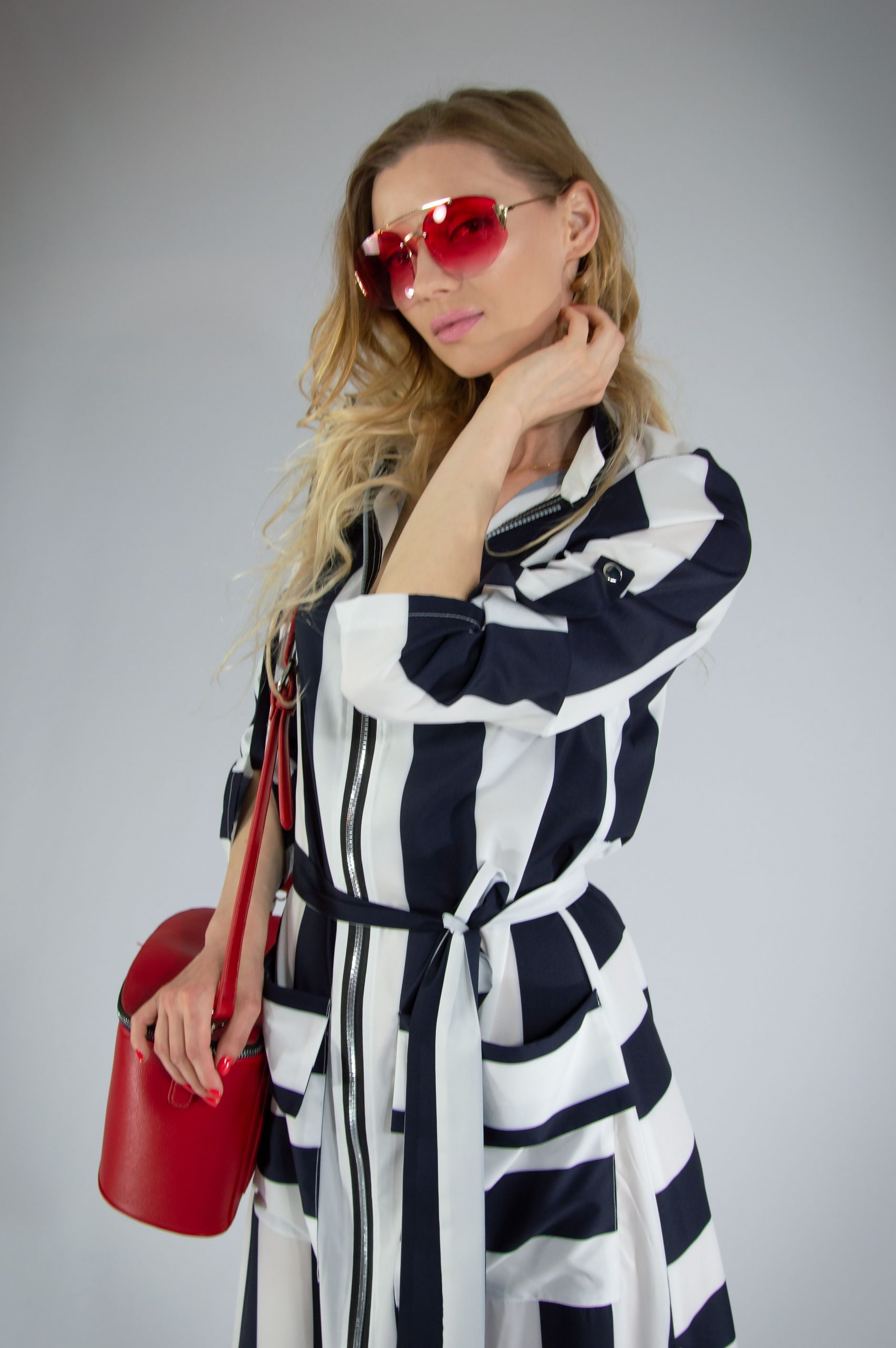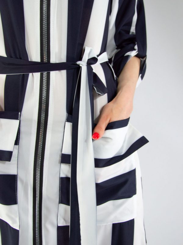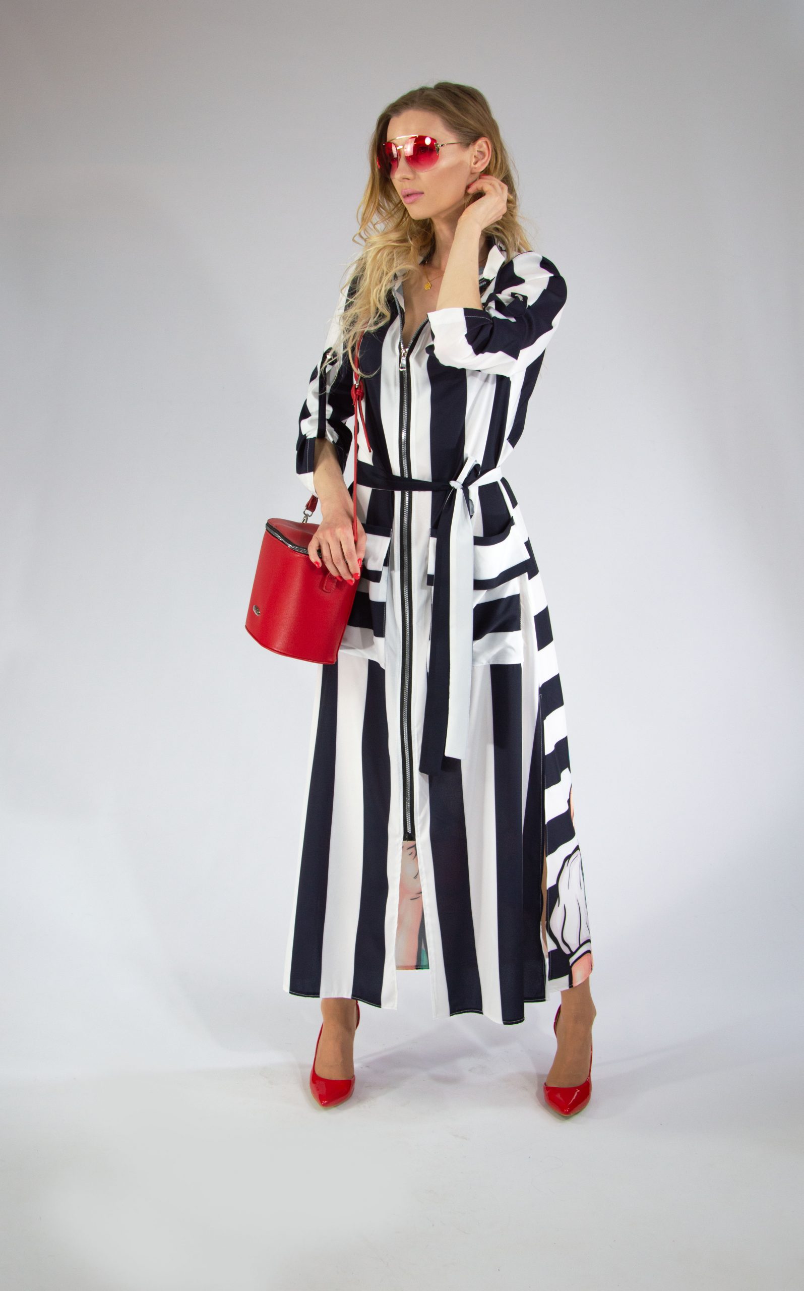 Šaty kombinujúc veselý štýl pop artu a kreslených komiksov 80 rokov so stálicou letnej módy s pruhmi. Šaty sú ušité z jemného letného materiálu s výrazným obrazcom na zadnej časti. Šaty majú praktické zipsové zapínanie.