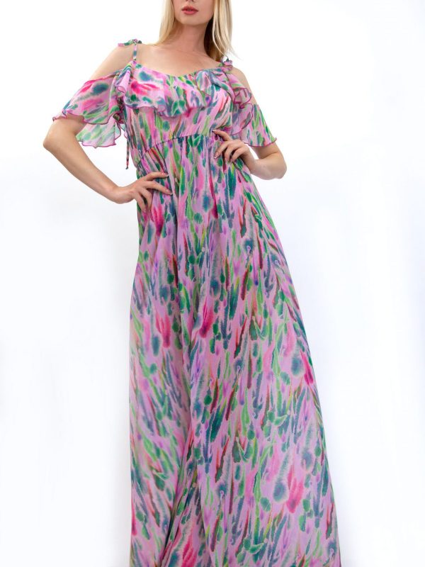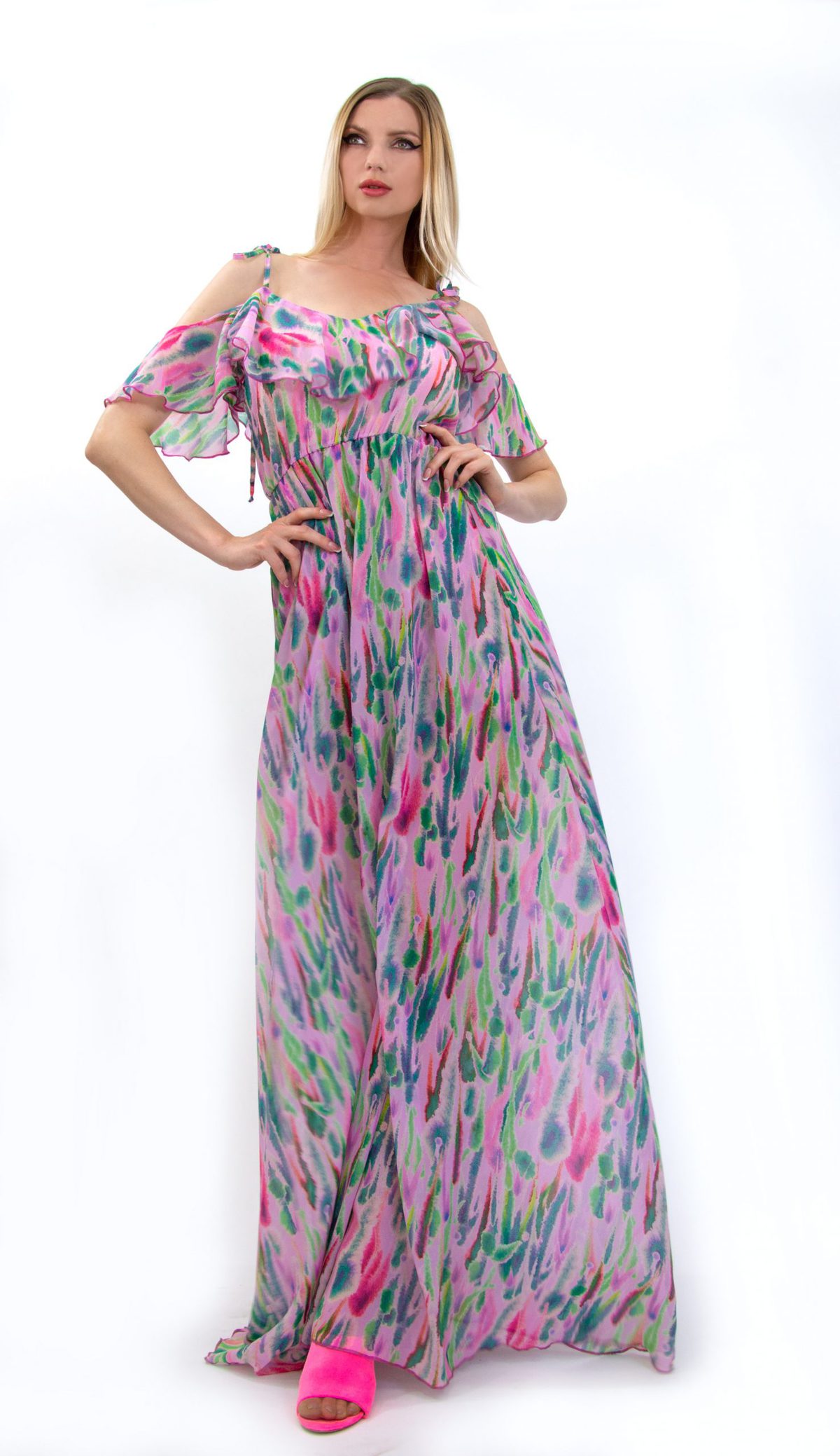 Šaty sú ušité z jemného kĺzavého šifónu, ktorý je veľmi príjemný na pokožke. Šaty zhmotňujú dizajnérovu predstavu o ľahkom letnom sne, ktorý si nepamätáme, ale zanechá v nás príjemný pocit. Potlač je navrhnutá s touto myšlienkou, len pre našu značku. Šaty sú jednoduchého strihu prestrihnutého pod prsiami, pozvoľna rozširujúce sa do áčka. Šaty máju tenké letné ramienka.