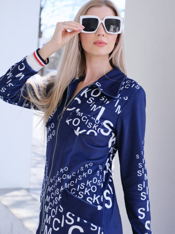 Šaty majú trojštvrtinové rukávy, ktoré vám dodajú komfort počas celého dňa. Dominantným prvkom je funkčný strieborný zips po celej dĺžke, ktorý prechádza do štýlového goliera a dodáva modelu moderný, sebavedomý vzhľad.