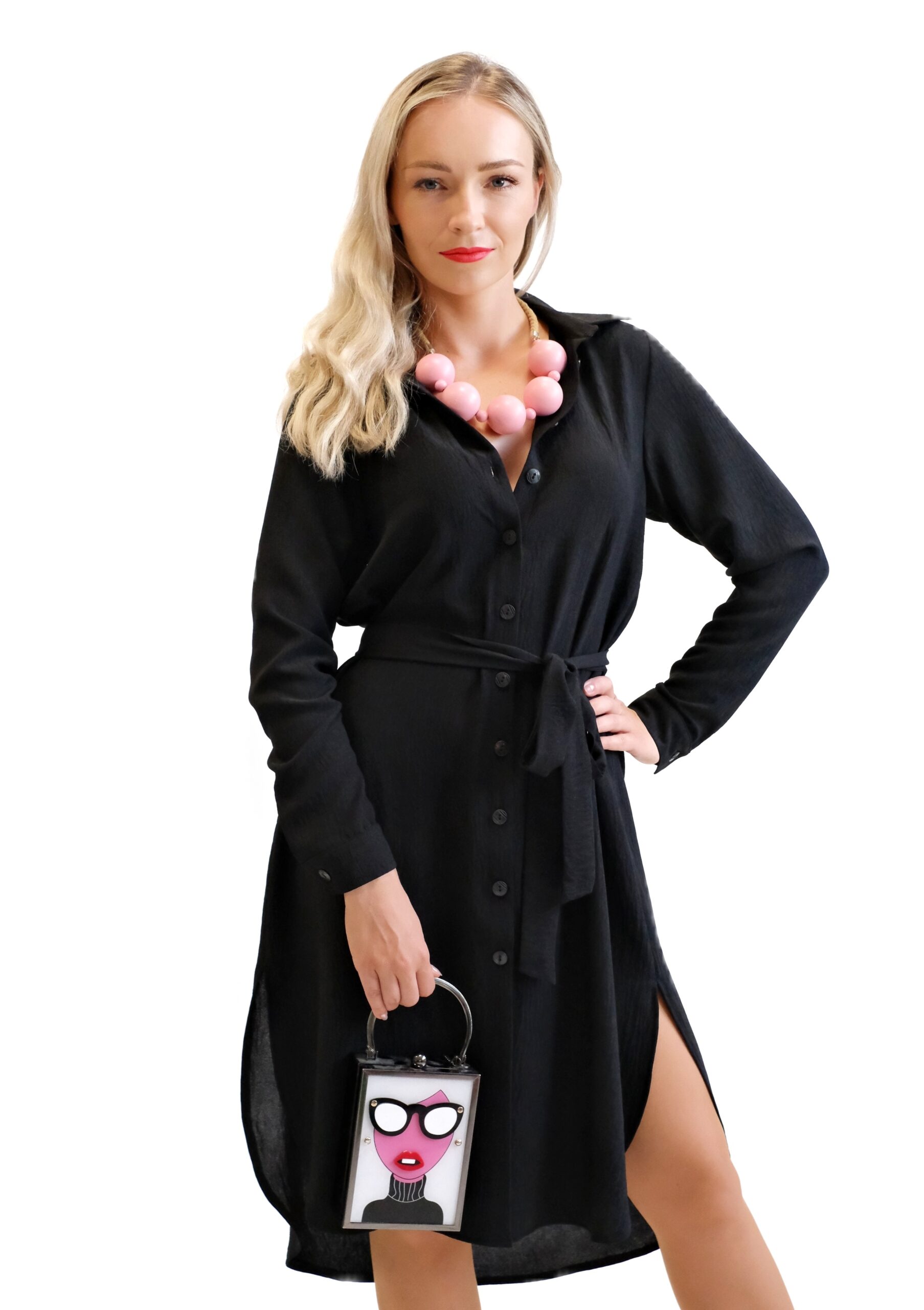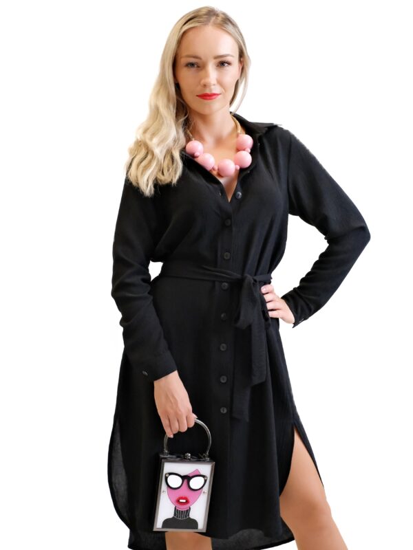 Šaty sú navrhnuté v jednoduchom rovnom košeľovom strihu. Šaty majú prestrihy na bokoch, čo im dodáva na vzdušnosti. Šaty majú na chrbotvej časti výraznú výšivku, ktorá im dodáva šmrnc. Šaty sú ušité z ľahkého a nekrčivého materiálu. Kombinujte s bielymi doplnkami pre zvýraznenie detailov na vyšívke.