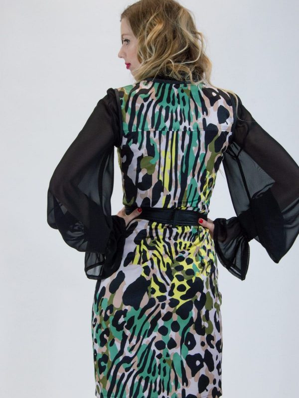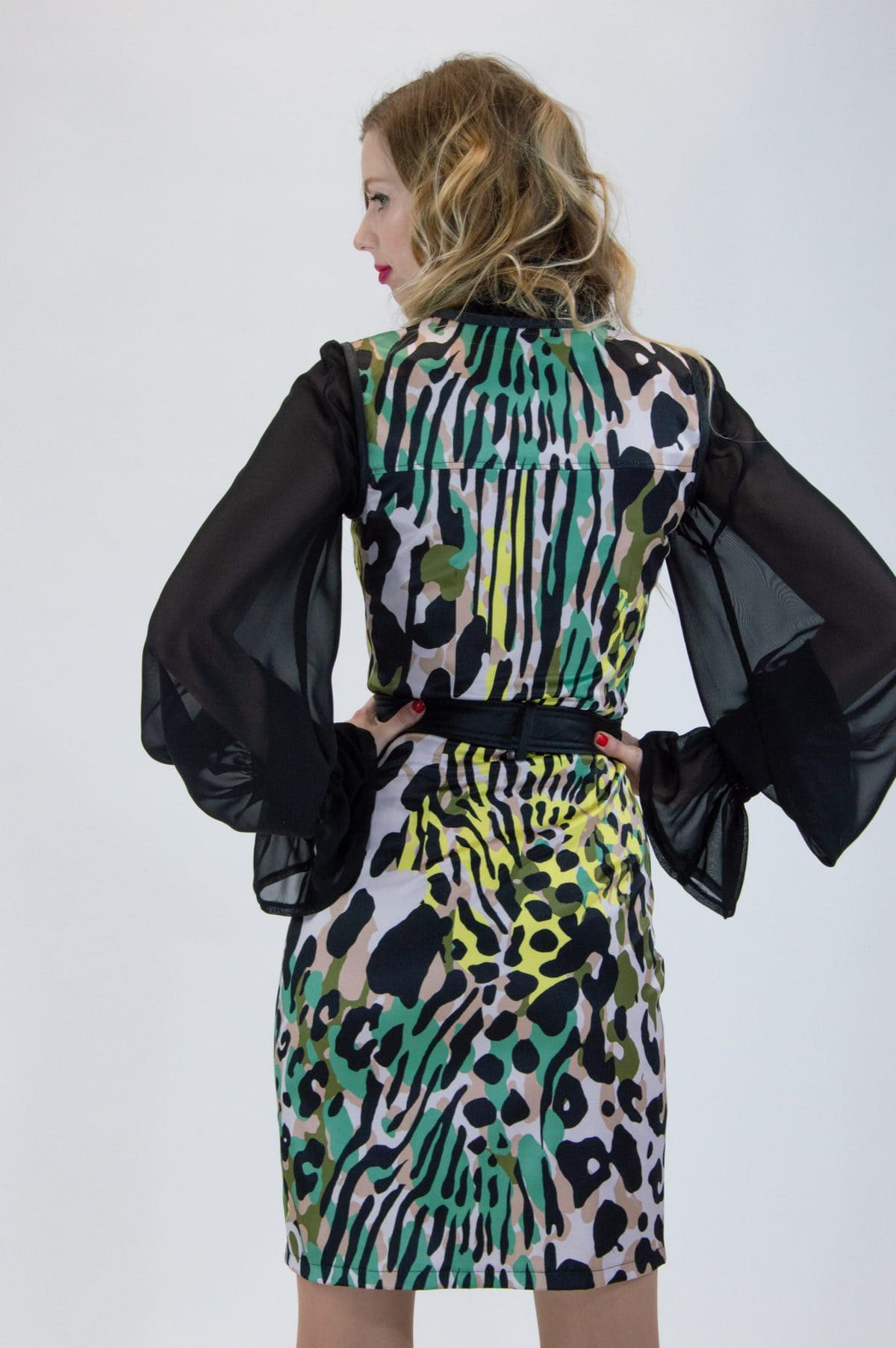 Šaty rovného strihu ušité z kvalitnej bavlny. Skvele sadnú na postave a vďaka skrytému zapínaniu vynikne zaujímavý vzor. Šaty sú bez rukávov ale môžete ich skombinovať s čiernym výrazným topom ako naša stylistka poprípade s body.