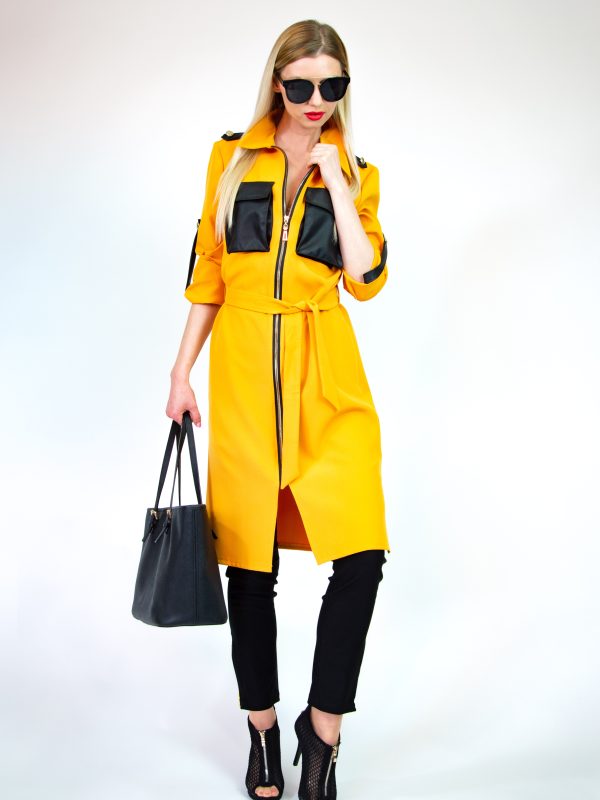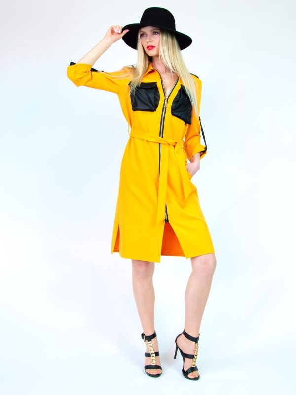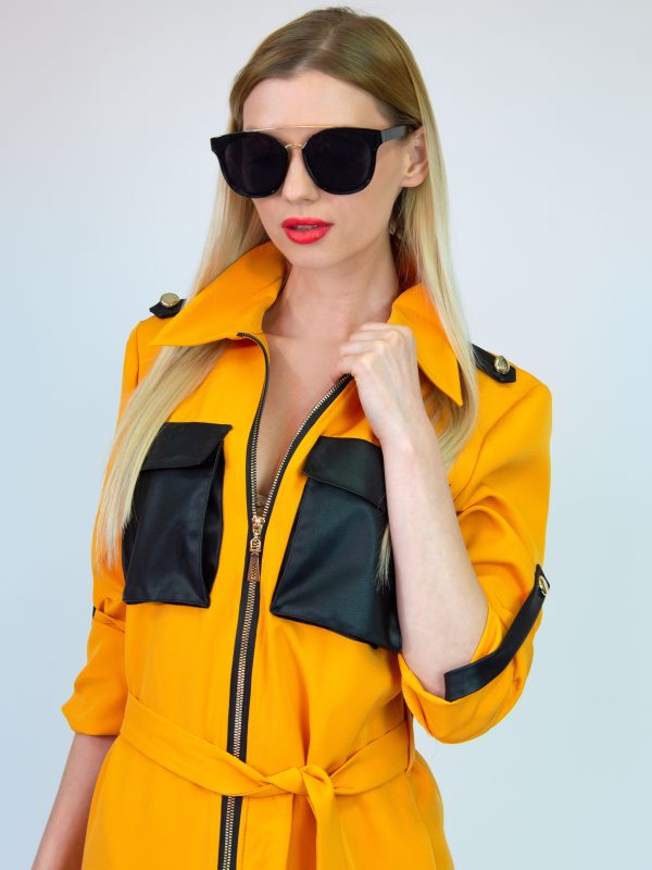 Zipsové šaty sú práve kvôli pohodlnosti a praktickosti obľúbené v našej značke. Tentokrát Vám ich prinášame v prevedení s kombináciou z koženky. Šaty sú rovného strihu, figúru je možné vytvarovať opaskom. Koženkové vrecká a zapínanie rukávov dodávajú šatám šmrnc ležérnosti.