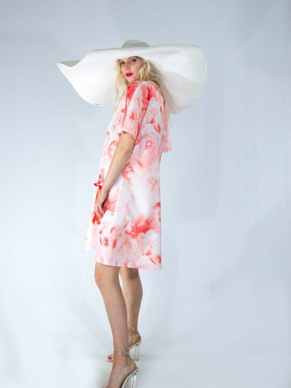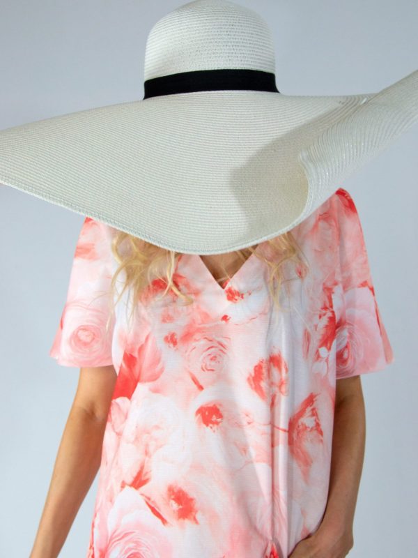 Šaty ušité vo výraznom áčkovom strihu, ktorý sadne každej postave sa hodia do horúcich letných dní aj vďaka úžasnému materiálu. Vzor šiat je vo farbe leta „Žijúci korál“, ktorá dominuje módnym molám. Šaty majú funkčné vrecko.
