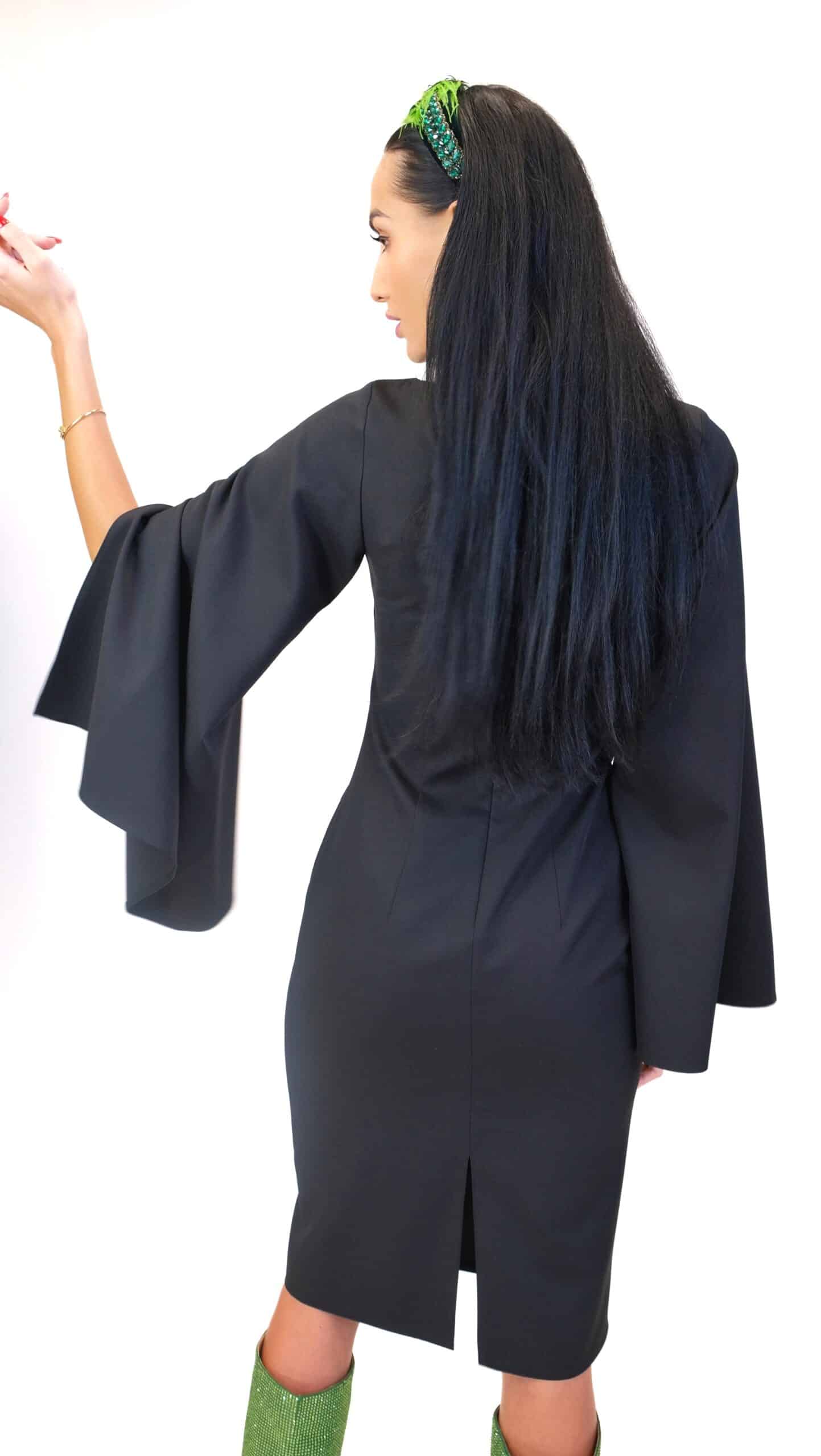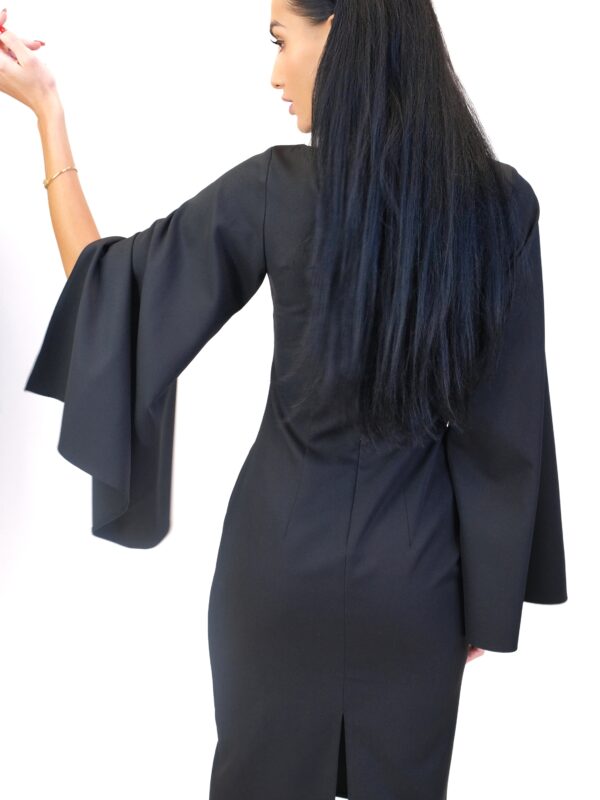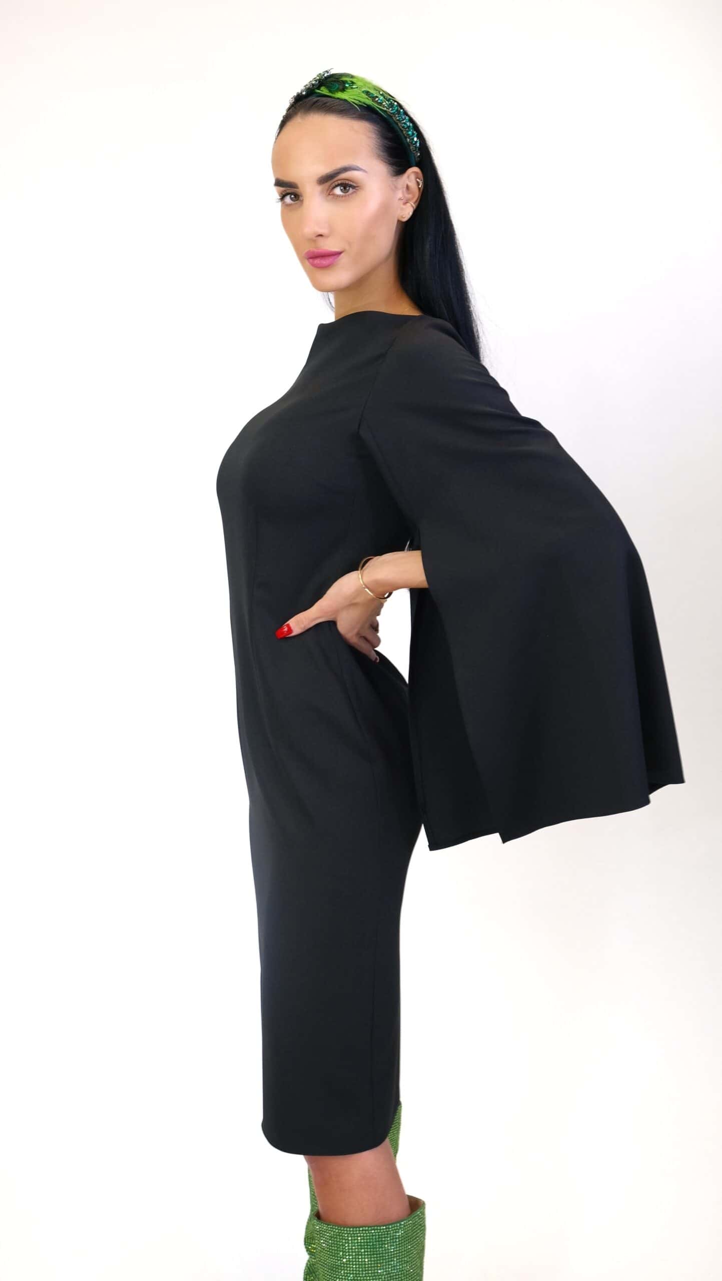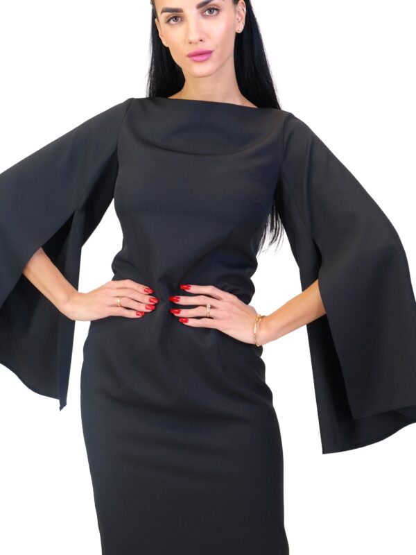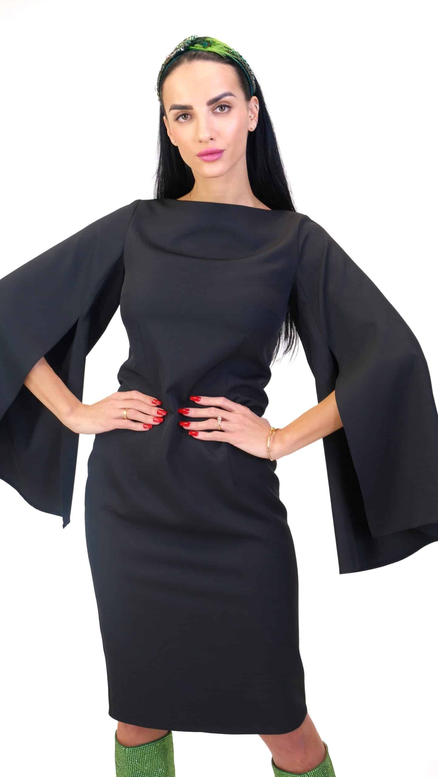 Šaty sú navrhnuté v jednoduchom áčkovom strihu, ktorý výborne sadne na každý typ postavy. Šaty sú ušitý so zaujímavým detailom prestrihnutých rukávov, ktorý im dodáva na elegancii. Šaty sú vo svojej jednoduchosti veľmi tvárne a ľahko ich skombinujete s každou farbou vo Vašom šatníku.