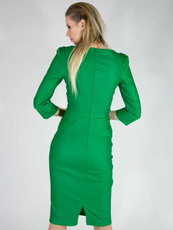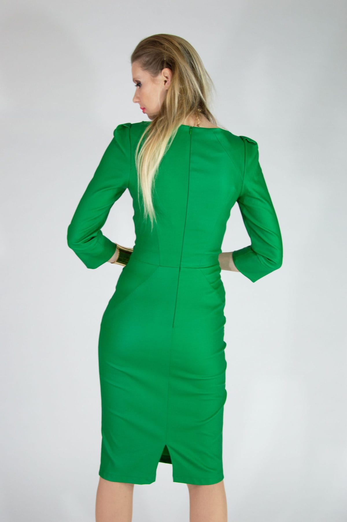 Šaty ušité v puzdrovom strihu vo výraznej zelenej farbe, ktorá žiari optimizmom. Šaty sú kvalitne spracované a skvele sa prispôsobia Vašej postave. Šaty sú prestrihnuté v páse a majú praktické kratšie rukávy, ktoré oceníte najmä keď radi nosíte výraznejšie šperky na rukách. Pre pocit luxusu skombinujte so zlatými doplnkami.