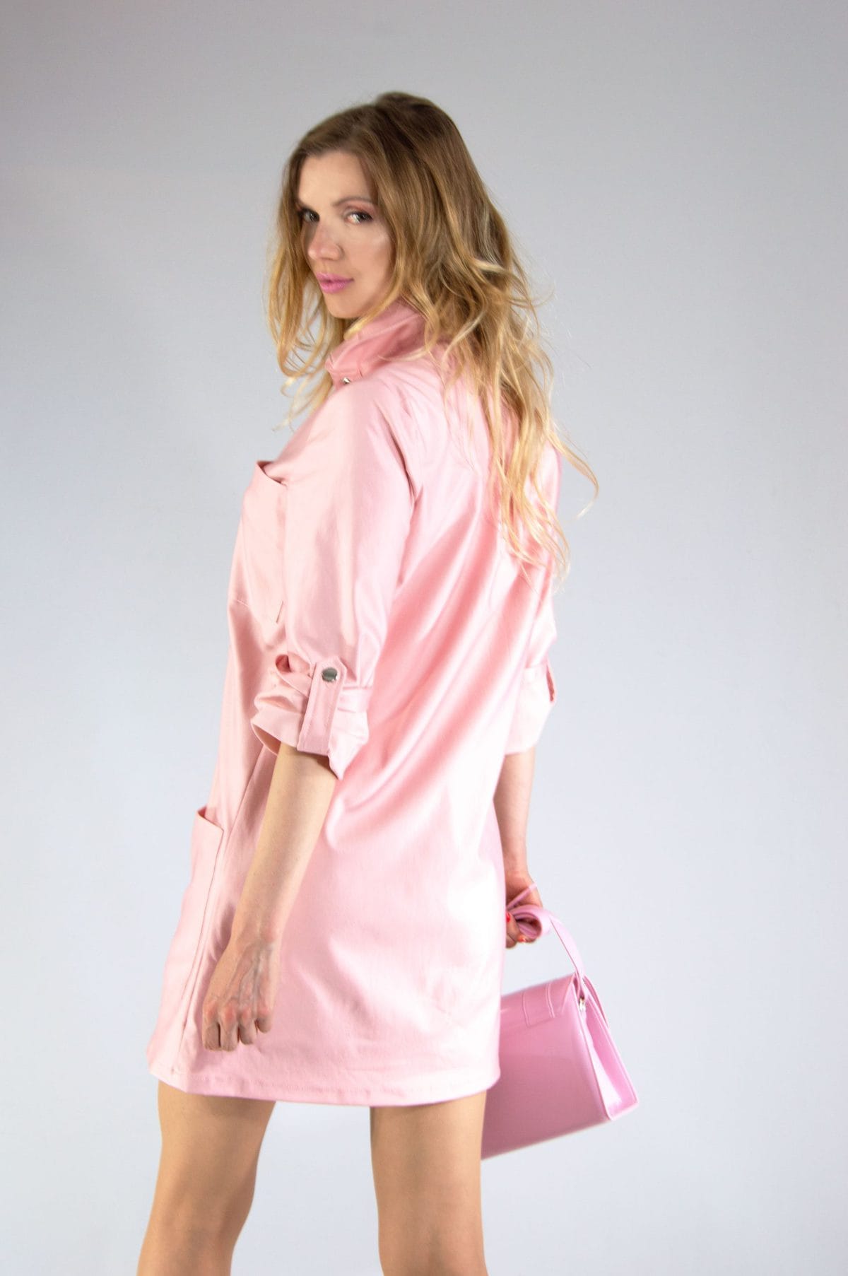 Šaty ušité z lesklej koženky. Skvele sadnú a prispôsobia sa na postavu. Šaty sú ušité do áčka a vybíjané striebornými cvokmi, čo im dodáva sexi vibe.
