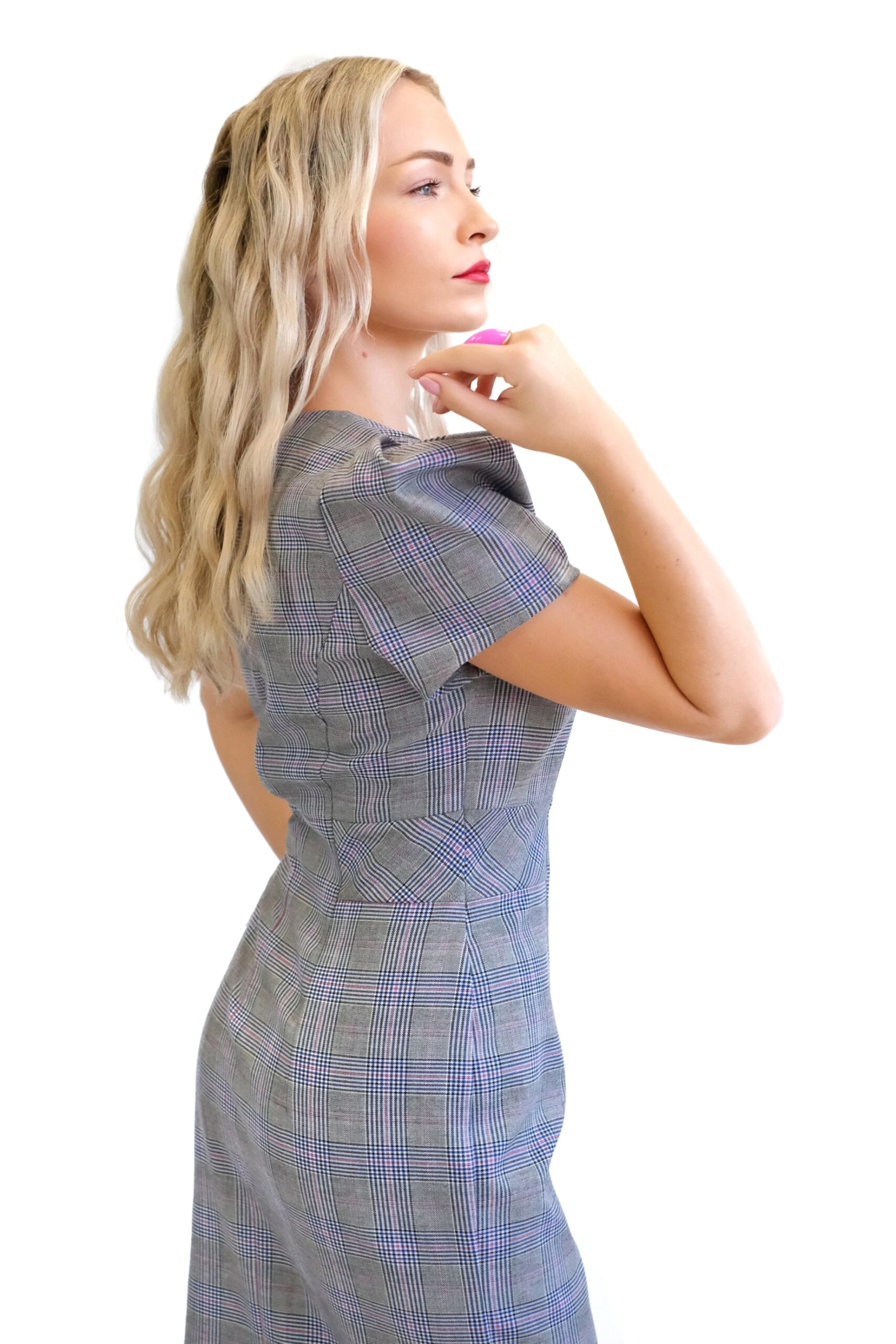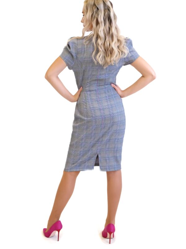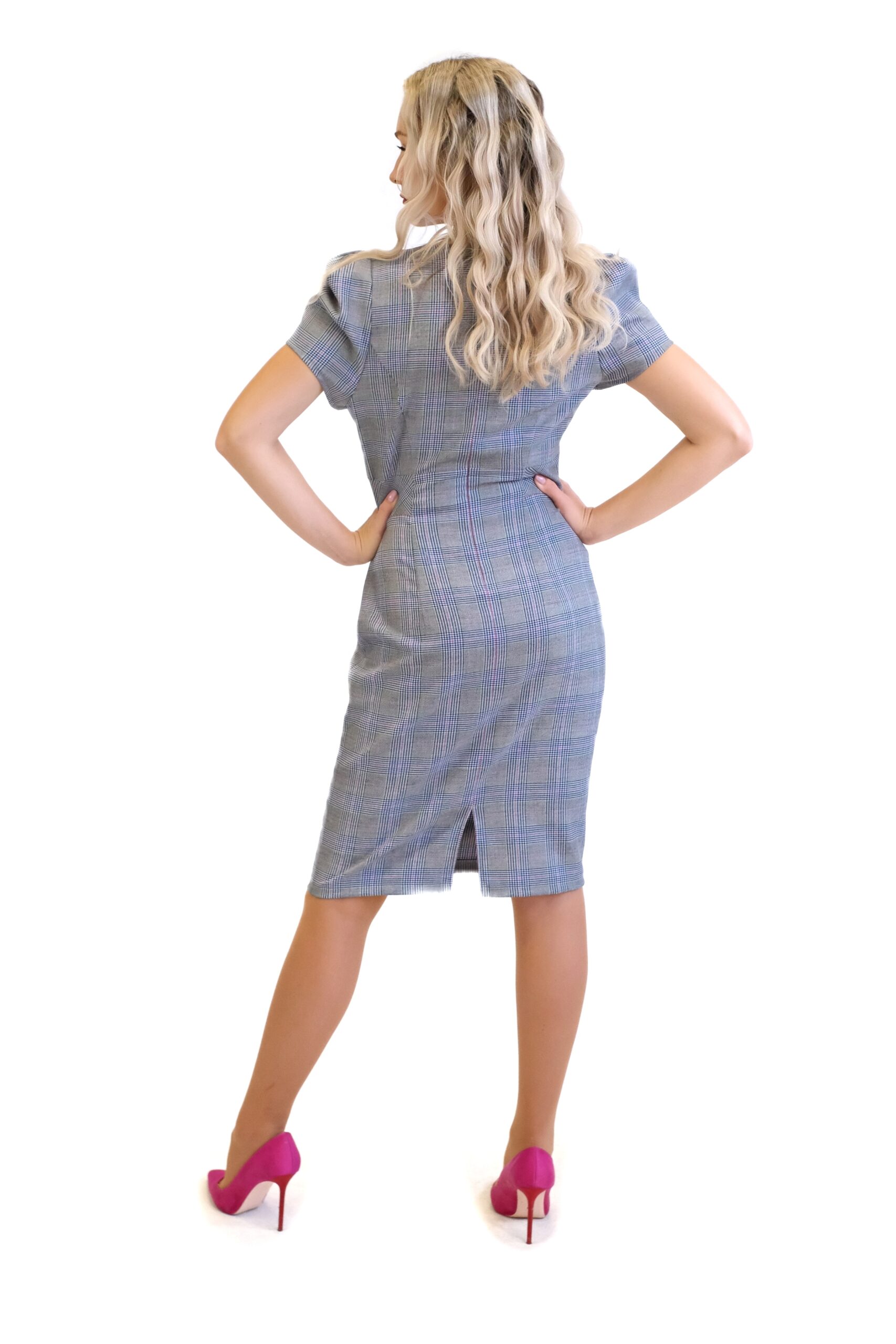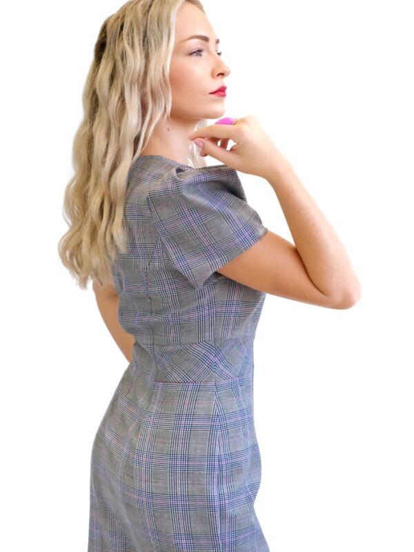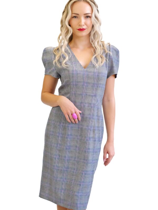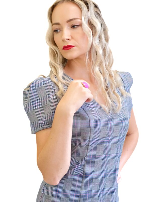 Šaty sú navrhnuté v prispôsobivom strihu, ktorý skvele sadne na postavu a zdôrazní krivky. Šaty majú zvyraznený pás , a v kombinácii s jemne nariasenými rukávmi pôsobia veľmi elegantne. Šaty sú ušité v krásnom károvom vzore, ktorý aj vďaka slovenskej precíznosti skvele pasuje. Káro je jemné, nevtieravé so zvýraznením ružovým pásikom.