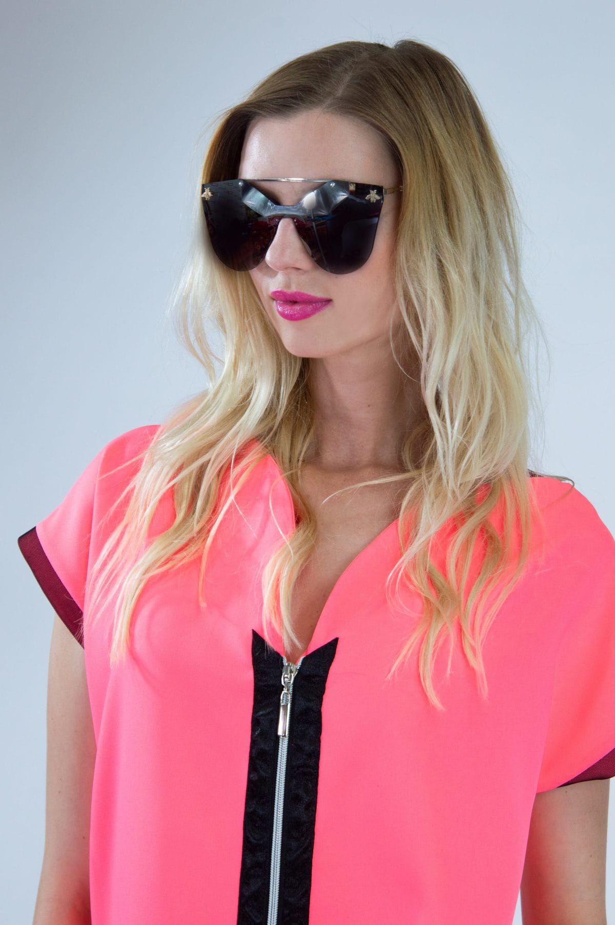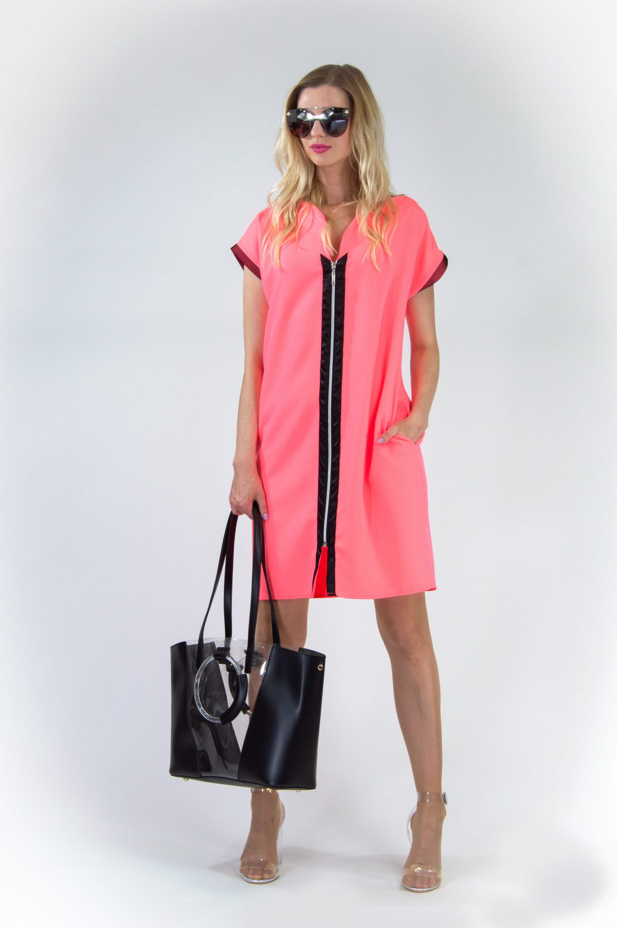 Šaty v letnej marhuľovej pastelovej farbe Vás rozžiaria v práci alebo na letnej oslave. Šaty majú netradične riešené zipsové zapínanie na prednej strane. Šaty sú v jednoduchom áčkovom strihu a majú funkčné vrecko. Skvele sa hodia k čiernym alebo zlatým doplnkom.