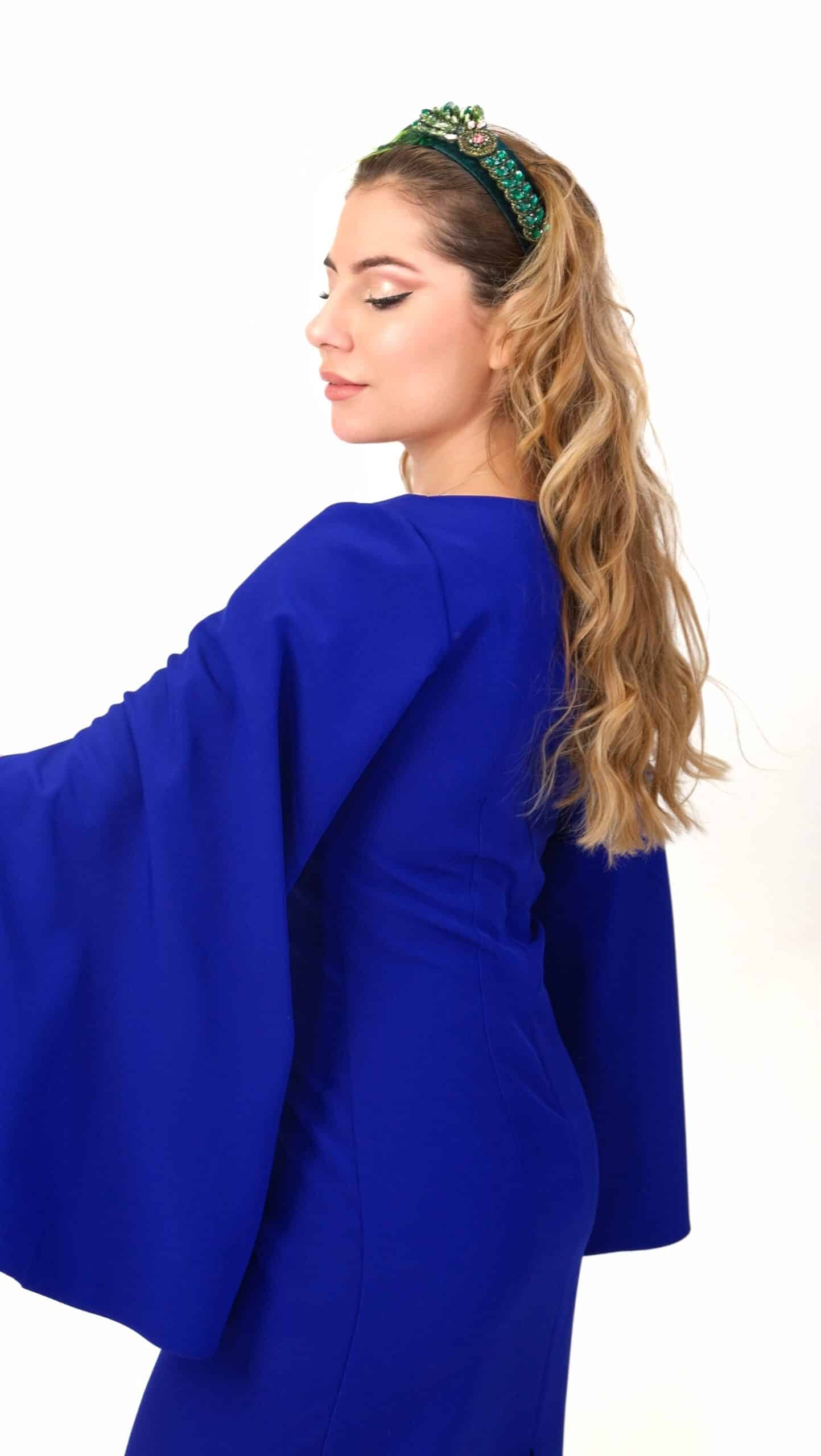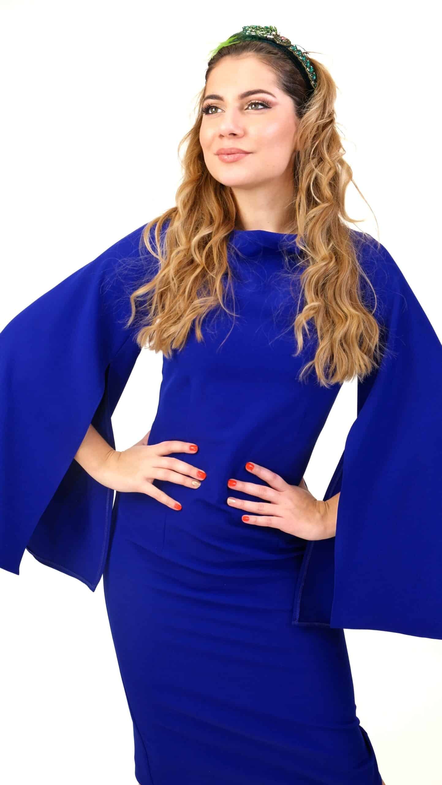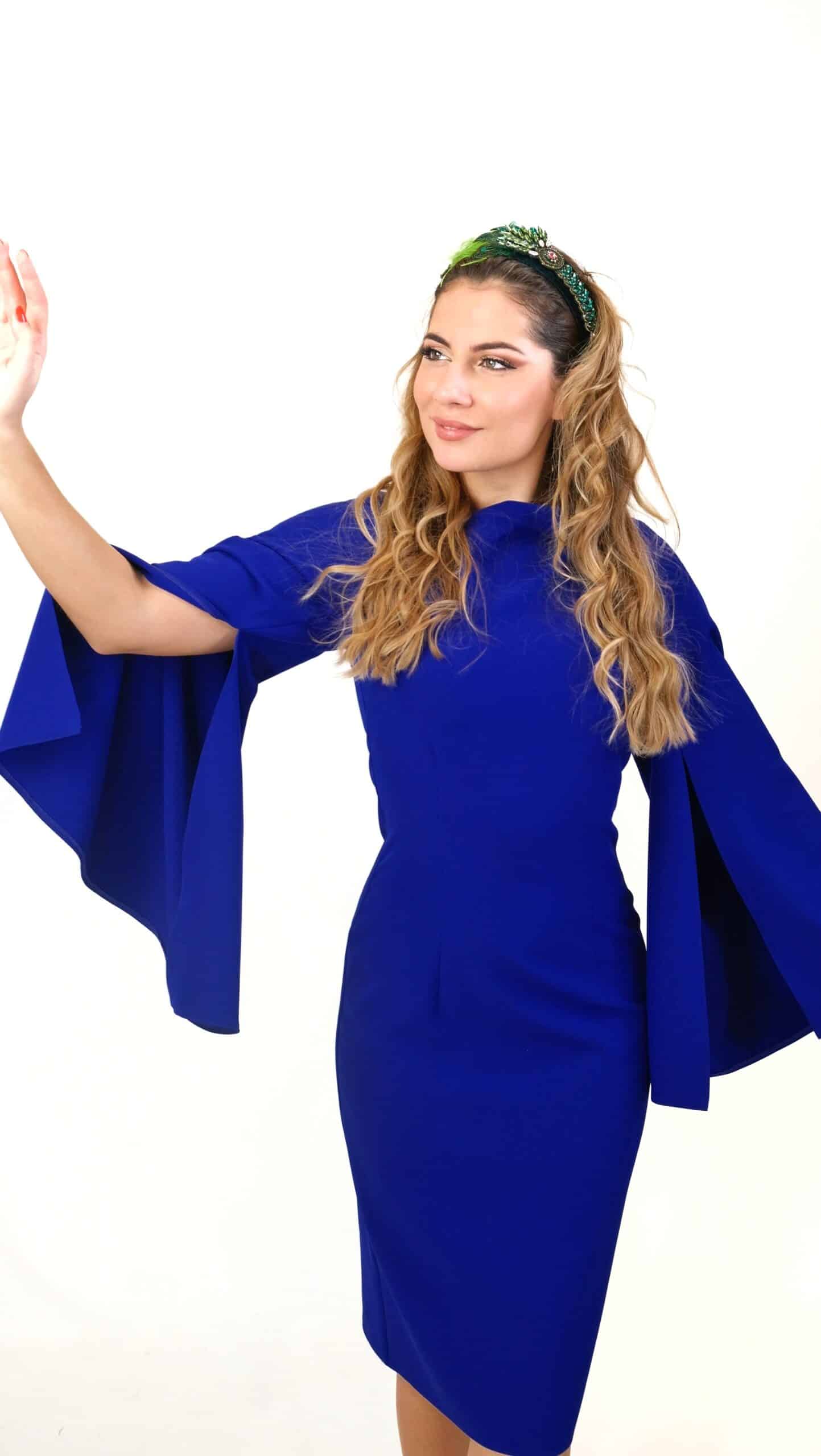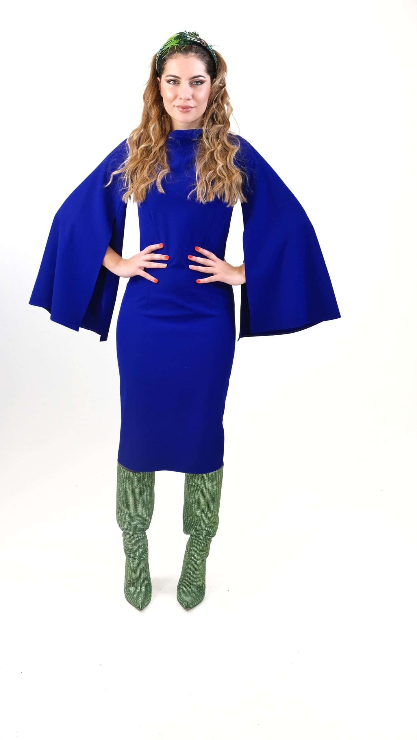 Šaty sú navrhnuté v jednoduchom áčkovom strihu, ktorý skvele sadne na každú postavu. Šaty sú ušité s dlhými rozstrihnutými rukávmi, ktoré im dodávajú na elegancii a oživujú inač jednoduchý strih. Pri jednoduchom strihu si môžete dovoliť výraznejšie doplnky. Skombinujte ako naša stylistka s nápadnou zelenou alebo kontrastnou cyklámenovou .